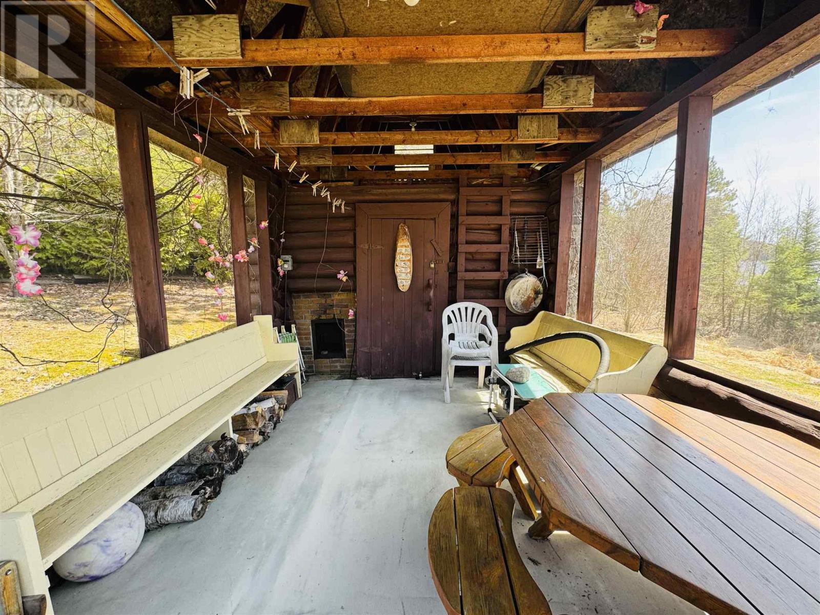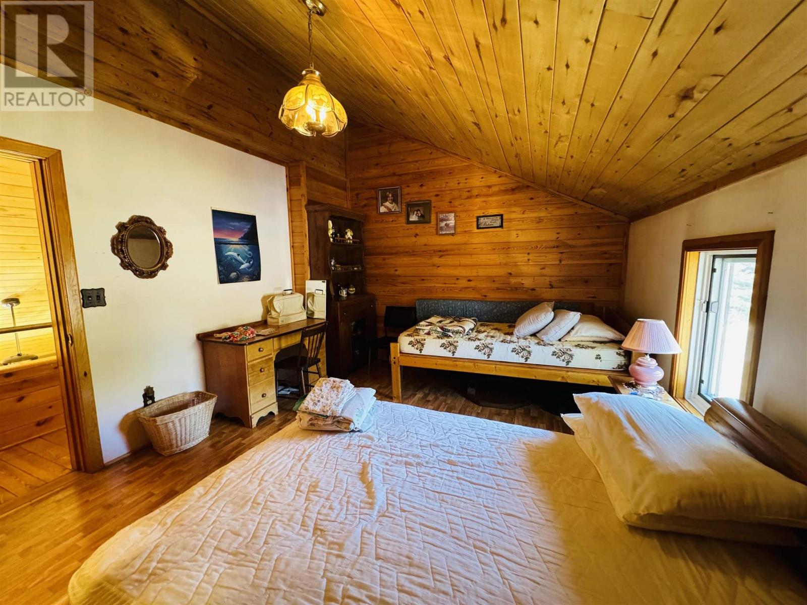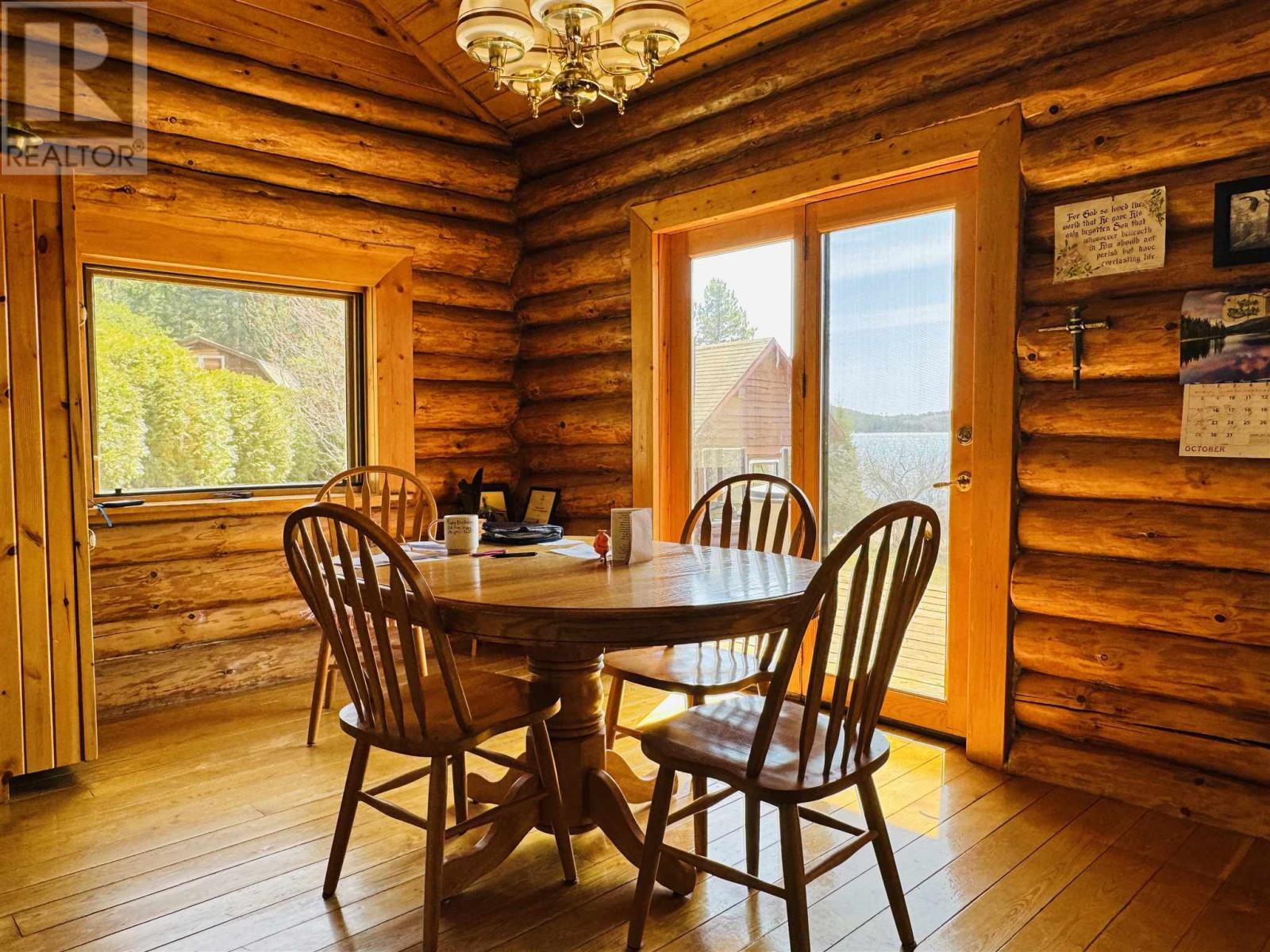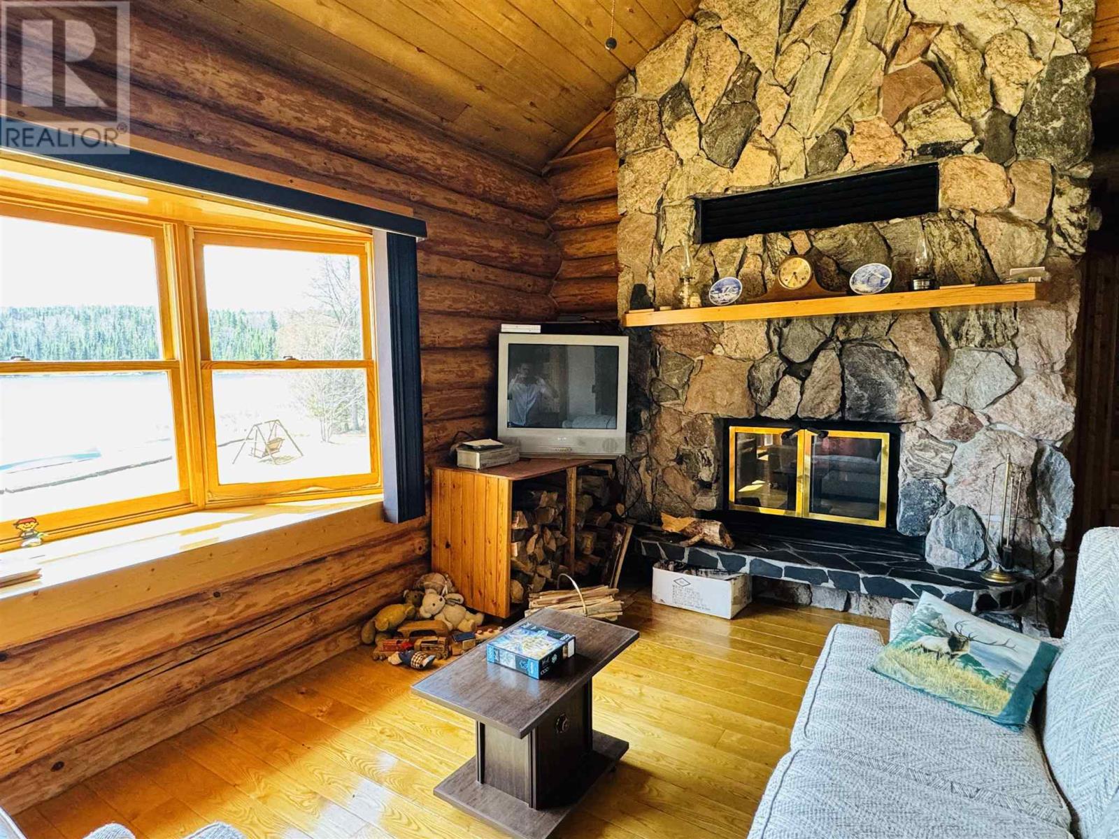 Seize the opportunity to own a breathtaking property with pristine 66' sand beach shoreline on the prestigious Cliff Lake. Located in unorganized territory, just 20 minutes south of Perrault Falls, this idyllic retreat is a dream come true for outdoor enthusiasts and nature lovers alike. Enjoy unparalleled fishing and the serene tranquility that only nature can provide. This remarkable property features a stunning log home built in 1988, showcasing cedar shank siding on the upper level. Spanning over 1,800 sq. ft., the home is fully insulated and designed for comfort. On the main level, you'll be greeted by a spacious entryway leading to a versatile office room. The open-concept kitchen, dining, and living area boasts beautiful hardwood flooring throughout. The living room is anchored by a striking dual-sided fieldstone fireplace, perfect for cozying up in the primary bedroom or relaxing in the living space. The main level also includes a luxurious full bathroom, complete with a jetted tub, a stand-up shower, and a his-and-her vanity. Upstairs, you'll find a generous family/study area that opens onto a charming three-season sunroom with a walk-out balcony, offering stunning views of the lake. The second level also features a spacious bedroom and a utility room. The property comes with several outbuildings, including a generator shed, a detached garage, and a sauna hut, enhancing your outdoor living experience. Don't miss this chance to own a slice of paradise on Cliff Lake. Your dream property awaits! (id:64974)