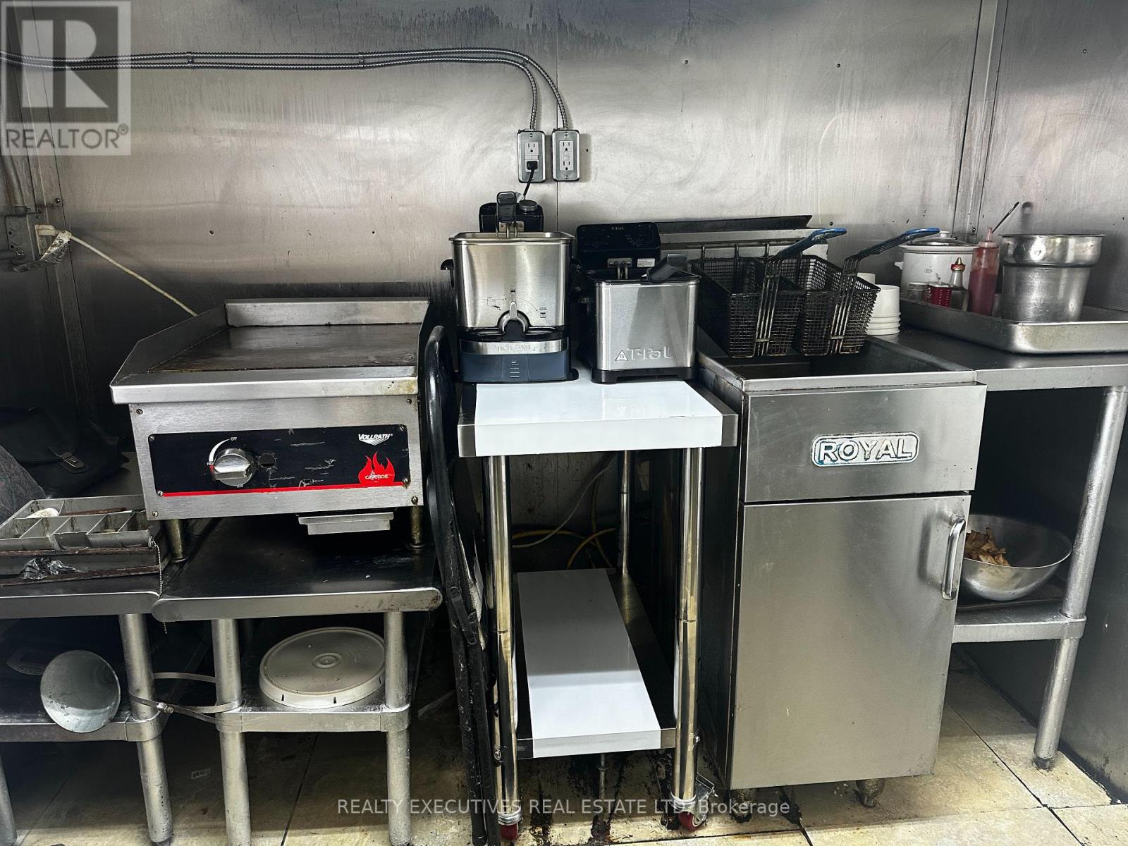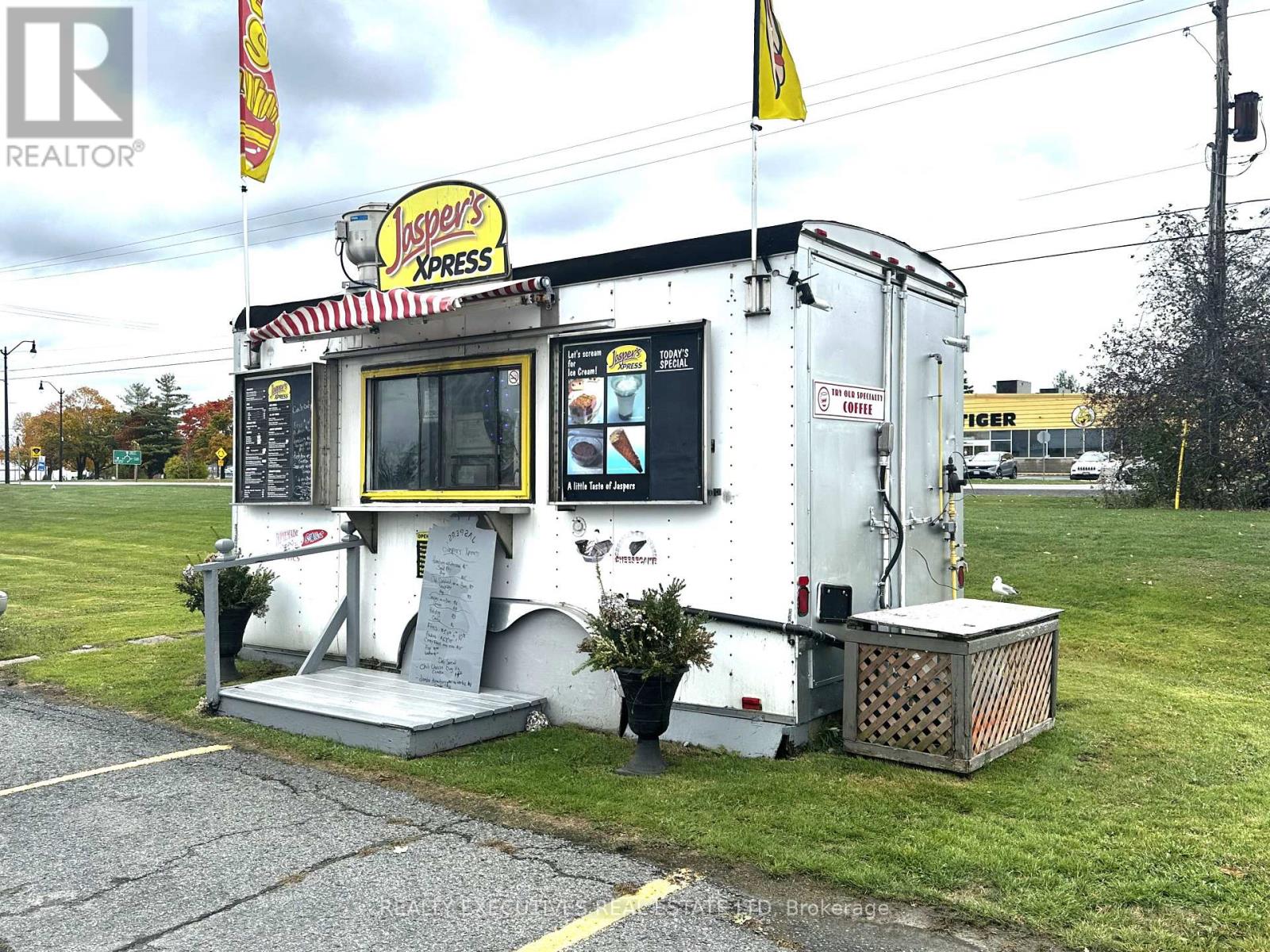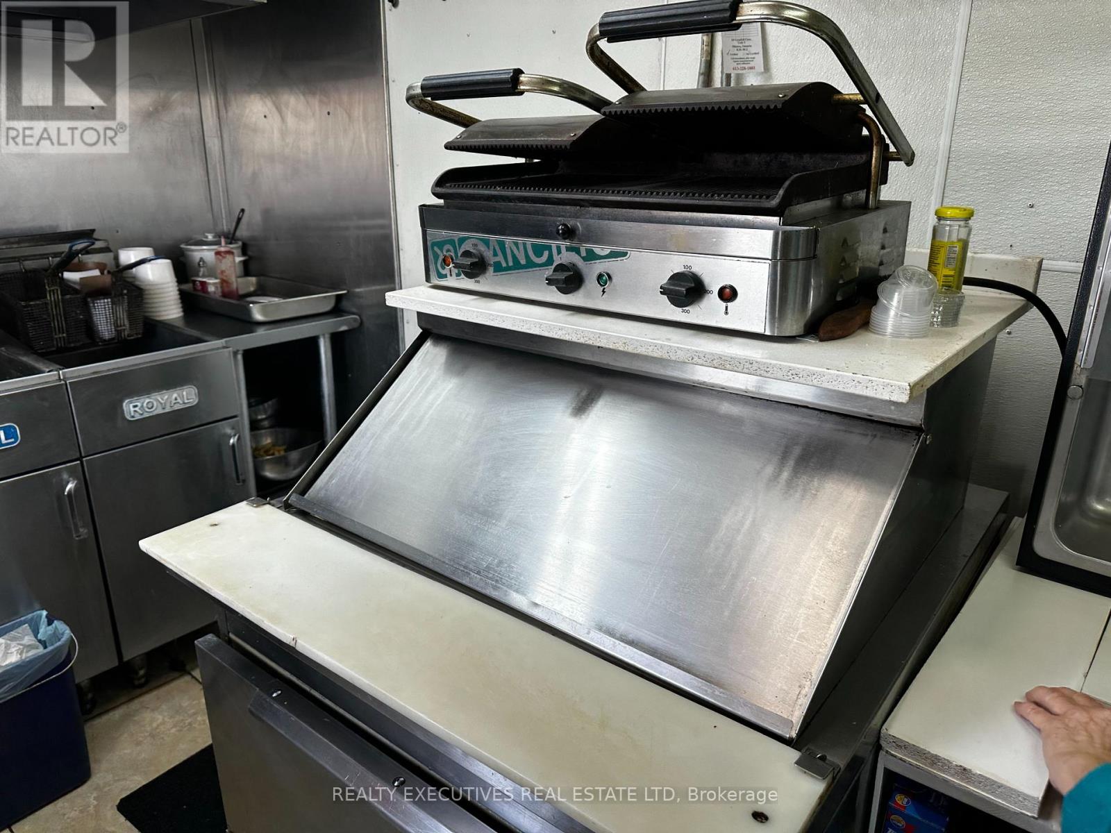 Year Around 16' Food Trailer - Start Your Business today in this Prime Location! It has everything you need to start your portable food business, whether you want to make fries & burgers, sandwiches, or specialty dishes - this business has been running for 15 years and is Health Unit approved, ready to go! It comes with: Royal Propane single fryer (2 baskets), Volrath propane grill, 60" hood with fire suppression unit, under-counter fridges, stand-up freezer, electric stove, Bunn drip coffee machine, sandwich prep table, double sink, separate handwashing sink, water holding tank, portable grey water tank, 2 microwaves, toaster oven, Hamilton Beach Mix N Chill, Cash Drawer, Battery & charging unit, fire extinguishers. Trailer has insulated walls & ceiling; 60 amp service. The owner is currently operating using electric fryers & Panini machine. New owner can have propane hooked up. Located in the Canadian Tire Parking Lot, Morrisburg! (id:64974)