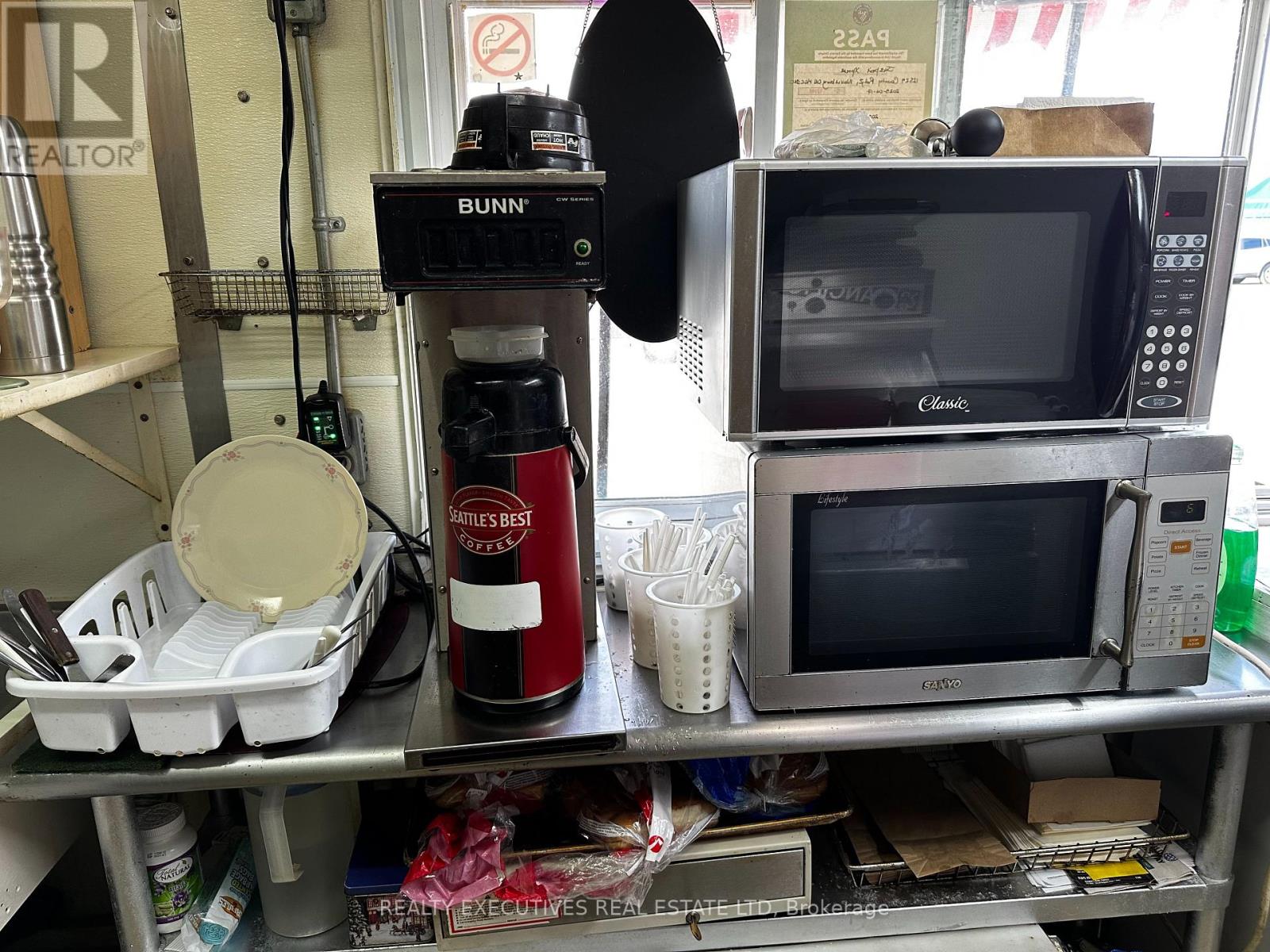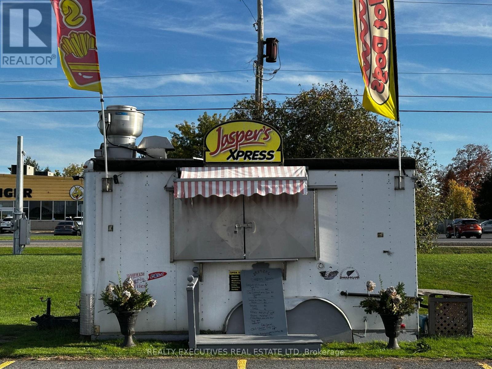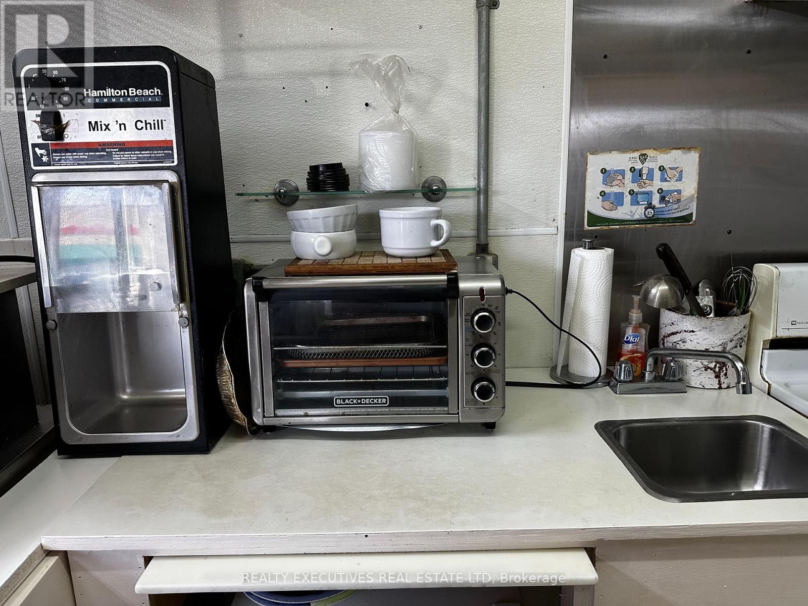 Year Around 16' Food Trailer - Start Your Business today in this Prime Location! It has everything you need to start your portable food business, whether you want to make fries & burgers, sandwiches, or specialty dishes - this business has been running for 15 years and is Health Unit approved, ready to go! It comes with: Royal Propane single fryer (2 baskets), Volrath propane grill, 60" hood with fire suppression unit, under-counter fridges, stand-up freezer, electric stove, Bunn drip coffee machine, sandwich prep table, double sink, separate handwashing sink, water holding tank, portable grey water tank, 2 microwaves, toaster oven, Hamilton Beach Mix N Chill, Cash Drawer, Battery & charging unit, fire extinguishers. Trailer has insulated walls & ceiling; 60 amp service. The owner is currently operating using electric fryers & Panini machine. New owner can have propane hooked up. Located in the Canadian Tire Parking Lot, Morrisburg! (id:64974)