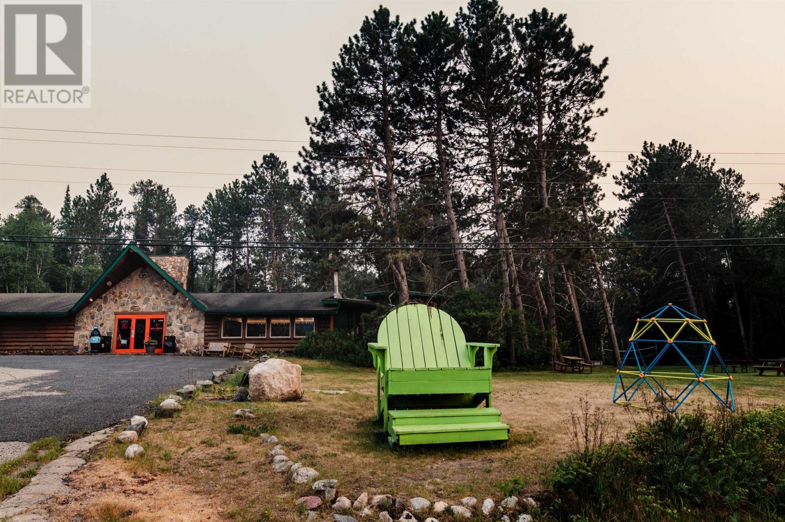 An exceptional opportunity to operate a high-profile restaurant + retail business in the heart of Lake of the Woods cottage country. Silver Wolf Resort sits on a 5+ acre waterfront property with rare dual frontage, offering both outstanding highway exposure and premium lake access on Granite Lake. The primary commercial space includes approx. 5,700 sq ft in a highway-facing building housing a beautiful timber style bar/restaurant, full commercial kitchen and a sizeable retail component. This flexible layout provides an incoming operator with multiple revenue channels under one roof, ideal for food service, convenience retail, specialty merchandise, and destination dining concepts. At the rear of the main building are two additional suites that add operational flexibility. One is a fully self-contained manager’s suite, and separate staff accommodations. Additional on-site assets include multiple cabins and expansive grounds, creating opportunities for expanded programming such as events, outdoor food service, seasonal attractions, and complementary tourism-based revenue streams. The property has previously hosted community-style events including a farmers’ market, and the waterfront setting, open grounds, and natural scenery also lend themselves well to private functions such as weddings and special events. The property benefits from its proximity to Clearwater Bay, a well-established cottage community known for high-end waterfront residences and strong seasonal traffic. Lease structure, operational scope, and financial terms are negotiable. (id:64974)
