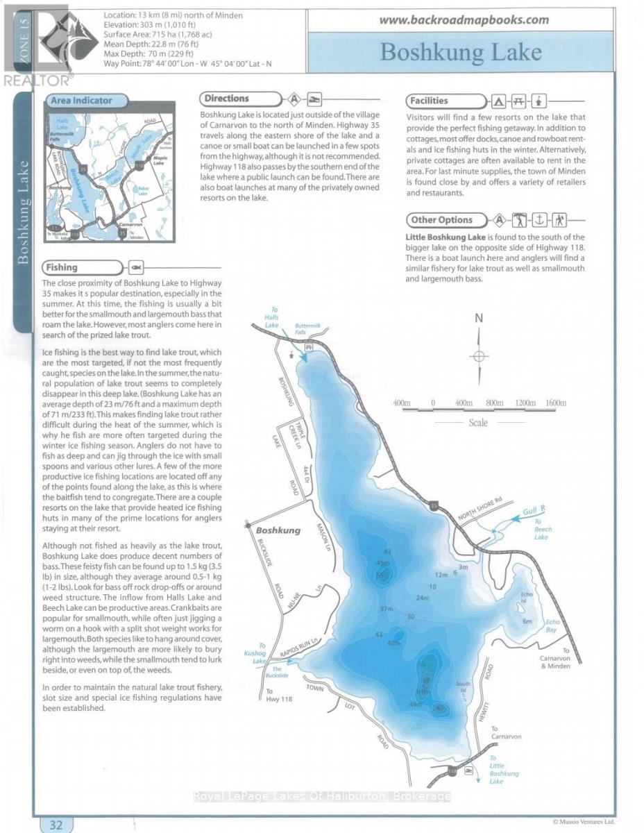Prime, Prime, Prime! Exclusive Waterfront Property on Boshkung Lake. Experience the ultimate lakeside living with deep water off docks end and all day sun with spectacular expansive panoramic southwestern lake views from this exceptional lot on the prestigious shores of Boshkung Lake. With 188 feet of pristine waterfront, this property offers a rare blend of deep and shallow water, featuring both rock and sandy shoreline, perfect for swimming, boating and enjoying the best of lake life. Ideal for a year-round home or cottage, the lot boasts easy, level access, you will see the building envelope is staked, an ideal location for a walkout basement. Surrounded by mature, majestic trees, you'll enjoy natural privacy and a serene setting. The owned shore road allowance ensures full access to your private waterfront, complete with a lakeside deck and shed. Located in a prime spot off Highway 35, allows easy 2.5 hr access to the GTA and just a short drive to Minden or the hamlet of Carnarvon for all your amenities, this property offers unbeatable convenience. You're also just minutes away from several outstanding restaurants, accessible by boat or car. Dont miss your chance to own a piece of paradise on one of the most prestigious lakes in the area!(The lot has four grey stakes to indicate a potential building site, meeting the set backs and accommodating a building of 36x52 feet) (id:64974)