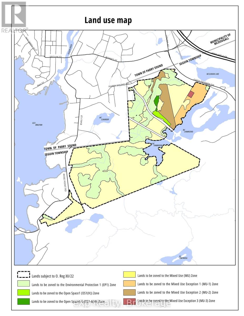Position your next project where growth is being planned, not guessed. This 55.82-acre Mixed Use landholding sits in Seguin's new settlement area, directly bordering the Town of Parry Sound-a rare scale and location combination that gives developers, land bankers, and investors a true corridor play. With immediate proximity to Parry Sound's south-end commercial district, the West Parry Sound Health Centre, and everyday amenities-plus quick Highway 400 access-this site is built for absorption and engineered for long-term optionality. Seguin Township is actively advancing its master plan and study process to determine the optimal servicing approach-meaning you can secure a strategic position ahead of clarity and structure a phased strategy that aligns with the Township's collaborative, forward-thinking growth mandate (including attainable housing). Whether your model is a master-planned community, a mixed-use destination, or a staged land-hold with multiple exit paths, this is the kind of large-scale, "next-in-line" settlement-area asset that sophisticated capital looks for-**once it's obvious, it's usually already expensive**. Buyer to verify zoning, permitted uses, and servicing. Invest in Parry Sound District-Northern Ontario's gateway-and position yourself to benefit from the region's growth momentum, including the grants and financial incentives available to support development and investment in the North! Come and Be Where You Want To Be! (id:64974)