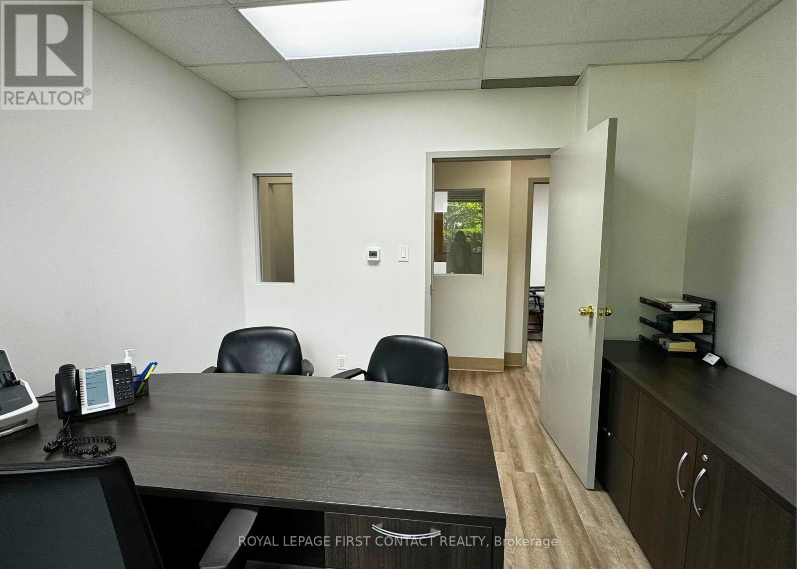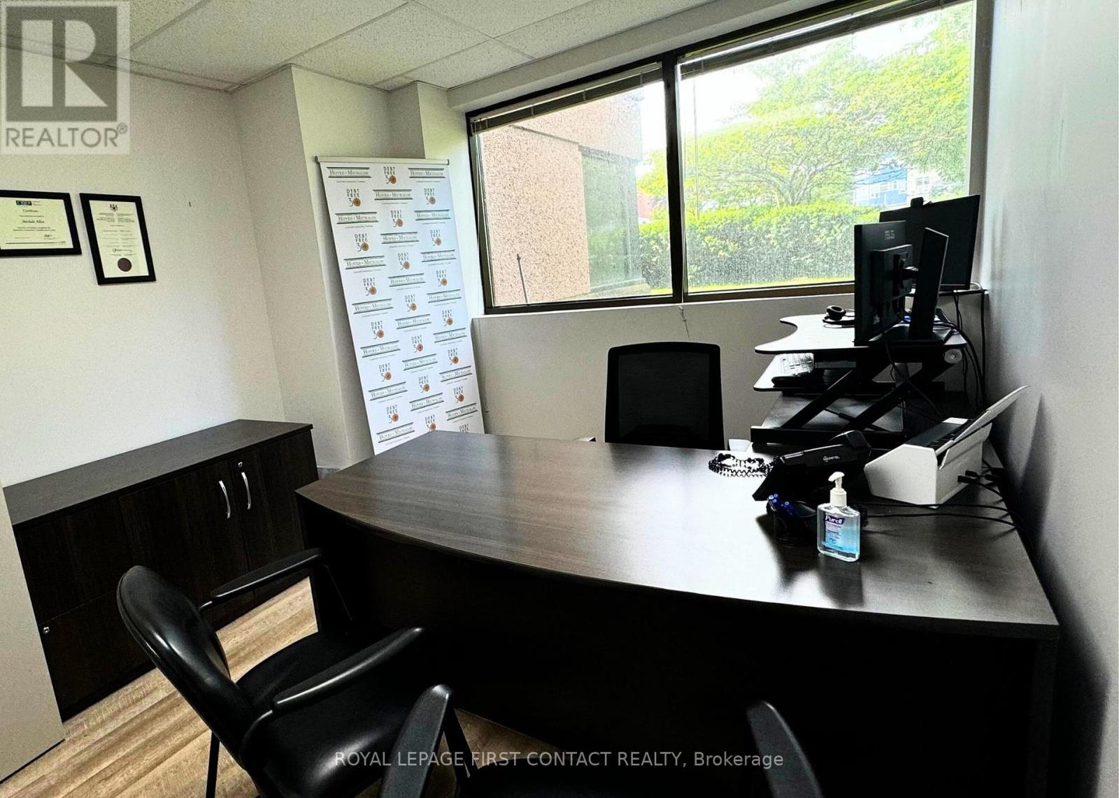 Discover unparalleled convenience and professional excellence in this lower-level suite, nestled within a meticulously maintained office building. Positioned in close proximity to the Royal Victoria Regional Health Centre, Georgian College, and the Hwy 400 interchange, this space offers exceptional accessibility. Ideal for professional office use, the suite is currently set up with a reception area, two private offices, and a supply room. It provides a quiet, professional environment designed to support productivity and client comfort. Elevate your practices visibility in this esteemed locale, where quality meets convenience for both practitioners and clients alike. (id:65010)