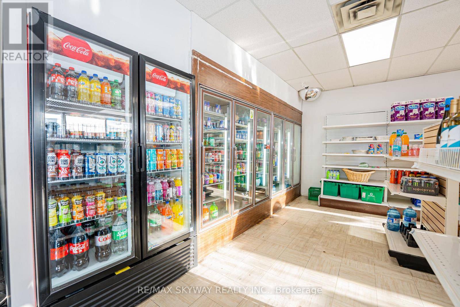 Well-established convenience store operating for approximately 39 years at a prime Mississauga location on busy Dundas St E. Strong daily walk-in traffic with a loyal customer base. Clean and organized layout. Surrounded by high-density residential area, motel directly across the street, and long-term care facility next door. Business sale only - no property included. Store offers lottery (OLG), beer, wine, cigarettes, energy drinks, and general convenience store items. Additional income from ATM, Bitcoin machine, and OLG advertising. Potential to add vape products and expand product mix, subject to required licensing and municipal approvals and further increase revenues and returns. Leased retail area 1100 sqft total area 2200 sqft Lease per month is Net +TMI+HST. (id:64974)