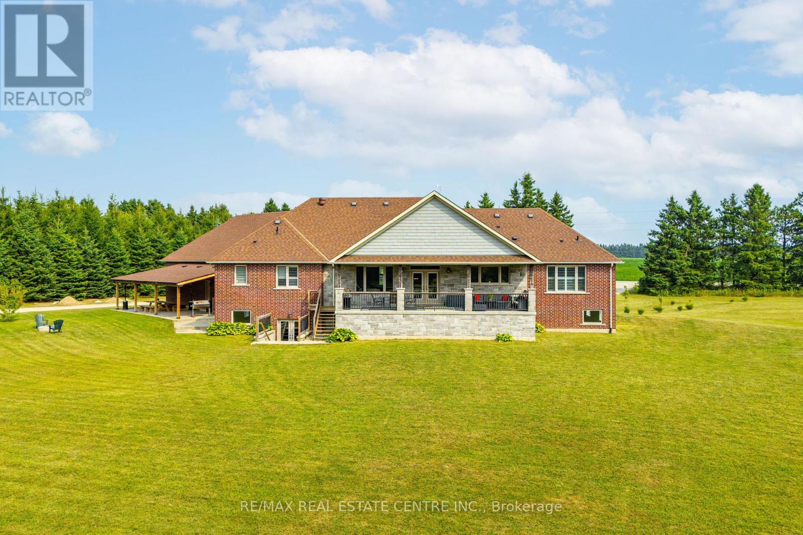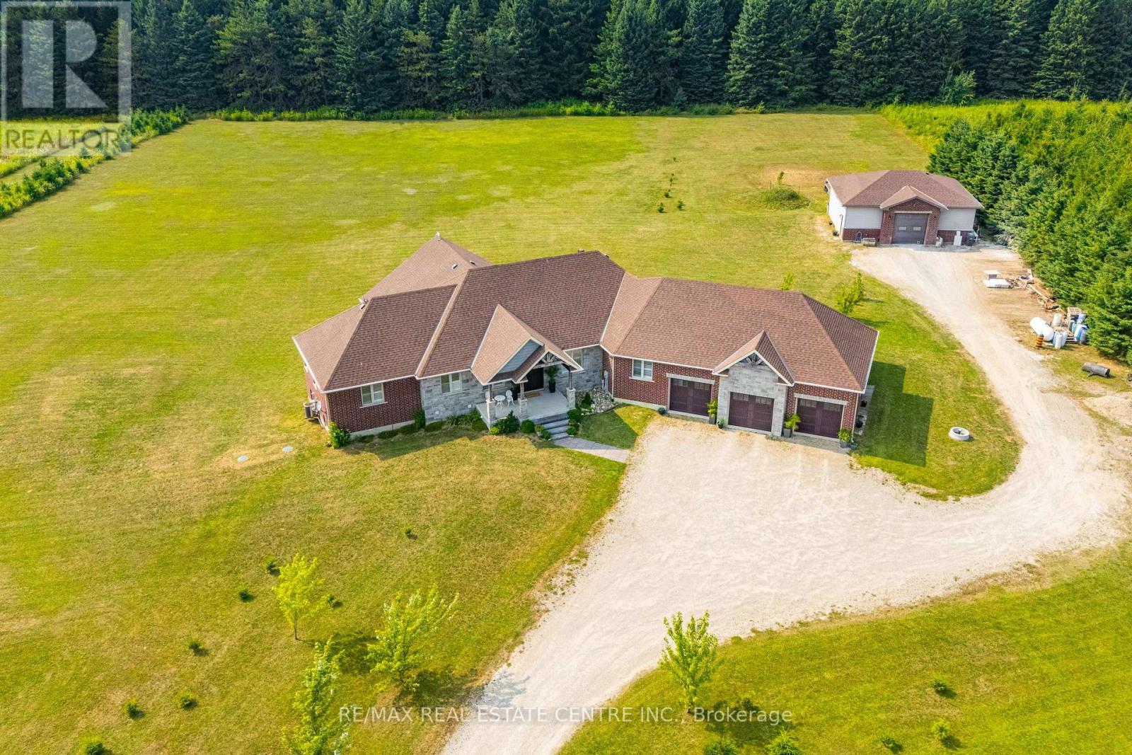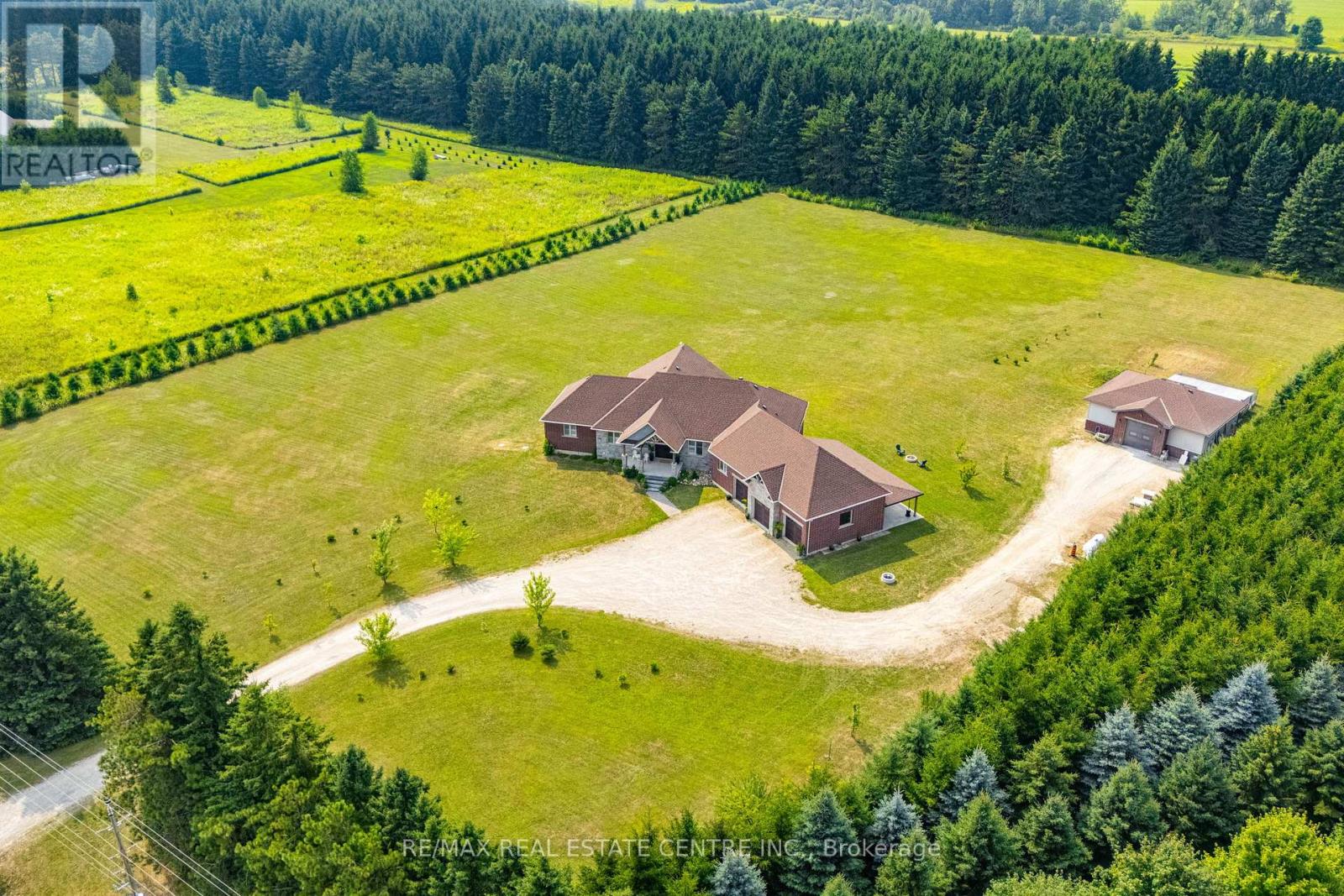 Welcome to 023181 Erin East Garafraxa Townline, where refined country living meets modern convenience. Set on 4.5 private, tree-lined acres, this custom-built bungalow was constructed solid and built to last, offering exceptional craftsmanship and enduring quality. Tucked well back from the road yet just minutes to Erin, Orangeville, and essential amenities, this property delivers privacy without compromise.Designed with family living in mind, the home features 3 spacious bedrooms plus a versatile den easily converted to a 4th bedroom or home office. Four beautifully finished bathrooms and a bright, open-concept layout create a seamless flow throughout the main level. Soaring ceilings and expansive windows fill the home with natural light, enhancing the warm and inviting atmosphere.The kitchen, dining, and living areas connect effortlessly, perfect for entertaining or enjoying quiet evenings at home. The primary suite offers a peaceful retreat with a spa-inspired ensuite and serene views of the surrounding landscape.The walk-up basement provides incredible flexibility for additional living space, multi-generational living, or a custom recreation area tailored to your needs.Outside, the impressive 1,400 sq ft detached workshop/garage is heated and dry walled, ideal for hobbyists, entrepreneurs, or additional storage for vehicles, tools, and equipment.Rogers Fibe high-speed internet is now available and run directly to the property, offering reliable connectivity for work and everyday life.Surrounded by mature trees and open space, this is a rare opportunity to own a luxurious, family-friendly country property with modern amenities just minutes from town. (id:64974)