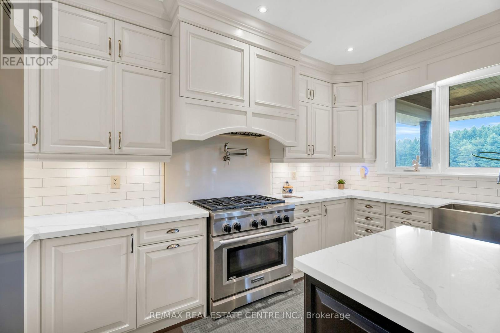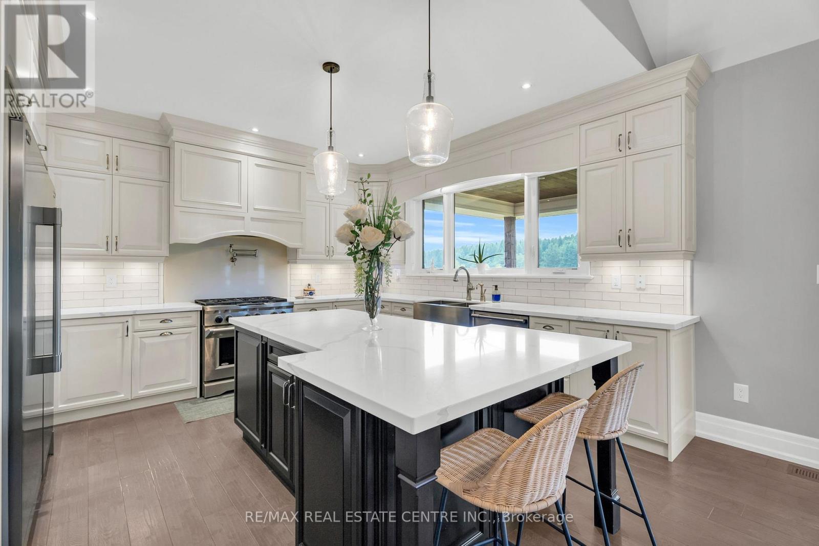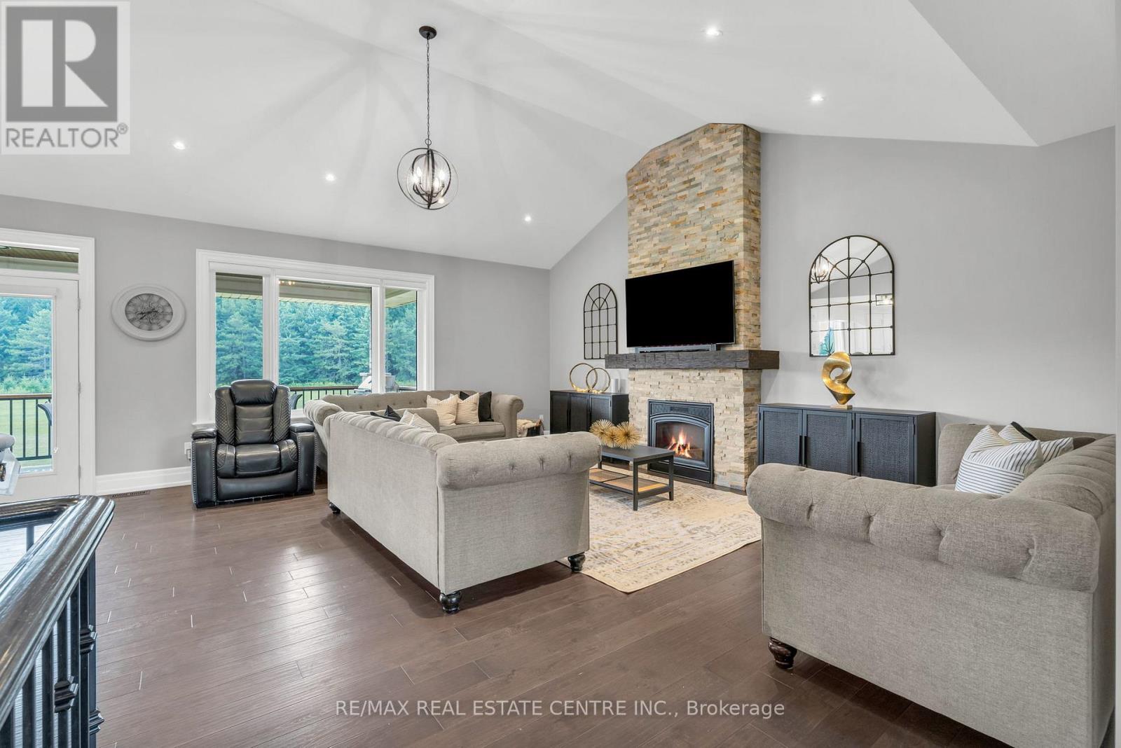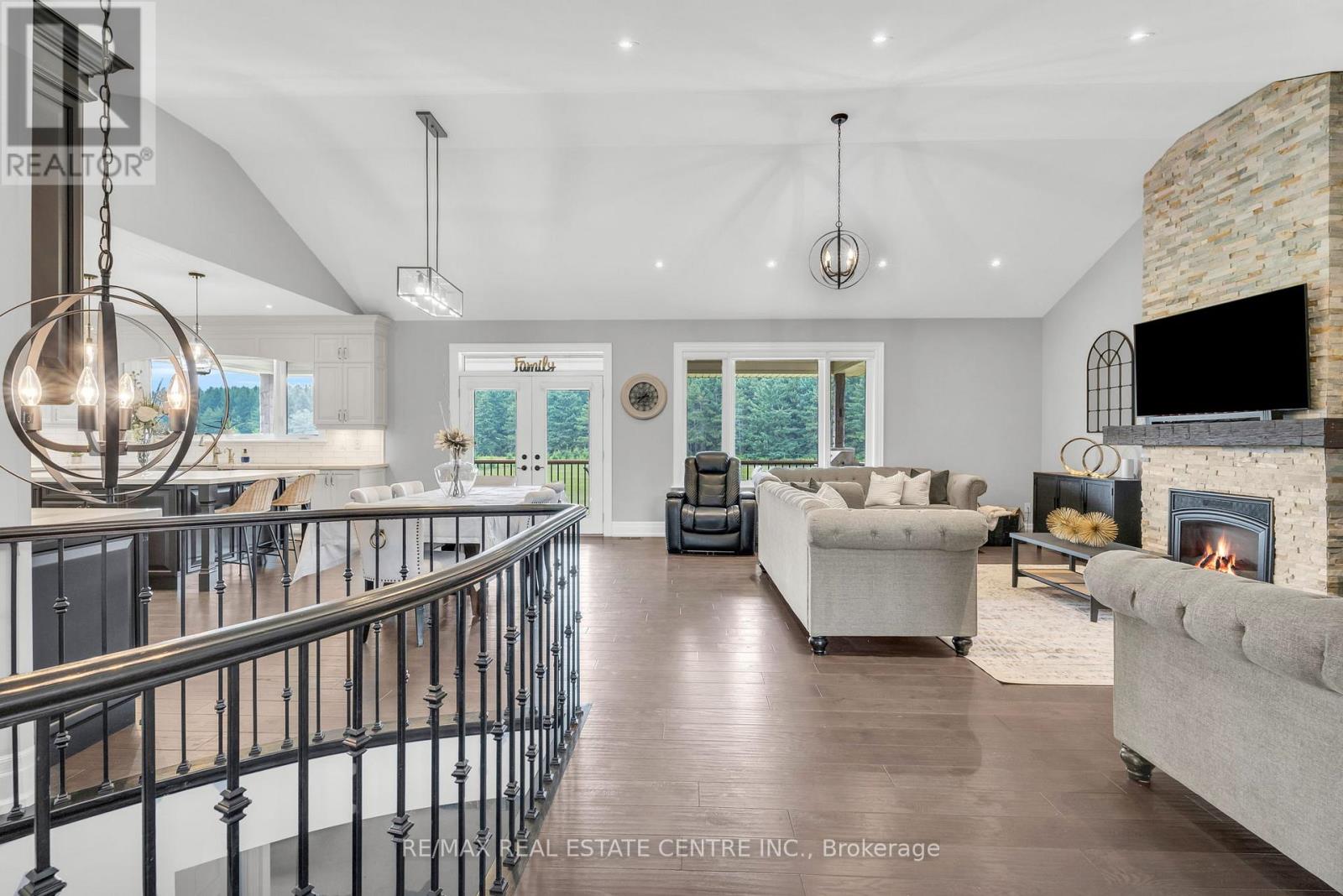 Welcome to 023181 Erin East Garafraxa Townline, where refined country living meets modern convenience. Set on 4.5 private, tree-lined acres, this custom-built bungalow was constructed solid and built to last, offering exceptional craftsmanship and enduring quality. Tucked well back from the road yet just minutes to Erin, Orangeville, and essential amenities, this property delivers privacy without compromise.Designed with family living in mind, the home features 3 spacious bedrooms plus a versatile den easily converted to a 4th bedroom or home office. Four beautifully finished bathrooms and a bright, open-concept layout create a seamless flow throughout the main level. Soaring ceilings and expansive windows fill the home with natural light, enhancing the warm and inviting atmosphere.The kitchen, dining, and living areas connect effortlessly, perfect for entertaining or enjoying quiet evenings at home. The primary suite offers a peaceful retreat with a spa-inspired ensuite and serene views of the surrounding landscape.The walk-up basement provides incredible flexibility for additional living space, multi-generational living, or a custom recreation area tailored to your needs.Outside, the impressive 1,400 sq ft detached workshop/garage is heated and dry walled, ideal for hobbyists, entrepreneurs, or additional storage for vehicles, tools, and equipment.Rogers Fibe high-speed internet is now available and run directly to the property, offering reliable connectivity for work and everyday life.Surrounded by mature trees and open space, this is a rare opportunity to own a luxurious, family-friendly country property with modern amenities just minutes from town. (id:64974)