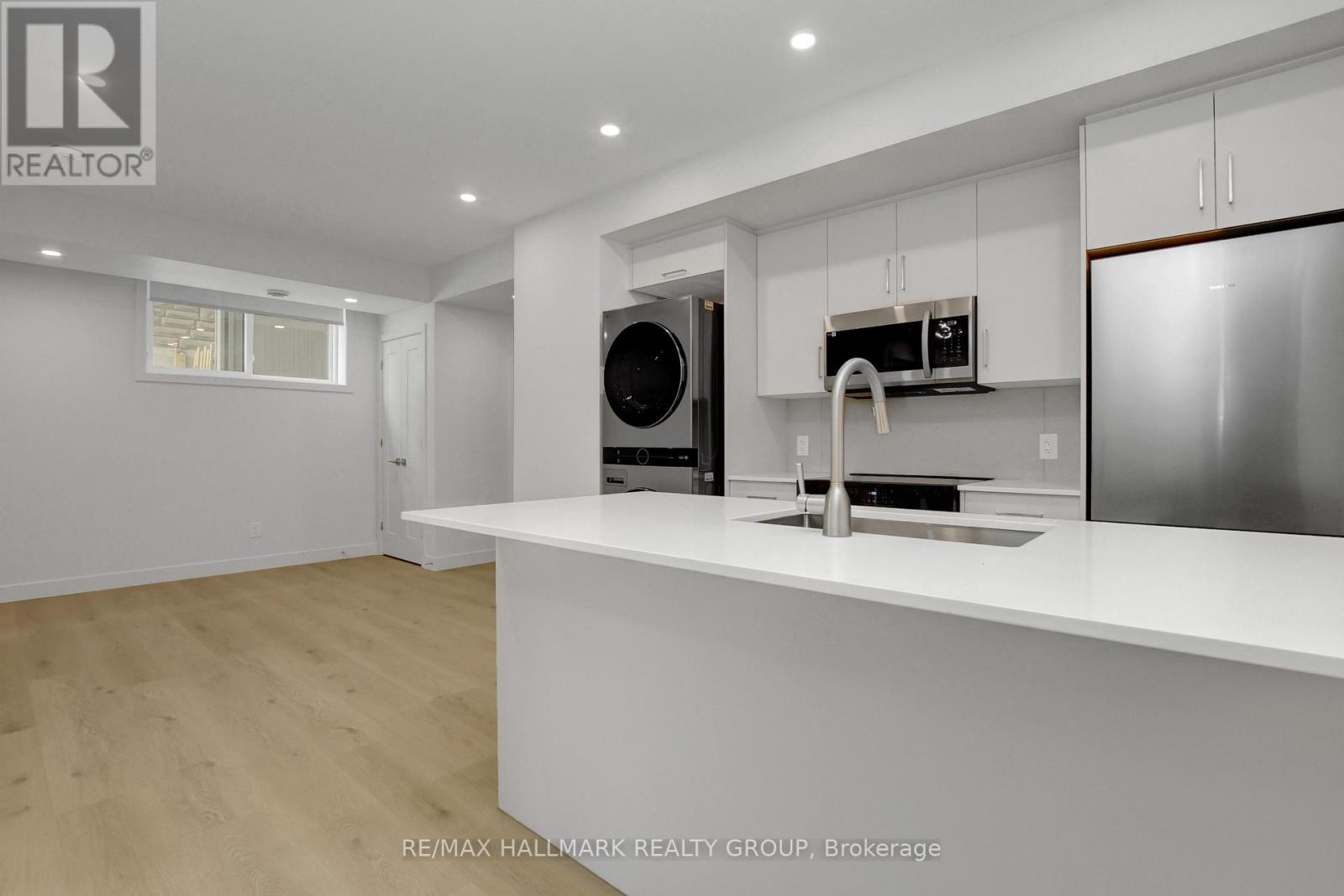 Available immediately for rent. Welcome to this large, bright 1 bedroom lower unit at 137 Marquette Avenue, located in a newly built all brick building just minutes from the University of Ottawa, Sandy Hill, LRT transit, Rideau Centre, and downtown. Inside, enjoy quartz countertops, 9 foot ceilings, a large kitchen island with pantry, in unit storage, and high end appliances and finishes throughout. The unit features its own hot water tank, furnace, and thermostat, offering forced air heating with central A/C and full control of your temperature year round. All five appliances are included: refrigerator, stove, dishwasher, over the range microwave, plus in unit laundry with your own washer and dryer. A security system with exterior cameras is also provided for added peace of mind, and the unit is Rogers internet and cable ready. Please note there is no parking on site, however a City of Ottawa residential parking permit is available. Surrounded by parks, bike paths, shopping, cafés, and restaurants, this modern unit offers exceptional convenience in a prime central location. Water is included, Hydro is extra. (id:64974)