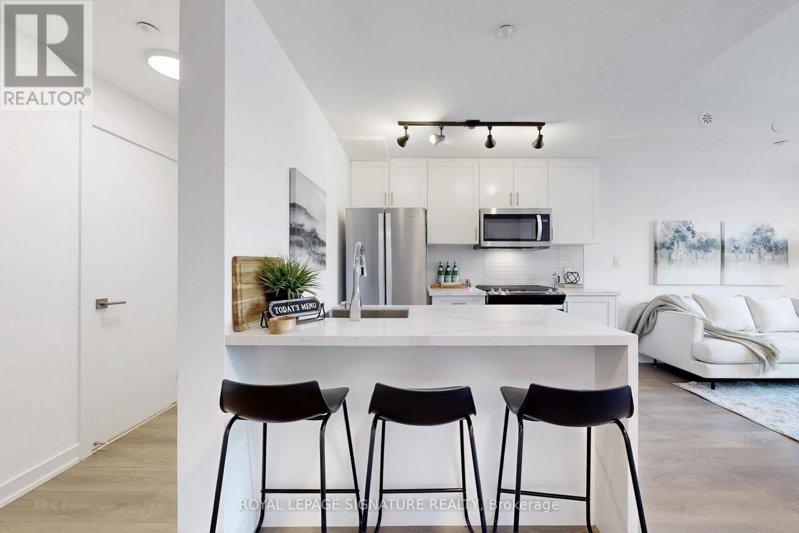 Under One Year New, spacious modern bright 2 story Townhouse. Over 1,135 sq.ft. Open Concept living and dining room with walk out to balcony. Huge Kitchen Island, Stainless Steel Appliances, Backsplash, Quartz countertop. Main floor powder room, storage room. Laminate floors throughout. All existing light fixtures and all existing custom window blinds included. One Parking and Locker Included. Fantastic location, TTC at your front door, shopping, minutes to Hwy 404, 401, Eglinton LRT, Eglinton Square Shopping Center, Shops at Don Mills plaza, parks, schools, etc. (id:64974)