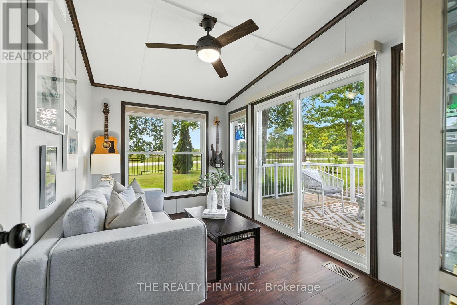 Live the resort lifestyle year-round in Unit #1 at Oriole Park Resort--a rare gem in Komoka just 10 minutes west of London. This vibrant four-season retirement community offers a peaceful, cottage-like setting and this 3-bedroom, 2-bathroom modular home is packed with features that make everyday living feel like a getaway. Inside, enjoy hand-scraped laminate floors, an open-concept living, dining, and kitchen area filled with natural light, plus generous closet space at the entrance. The kitchen features stainless steel appliances, tile backsplash, and ample cabinetry. Off the dining area, step onto a private back deck with patio space and a nearby propane hook-up--perfect for summer BBQs.The main 4-piece bathroom is equipped with built-in storage and a convenient stacked washer/dryer. All bedrooms are bright and spacious, with great closet space. One room functions beautifully as a sunroom, an office or third bedroom--your choice! From there, sliding doors lead to a cozy enclosed deck for even more outdoor enjoyment. The primary suite features vaulted ceilings, generous closet space, and 3-piece ensuite. Enjoy unobstructed outdoor views with a neighbouring lot that will remain vacant--offering extra privacy and serenity. A storage shed adds practical outdoor space for tools and gear and two parking spaces is a bonus! But what truly sets this home apart is the unmatched lifestyle Oriole Park offers: clubhouse amenities like a salon and spa, golf simulator, dog grooming station, fitness centre, pickleball court, event space, library, and a fully licensed bistro/bar with a pool table and darts. Stroll the beautifully landscaped grounds, complete with koi ponds, shuffleboard, an off-leash dog park, saltwater pool, community fire pit and garden, and BBQ areas.If you're ready to downsize without compromise, Unit #1 is your ticket to affordable, stylish, and social living in one of the regions most unique communities. (id:64974)