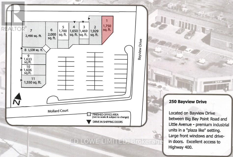 1750 s.f. of finished space, corner unit with great exposure to Bayview Dr in Barrie's south end. Busy Street. Ample Parking. On bus route, close to Highway 400 access, Recreational Centre, shopping and restaurants. Tenant pays utilities. $13.00/s.f./yr & TMI $7.75/s.f./yr + HST, Utilities. (id:64974)