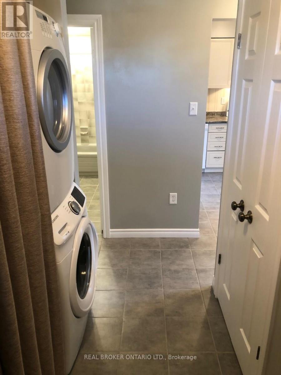 Beautiful one bedroom condo centrally located, perfect for commuters, close to HWY 400. Walking distance to grocery stores, take out restaurants and public transit. Don't miss out on this spotless self-contained unit which boasts in suite laundry, updated decor, dishwasher, and lots of storage. Large kitchen with ample cupboard and counter space, tile and laminate flooring throughout, clean and well lit by natural light. Large bedroom with spacious closet and walk out to a private balcony that has a wonderful view of the city of Barrie. Parking is just steps away from your front door, with no stairs to climb. Tenants will have access to property amenities including outdoor pool, exercise room, sauna, playgrounds throughout and visitor parking. 1 parking spot and water included; additional parking available ($). (id:64974)