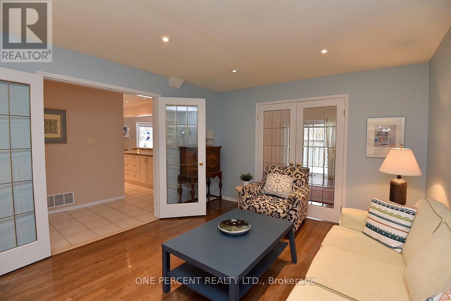 Roseland Green is in a Family Friendly Neighborhood in Desirable South Burlington just steps to the Centennial Bike Trail. This PREMIUM END Unit Executive Townhome features a Double Driveway & Double Garage with Inside Entry! The End Unit offers an Abundance of Natural Light with EXTRA Windows on the side of the Home. Gorgeous Updated Kitchen with a Quartz Breakfast Bar, Soft Close Drawers, SS appls & Gas Stove. Bright Open Concept Kitchen/Dining/Living areas for seamless entertaining flow. Enjoy the Elegant gas Fireplace, Cathedral Ceilings & W/O to fenced landscaped patio/yard with retractable awning. Stunning Sep Family Rm with French Doors & Wall of Custom Built ins. Rarely Offered Main Lvl Laundry with a pretty french pocket door. Two Bedrooms upstairs & a Large 3 Pc Bath with a serene Skylight. The Spacious Finished Bsmt area provides another 726 sq ft with a 3rd Bedroom with Double Closets, 4 Pc Bath & Rec Rm. A Fantastic Guest Suite or Teen Retreat! XLarge Storage/Utility Room. An Exquisite unit where Pride of Ownership is evident. Condo Corp Replaced Shingles in 2024, Windows 2020, Front aggregate walkway. They shovel the Driveway & Walkway. EASY LIVING! Nothing left to do but Move In! This home offers a Premium Low-maintenance Lifestyle! Located in the charming & prestigious Roseland area. Close to Marilu's Market, Downtown, Central Library, Rec Centre, YMCA, Lake ON & more! (id:64974)