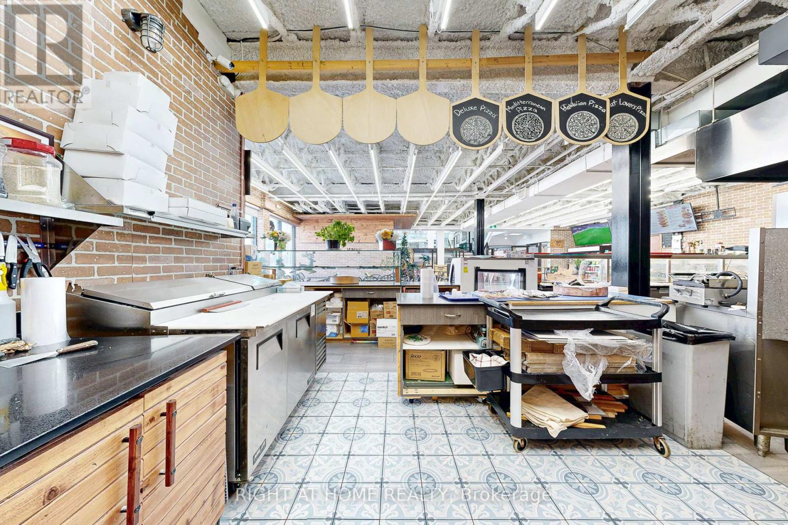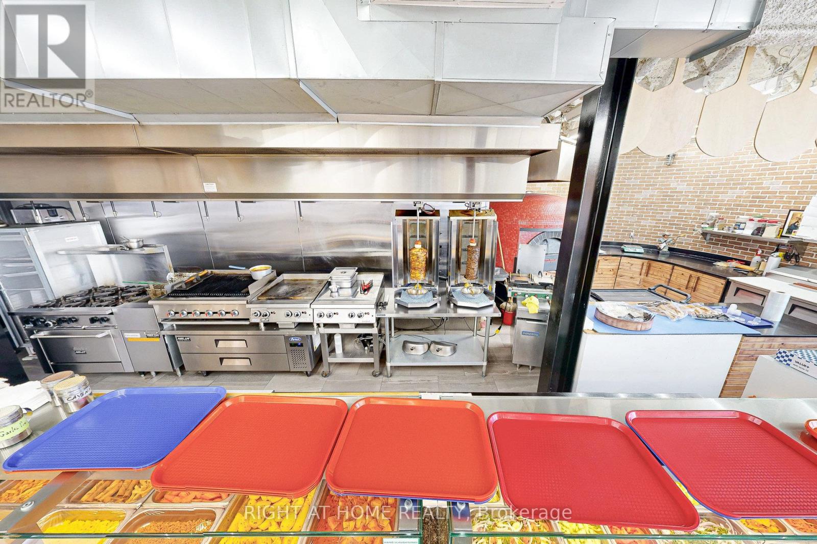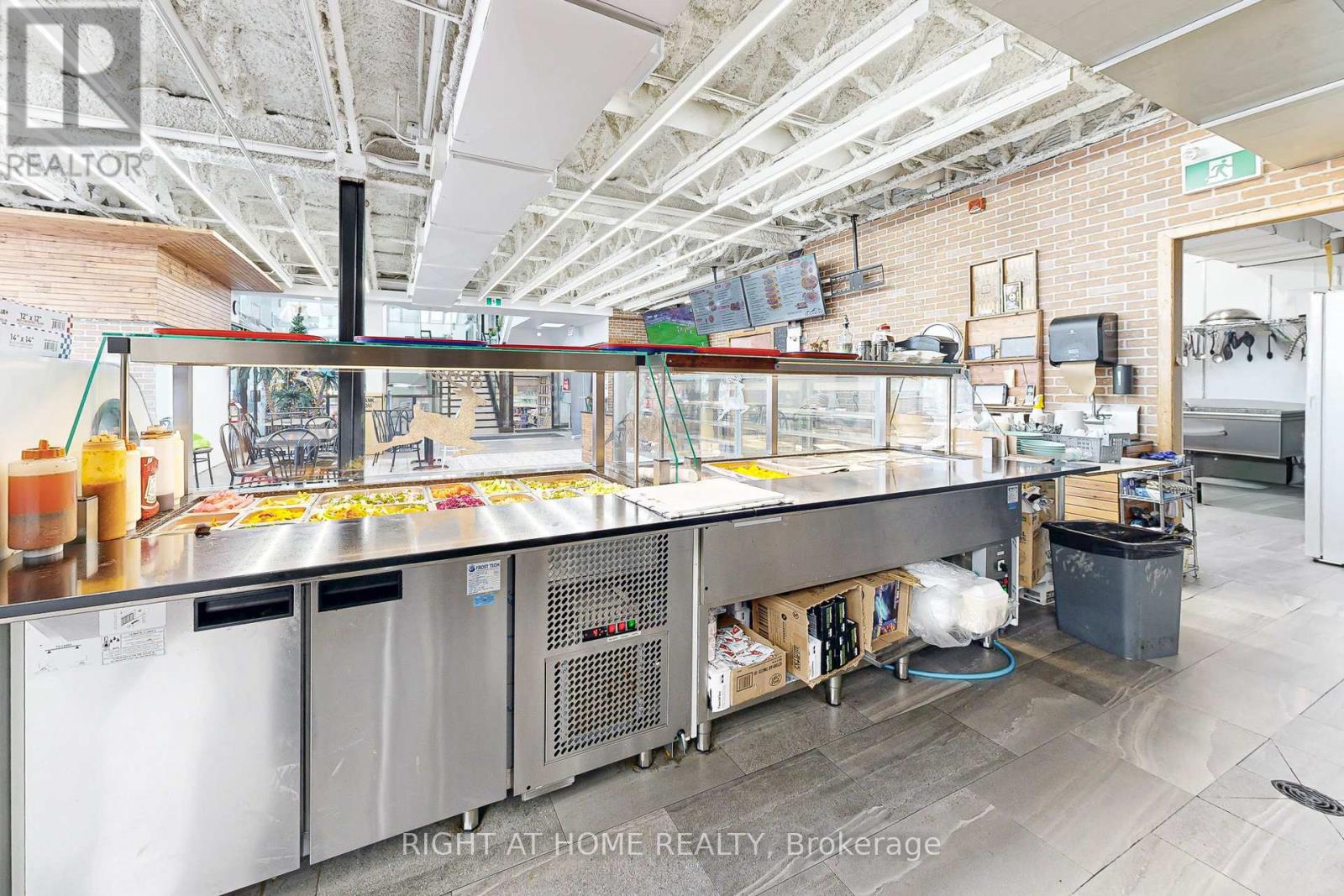 Street-front commercial space across from Yorkdale Shopping Centre. Approx. 2,500 sq ft with existing commercial kitchen build-out, including specialty pizza oven, hood, exhaust, fire suppression, gas, electrical and prep areas installed by prior operator.Previously operated as a restaurant. Space may be suitable for restaurant, pizzeria, catering, commissary or ghost kitchen, take-out and online delivery, or other commercial or experiential uses including virtual reality or entertainment concepts, subject to zoning, permits, and Landlord approval. (id:64974)