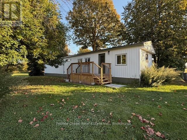 Better than new! Fully renovated mobile gutted to the studs with new insulation in the walls, floor and ceiling, new drywall and plumbing. Features include new flooring throughout, some replacement windows, an updated kitchen, with plenty of cabinets and pantry with pull-out shelving, updated 4 pc bath with laundry hookup, 3 bedrooms and new deck. The maintenance free exterior sports new vinyl siding and a metal roof! This beautiful home is set on a large corner lot with mature trees, just minutes south of Clinton in a quaint land lease community. Bonus - new fridge, stove, washer & dryer included! Available for immediate possession. (id:64974)