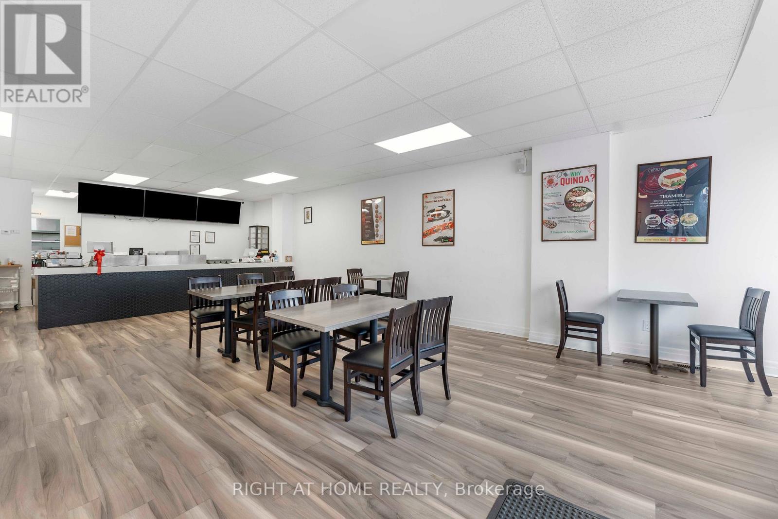 Be your own boss, Commercial zoning permits many uses, currently set up as a fully functional dine-in Restaurant with 30 seats capacity. Excellent Exposure, Great downtown location on busy high traffic Simcoe St. Close to businesses, Offices, Tribute Center, College campus and new developments. Bring your Skills and Creativity to enhance your business in newly decorated place in downtown Oshawa. All new Leasehold improvements done in 2022/2024: New 8' exhaust hood & fan, Fire Suppression system, Fryer, Walk-in-cooler, chest freezer, prep tables, three compartment sink with grease trap, basement fire-proofed. 2 new Washrooms-one accessible. New Furnace & HWT and much more. (id:64974)