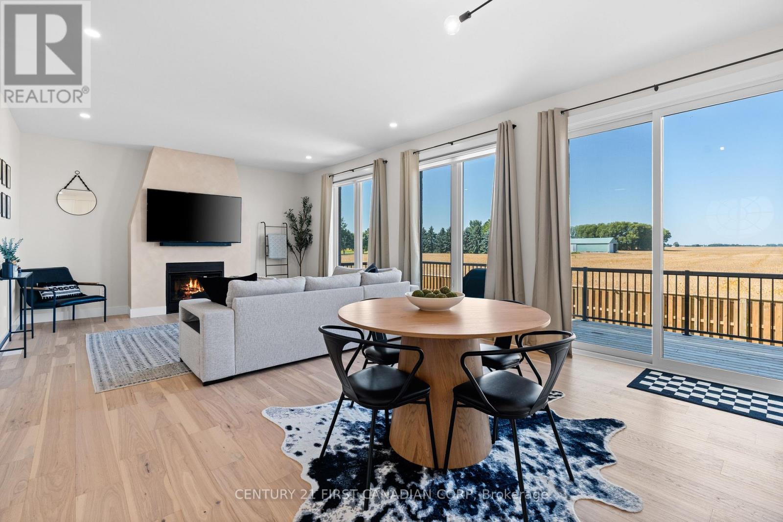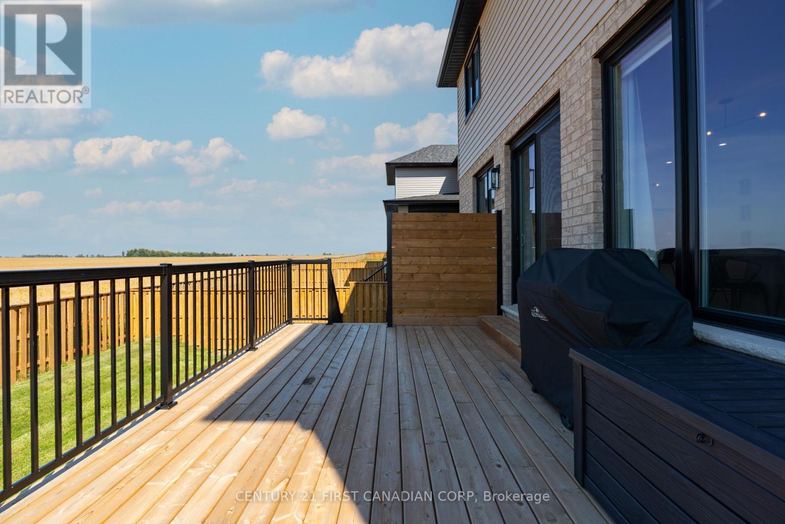 Modern living with small-town charm in this detached two-storey home in Granton! Built in 2024, this vacant land condo is perfectly set on a corner lot backing onto open farm fields. With 4 bedrooms and 2.5 bathrooms, this home features a two-car garage and a bright, open-concept design. The main floor is highlighted by a dedicated office, a great room with fireplace, and a dining area that flows into the sleek kitchen with large centre island and walk-in pantry. A two-piece powder room and a mudroom with garage access add convenience. Upstairs, are find four spacious bedrooms, including a primary retreat with walk-in closet and spa-like five-piece en-suite, plus a four-piece bath and a dedicated laundry room. Outside, a deck runs nearly the full width of the home, overlooking a private yard and wide-open views of the fields behind. Granton is a welcoming community just minutes from London and St. Marys, where you can enjoy peaceful living, friendly neighbours, and the charm of small-town life with easy access to city amenities. (id:64974)
