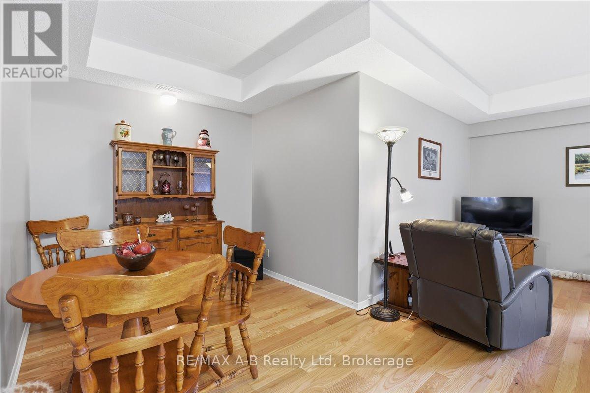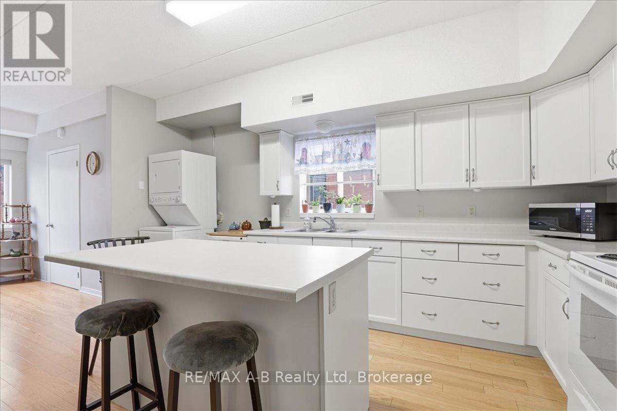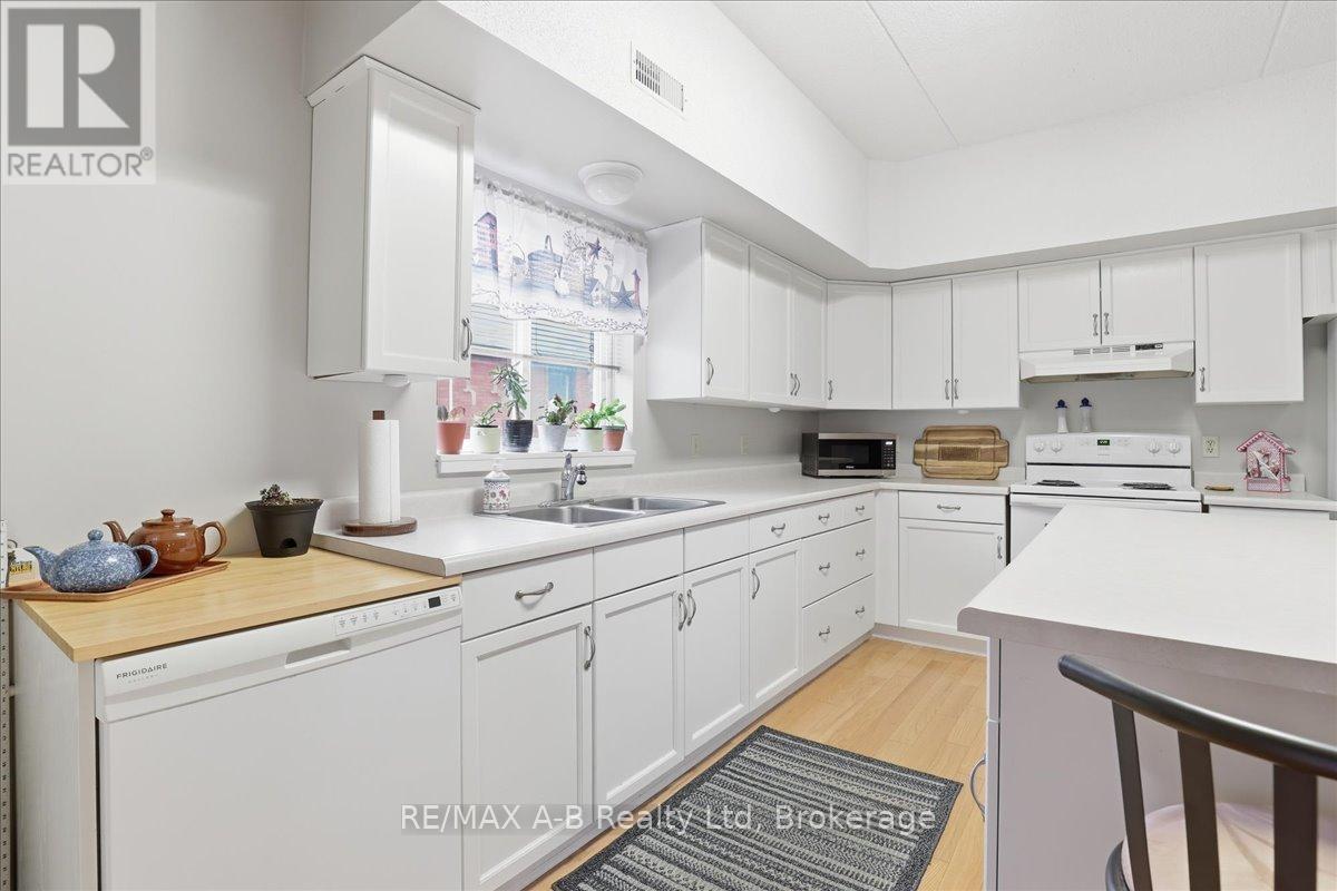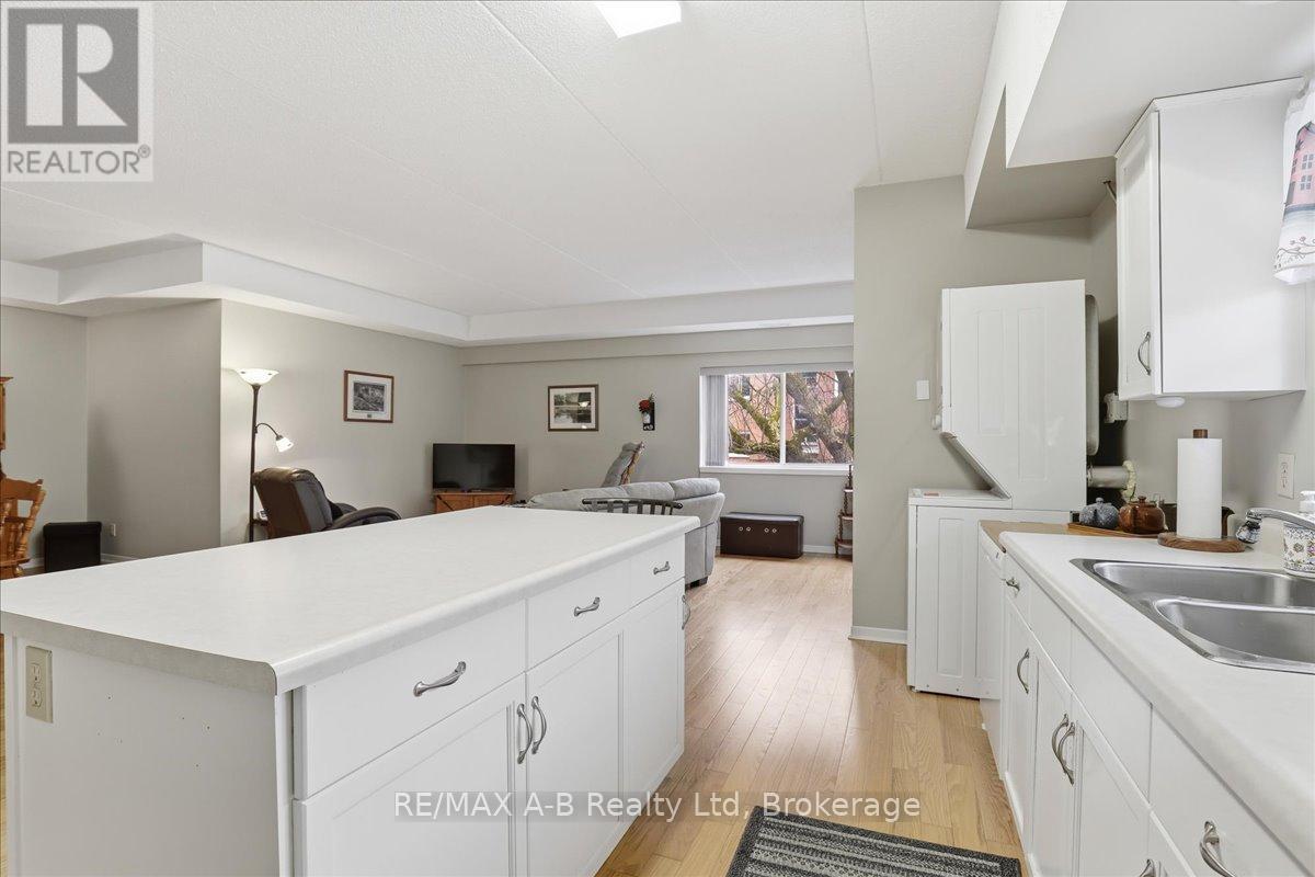 Discover this charming two-bedroom condo just one block from Downtown Stratford, where you can enjoy easy access to local restaurants, shops, and everyday conveniences. This bright and spacious unit features an open-concept layout that seamlessly connects the kitchen, dining, and living areas-perfect for both relaxing and entertaining. Large windows fill the space with natural light, while the well-designed kitchen offers ample counter space for cooking and hosting. Additional highlights include covered parking, a dedicated storage locker, and soundproof block construction for added comfort and privacy. Set in a welcoming community with friendly neighbors, this is a rare opportunity to own a beautifully maintained home at an exceptional value. (id:64974)