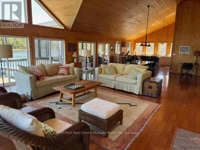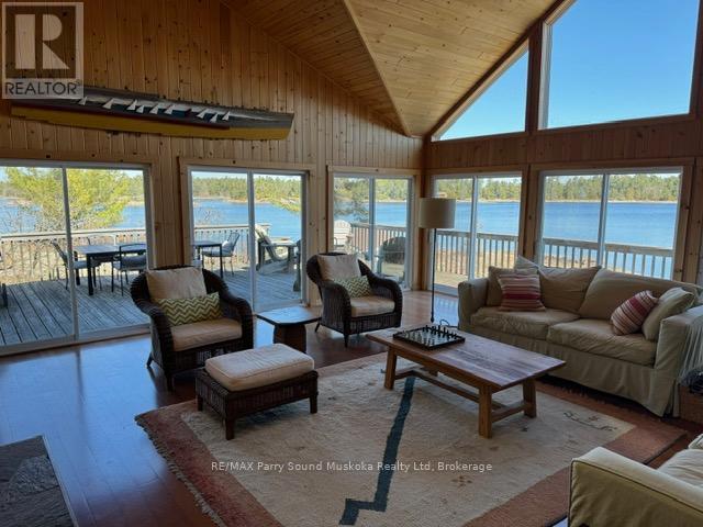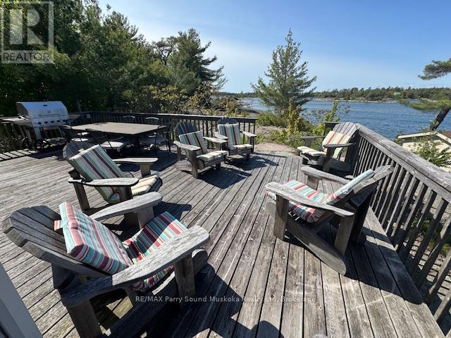 AMAZING RARE TURN-KEY ISLAND OPPORTUNITY IN POINTE AU BARIL! This is a true turn key opportunity in quiet Fredric Inlet with an island that is very private with many walking paths. This 6 Bedroom, 3 Bathrooms and 2 Shower Cottage can sleep up to 14, is well kept with a new last year solar system and generator and almost new steel shake roof. Two sheltered docks. 20 mins to Pointe au Baril marinas and ten to the historic Ojibway club. Island has a private beach and great sunset and Shawanga Bay views. All furnishings, appliances and finishes are top drawer. Crown Verity BBQ on deck, 4 propane tanks, Jotul air tight wood stove keeps cottage cozy Spring and Fall. Bunkie has two bunk bedrooms and bathroom between them. There is a separate building with a shower and washing machine. New submersible water pump. Boat shed is 3 years old. Dock decking replaced 2 years ago. 7KW Honda EU Generator is two years old, as is solar system. Cottage totally mouse proofed when built. Cottage has 3pc. bath, 4 generous bedrooms and bunkie can sleep 6 with two bunk bedrooms a Jack and Jill bathroom. The kitchen appliances are all new as are the granite counter tops and soft close drawers. This is a real gem separate island cottage in a great private location for watersports and deep easy access from Pointe au Baril! Island is surrounded by Crown Land! (id:64974)