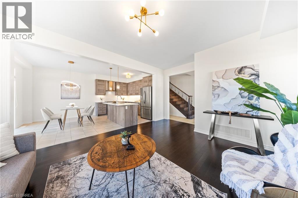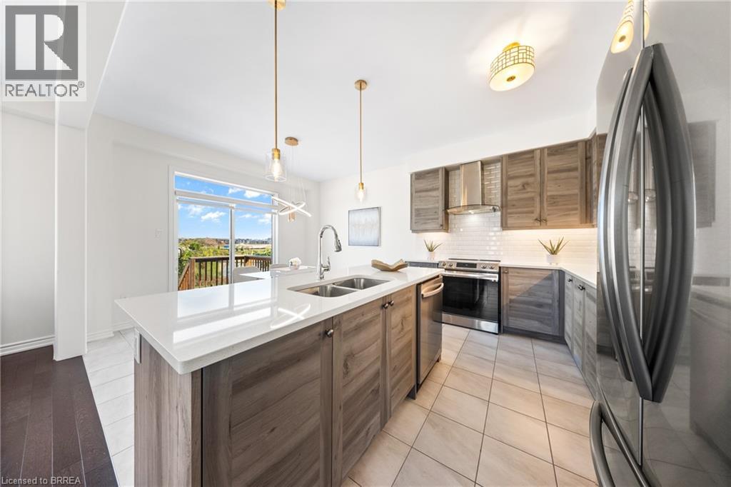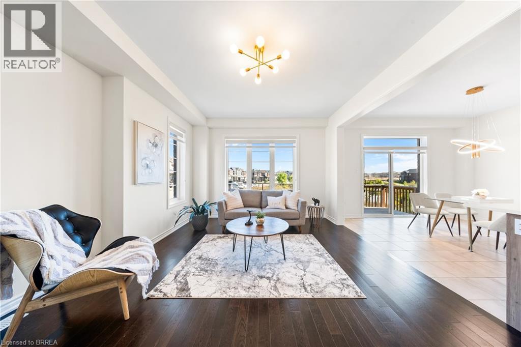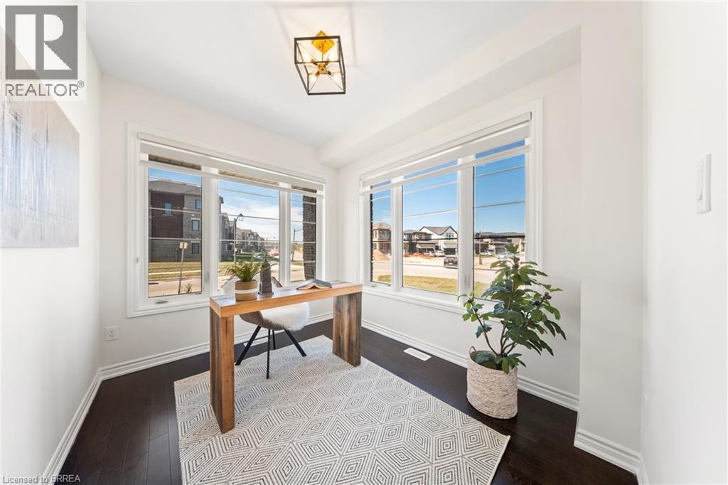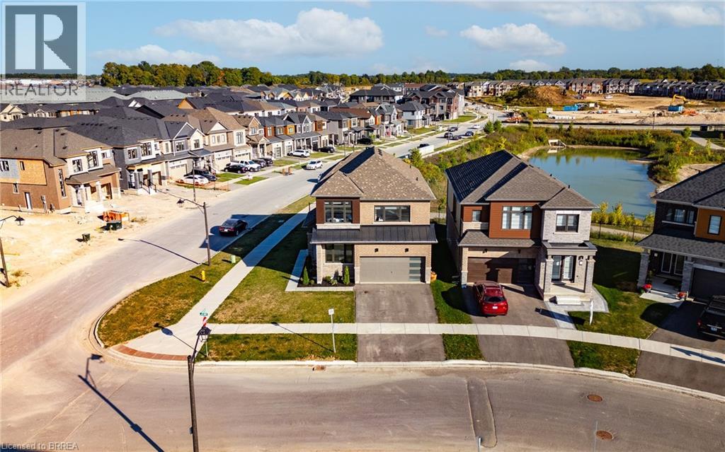 1 Bee Crescent isnt just a home - its a statement. Sitting proudly on a corner lot in West Brant, this modern showstopper delivers over 2,100 sq ft of bold, stylish living with 4 bedrooms, 3.5 baths, and a layout that screams lifestyle. The moment you step inside, you're greeted with space and light. A versatile office/sitting room and powder room kick things off before the home opens up into the heart of it all - a massive open-concept living, dining, and kitchen zone built for entertaining, relaxing, and everyday family life. The kitchen is a chefs dream with quartz counters, stainless steel appliances, and endless storage, all framed by oversized windows that pull in natural light and backyard views. Upstairs, the hardwood stairs and hall lead you to a level designed for comfort. The primary retreat is pure luxury a spa-style ensuite with separate tub and shower, dual closets (including a walk-in), and space to breathe. Three more large bedrooms, a full bath, and laundry right where you need it complete the floor. Outside, the modern curb appeal speaks volumes: double car garage, professional landscaping, striking exterior design - and the ultimate backdrop - this home backs onto a trail, greenspace, and pond. Imagine morning coffee with nature as your neighbour. All of this, steps from schools, trails, parks, shopping, dining, and exciting new amenities in Brantfords fastest-growing neighbourhood. Why settle for ordinary? Start living your dream lifestyle at 1 Bee Crescent - where modern design meets everyday magic. (id:64974)