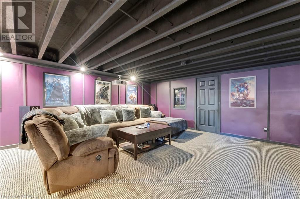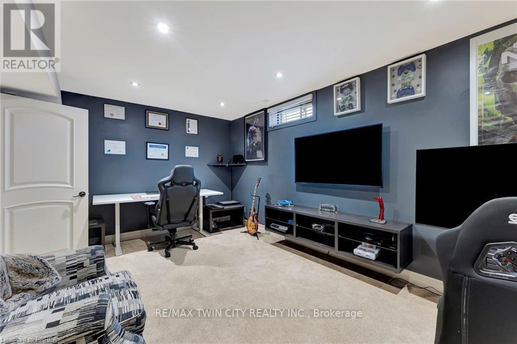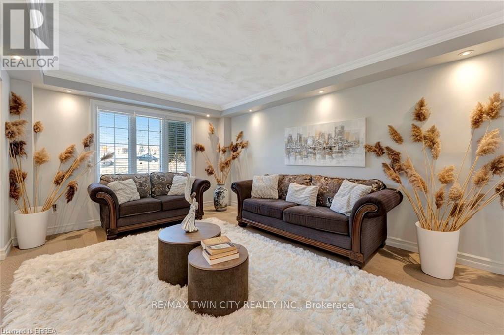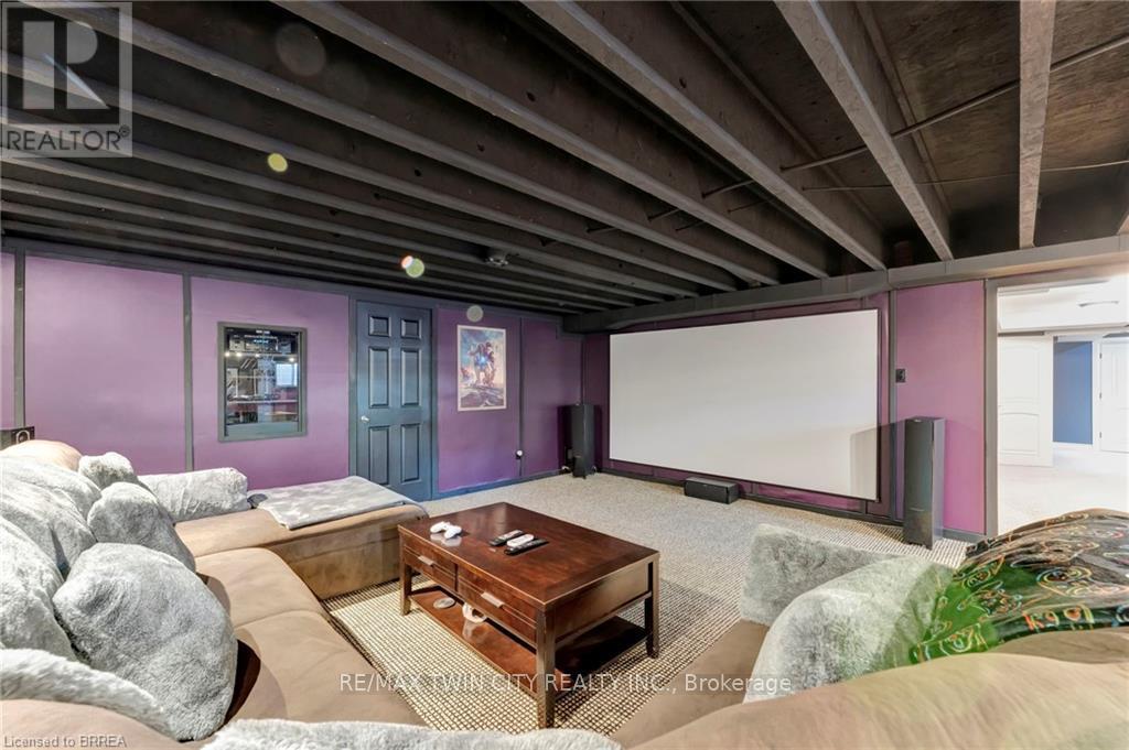 Welcome to 1 Bowen Lane, a show-stopping 4-bedroom, 3-bathroom home on a premium corner lot in the heart of West Brant. Offering over 3,800 sq ft of finished living space, this beautifully maintained home delivers space, style, and standout features at every turn. The main level is designed for both everyday living and effortless entertaining, featuring a spacious kitchen with abundant counter space and a charming breakfast nook-perfect for morning routines or hosting lively gatherings. Two expansive living rooms, including one with a cozy fireplace, plus a formal dining area, provide exceptional flexibility for families and entertainers alike. Upstairs, you'll find three generously sized bedrooms, highlighted by a private primary retreat complete with a walk-in closet and ensuite bathroom. Downstairs, the fully finished basement truly elevates the home, offering a dedicated movie theatre, billiards room, exercise space, and office-your own all-in-one entertainment and work-from-home haven. Step outside to a beautifully landscaped, private backyard featuring a stamped concrete patio, vinyl fencing, and plenty of space to relax or entertain. An interlock double-wide driveway, ample storage throughout, and a heated garage add to the home's everyday convenience. Ideally located close to schools, parks, shopping, and dining, this exceptional property is move-in ready and not to be missed. Book your showing today-before someone else does. (id:64974)
