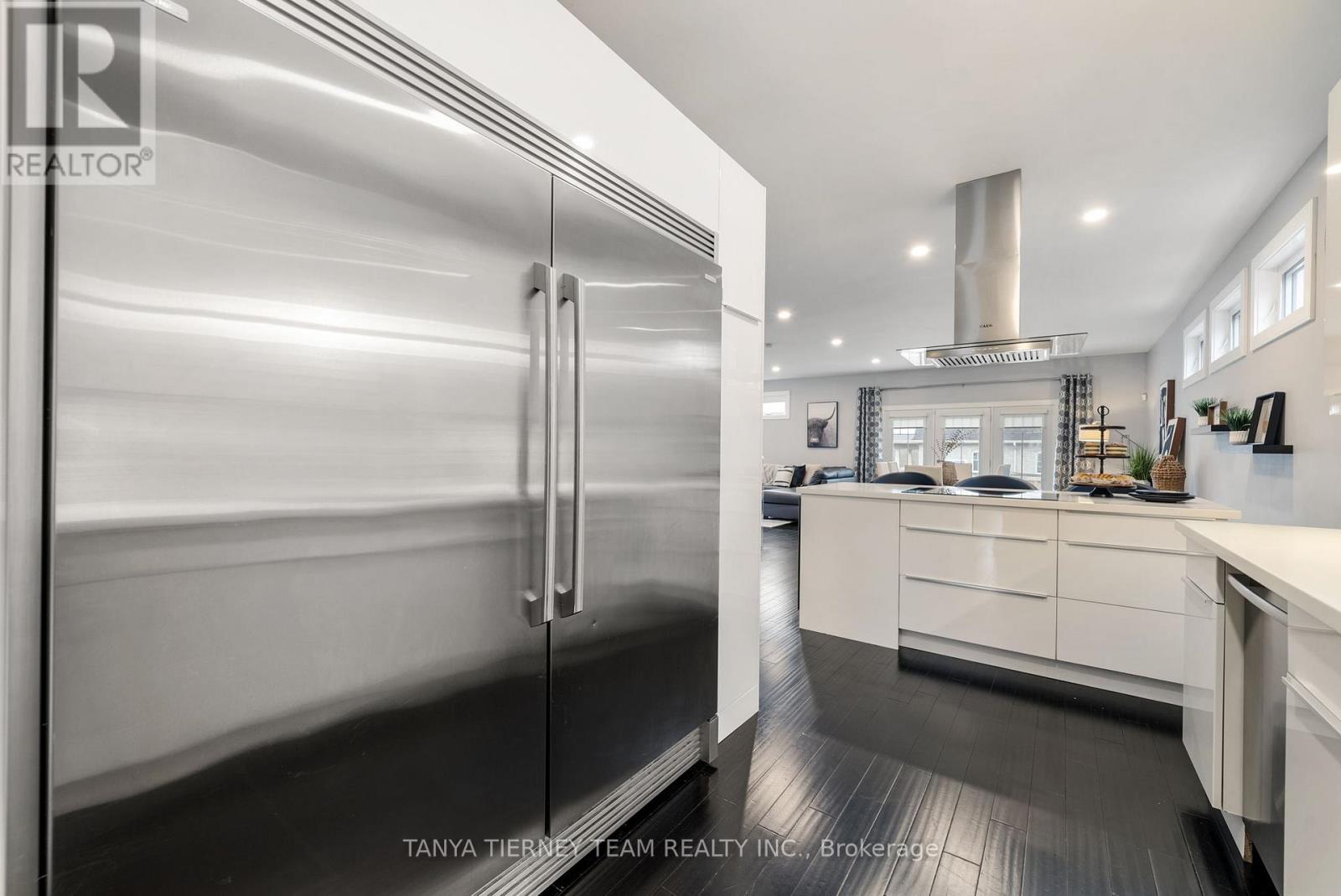 Custom built 4+1 bedroom family home with a separate legal basement apartment offers outstanding quality, design, and versatility. Built with 2x6 construction, foam insulation in all walls and attic, and upgraded soundproof windows, no detail has been overlooked. The main level features 9-ft ceilings, engineered bamboo and porcelain tile flooring, pot lights, and a bright open-concept living and dining area with walk-out to a professionally landscaped multi-tiered backyard complete with outdoor kitchen, built-in fire pit table, garden shed, and LED-lit stone walkways. The gourmet kitchen boasts quartz countertops, stainless steel appliances including a commercial-grade Electrolux fridge, double wall oven, dishwasher, centre island with induction cooktop (June 2025), and wine fridge. A glass-railed staircase leads to four spacious bedrooms. The primary retreat offers a Juliette balcony, walk-in closet, and luxurious 5-pc ensuite. Second and third bedrooms feature double closets. The fourth bedroom offers dual access from the hallway or a private staircase and includes a balcony, closet, and 3-pc ensuite-ideal for guests or extended family. External separate side entry (west side) leads you through to the legal 700 sqft basement apartment complete with 9-ft ceilings, above-grade windows, full kitchen, living room, bedroom with wall-to-wall closet, and 4-pc bath, plus separate furnace and A/C. Zoning allows you to live and operate a variety of Service Businesses out of your home while deriving additional rental income from the legal basement apartment. Additional features include new furnace (2023), central air (Sept 2025), rough-in for central vac, and an oversized double garage with extra height and depth. Located in the heart of Brooklin, close to parks, schools, downtown shops, and easy Highway 407 access! (id:64974)