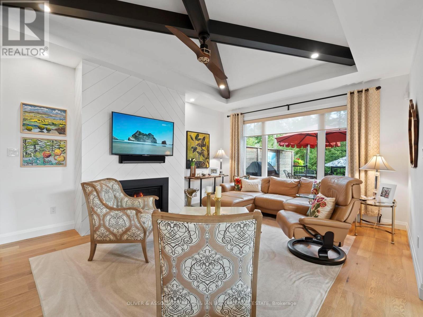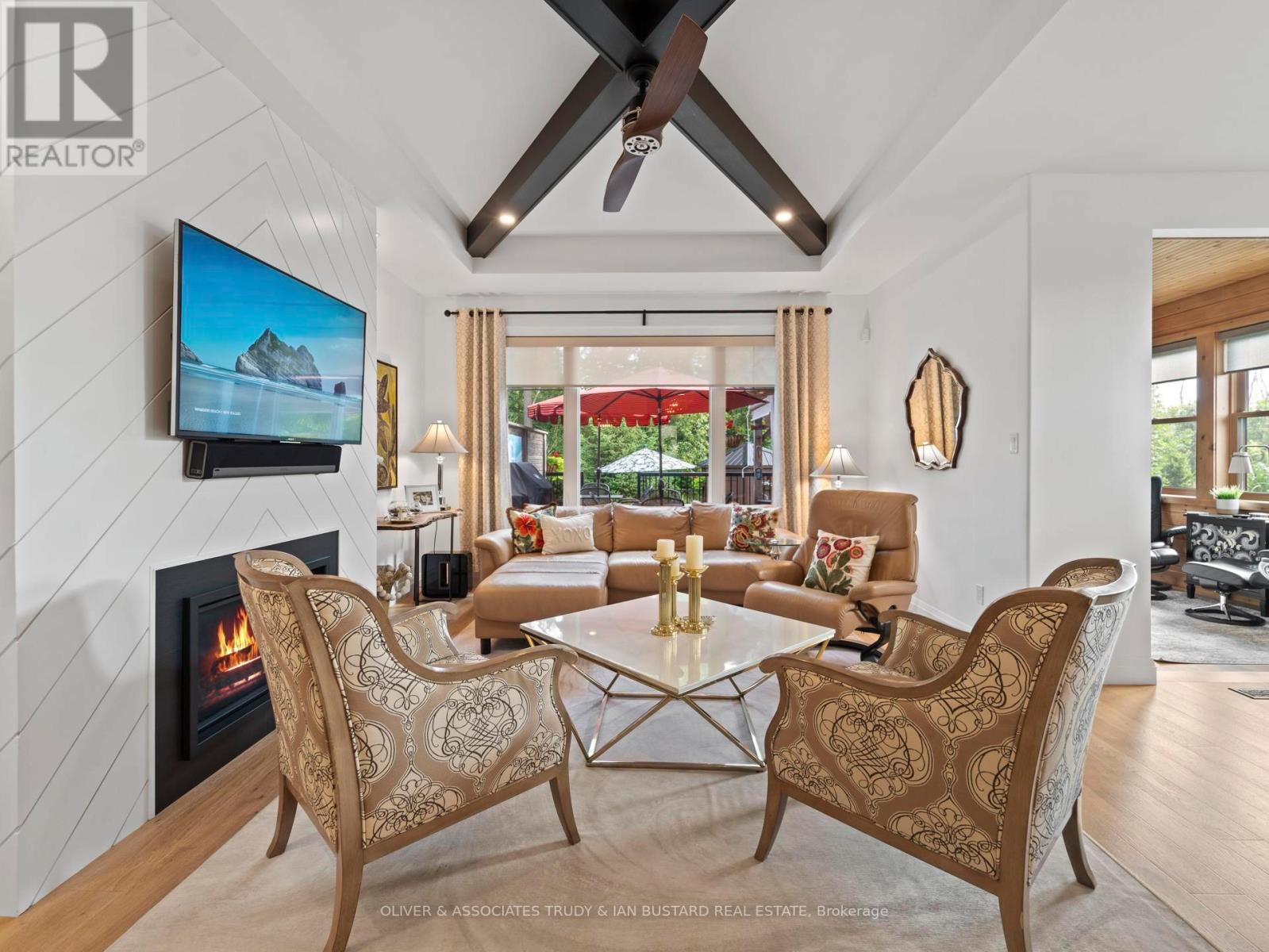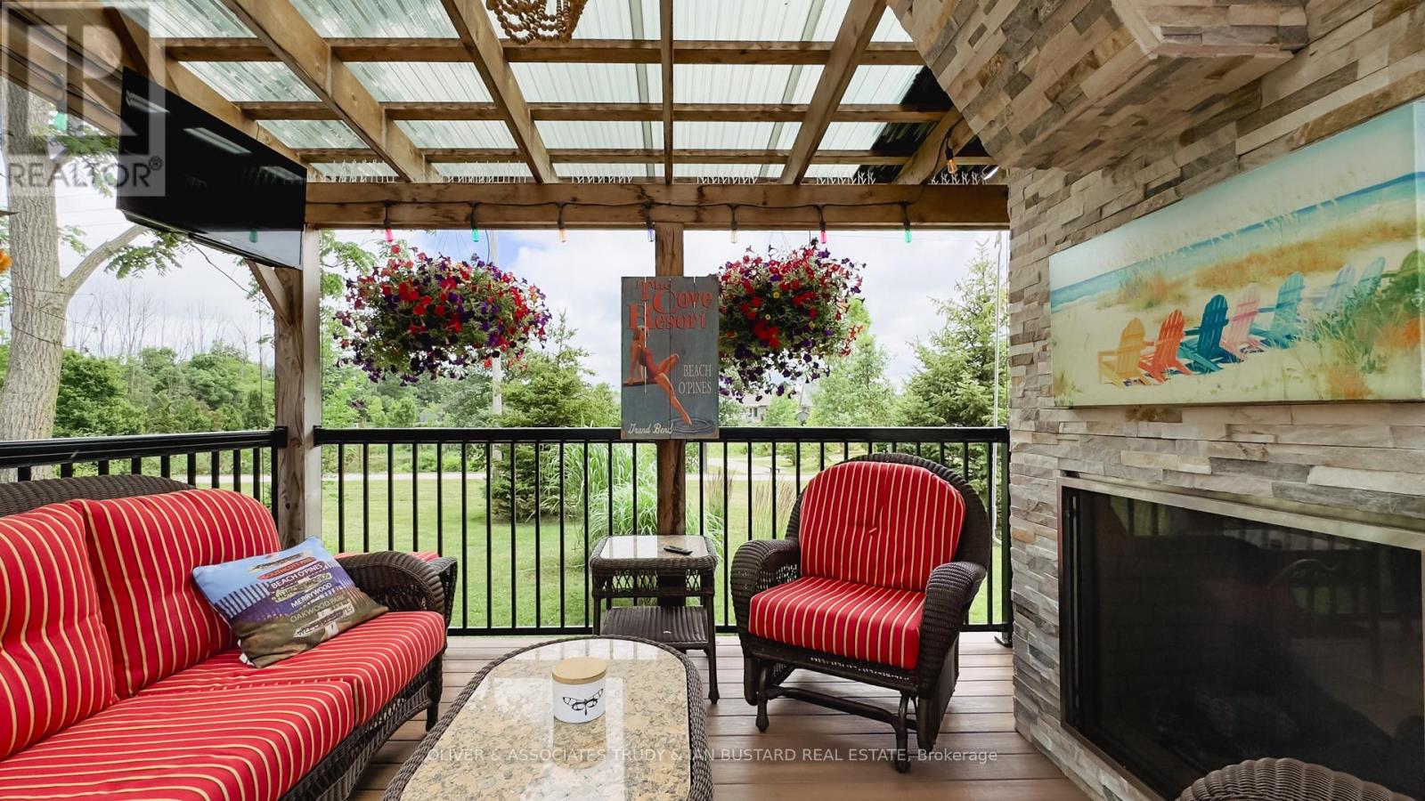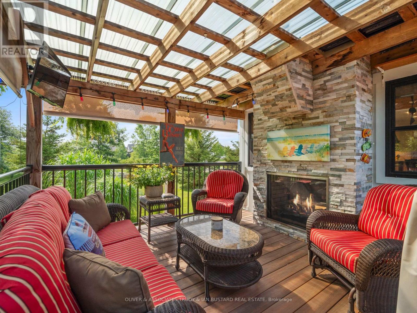 Immaculate Former Show Home in Creek Side Place This stunning 4-bedroom, 3-bathroom bungalow once the Medway Homes model offers 1,541 sq. ft. on the main level plus 1,278 sq. ft. of beautifully finished lower-level living space with large storage room. Ideally located beside open green space and a tranquil pond, this home blends luxury, privacy, and smart design in one exceptional package. Thoughtfully upgraded with over $200,000 in premium features, including an extended kitchen with added cabinetry, built-in coffee maker, microwave, and two-drawer fridge, recirculating pump, roughed in central vacuum. The bright sunroom with two-sided fireplace, tray ceilings, and oversized windows creates a warm, inviting atmosphere. Interior highlights also include Toto toilets, custom blinds, and a smartly designed laundry room that connects to the primary walk-in closet for seamless functionality. Step outside to a show stopping composite deck with pergola, three-sided privacy blinds, and a dog door for pet-friendly convenience. The fully fenced, professionally landscaped lot features a fire pit, outdoor shower, Generac generator, gutter guards, and a full irrigation system with 10 drip lines ideal for lawn, gardens, and hanging baskets. Shed has electricity. 30 amp breaker for RV. A rare bonus: the adjacent municipal lot is maintained and enhanced with mature trees planted (with approval) for maximum privacy and scenic enjoyment. This home is a true gem in Creek Side Place move-in ready, meticulously maintained, and built for indoor comfort and outdoor enjoyment. Quick access to downtown and beach is a foot bridge at the end of Creek Side that brings you out at Tim Horton's. (id:64974)