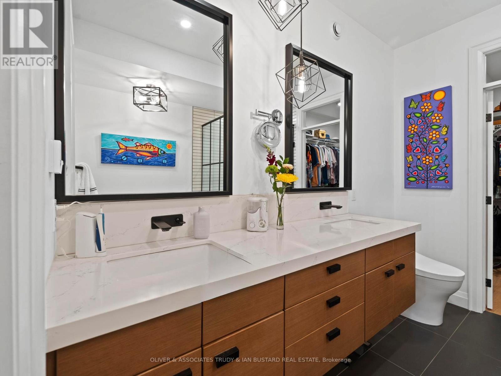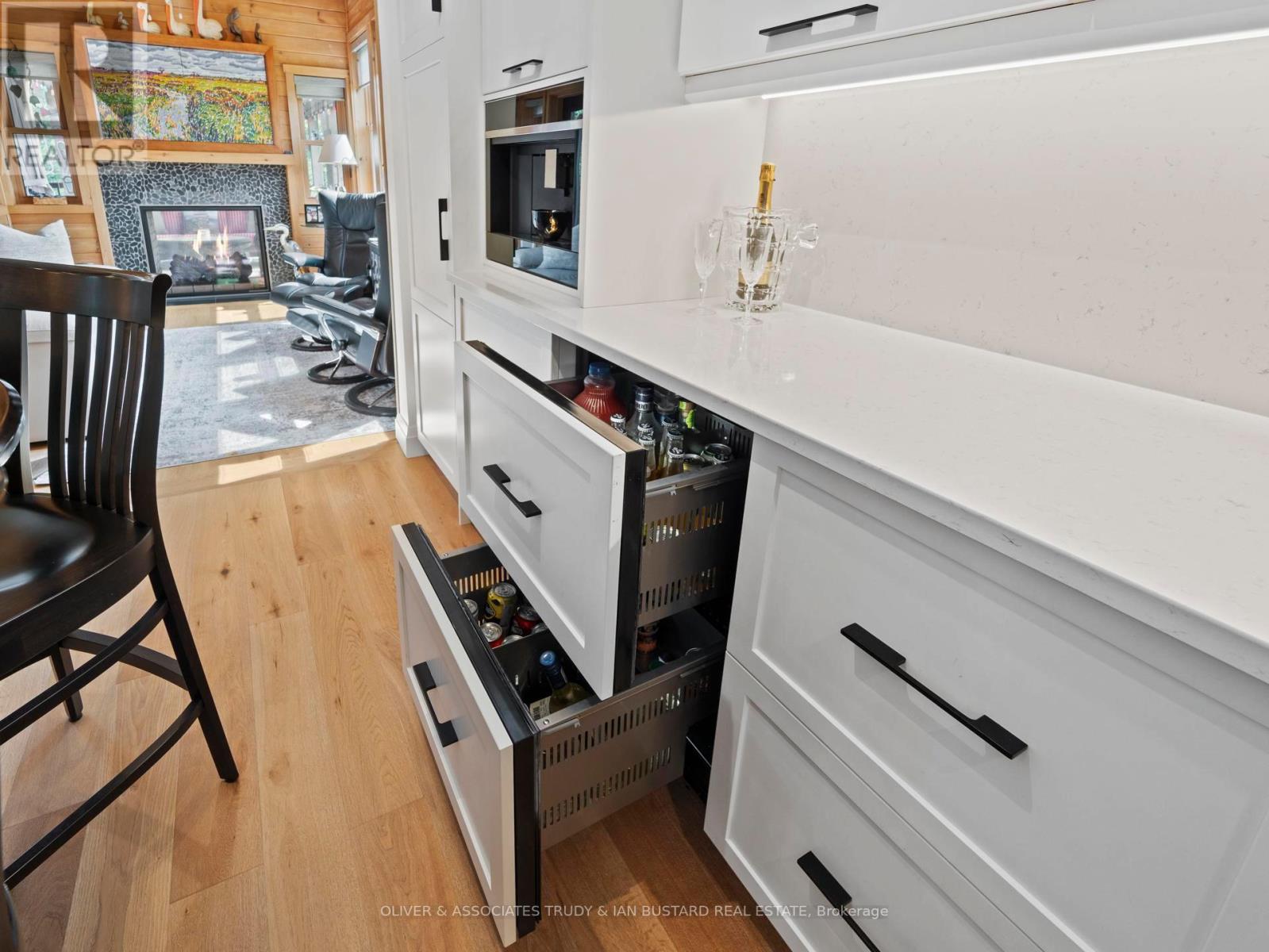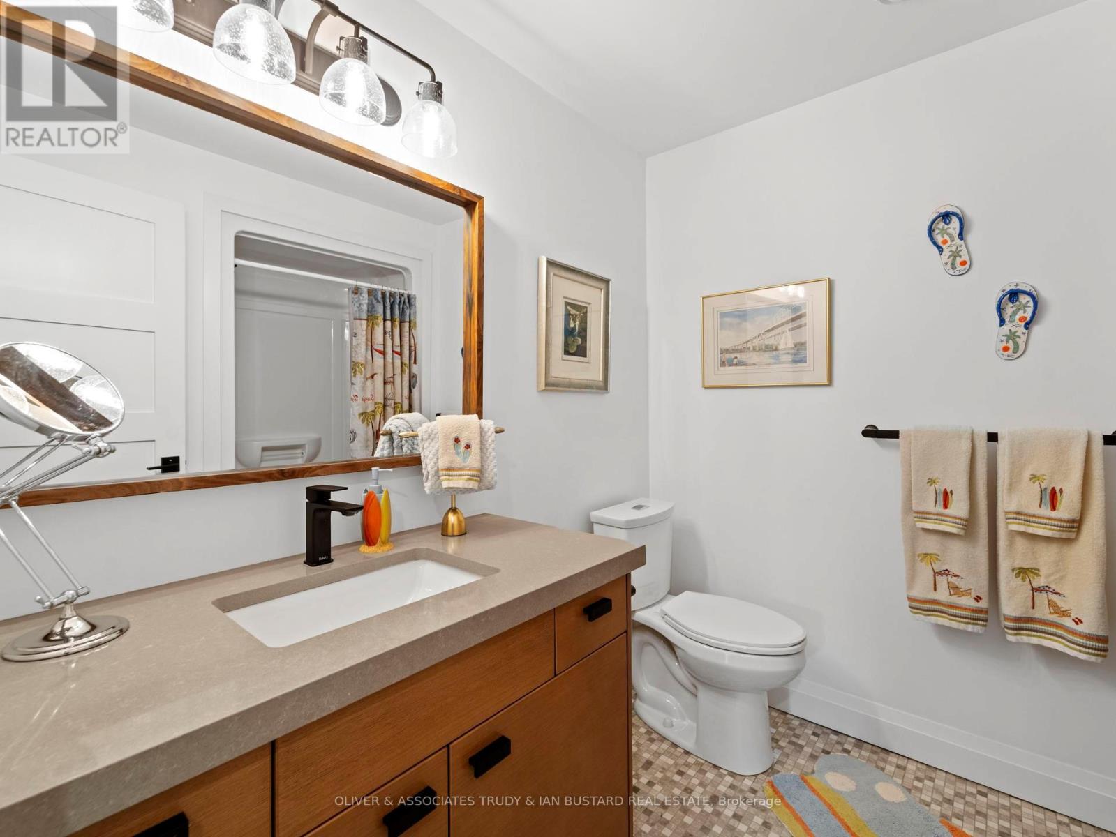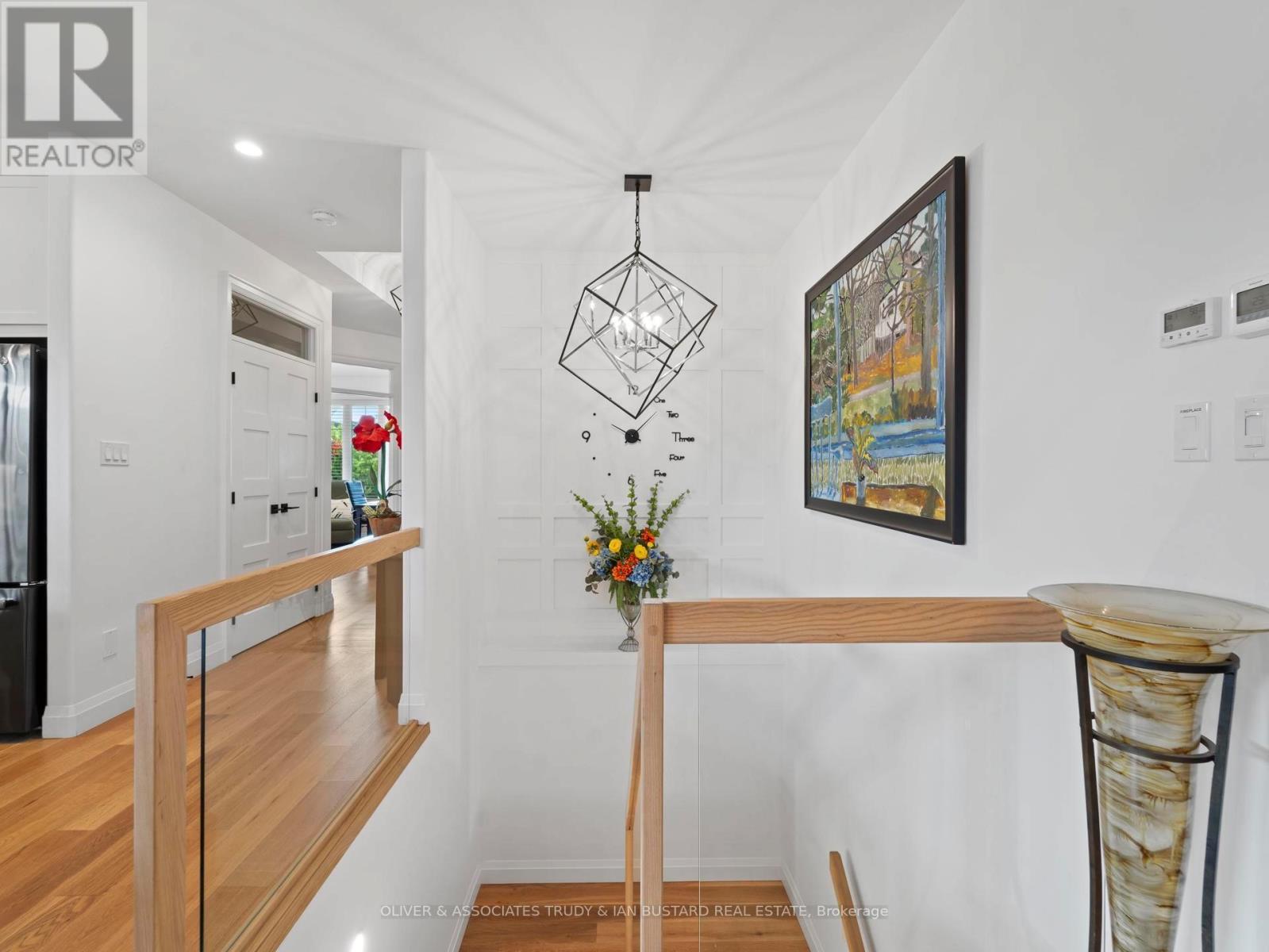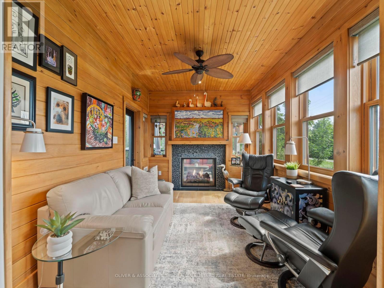Immaculate Former Show Home in Creek Side Place This stunning 4-bedroom, 3-bathroom bungalow once the Medway Homes model offers 1,541 sq. ft. on the main level plus 1,278 sq. ft. of beautifully finished lower-level living space with large storage room. Ideally located beside open green space and a tranquil pond, this home blends luxury, privacy, and smart design in one exceptional package. Thoughtfully upgraded with over $200,000 in premium features, including an extended kitchen with added cabinetry, built-in coffee maker, microwave, and two-drawer fridge, recirculating pump, roughed in central vacuum. The bright sunroom with two-sided fireplace, tray ceilings, and oversized windows creates a warm, inviting atmosphere. Interior highlights also include Toto toilets, custom blinds, and a smartly designed laundry room that connects to the primary walk-in closet for seamless functionality. Step outside to a show stopping composite deck with pergola, three-sided privacy blinds, and a dog door for pet-friendly convenience. The fully fenced, professionally landscaped lot features a fire pit, outdoor shower, Generac generator, gutter guards, and a full irrigation system with 10 drip lines ideal for lawn, gardens, and hanging baskets. Shed has electricity. 30 amp breaker for RV. A rare bonus: the adjacent municipal lot is maintained and enhanced with mature trees planted (with approval) for maximum privacy and scenic enjoyment. This home is a true gem in Creek Side Place move-in ready, meticulously maintained, and built for indoor comfort and outdoor enjoyment. Quick access to downtown and beach is a foot bridge at the end of Creek Side that brings you out at Tim Horton's. (id:64974)