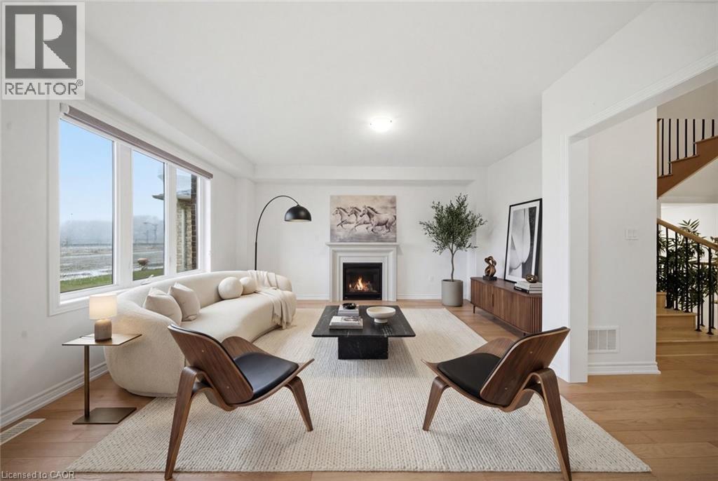 AMAZING LOCATION !!! Situated on a premium lot Welcome to this Beautiful Luxury Stone & brick Detached House with 4 Bedrooms, 4 bathroom with double car garage & basement with separate entrance ideal for growing families. The home features a bright and functional layout with large foyer with upgraded tiles and modern kitchen complete with quartz countertops, large island , stylish backsplash, ss appliances , 12x24 floor tiles, breakfast area access leading to the big backyard. Main floor you can find spacious living / family area with fireplace and huge window for natural light. 9 ft. smooth ceiling on main floor. Enjoy the convenience of main floor laundry and access to the garage, elegant finish throughout, including upgraded tiles and quartz counters in all bathrooms. Hardwood floor throughout the house on main second floor. Hardwood staircase with upgraded Metal black pickets for a contemporary looks. Second Floor Finish With Spacious Primary bedroom includes large walk in closet & a luxurious ensuite with double vanity, standing shower with glass door & chrome fixtures. 2 Additional large bedroom with common full bath. One large Bedroom with walk in closet & luxurious full bath. This property also offers unfinished basement with separate Entrance, cold cellar, 200 amp, rough in for a future bathroom providing excellent potential for future customization. Ideally located just step away from school and close to upcoming amenities including sport complex, plaza and park. Just step away from walking trails. This is a fantastic opportunity in a growing and family friendly community. Don't Miss out!! (id:64974)