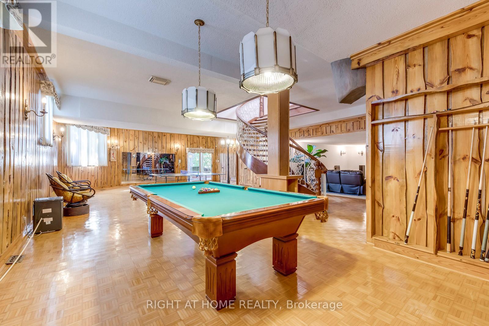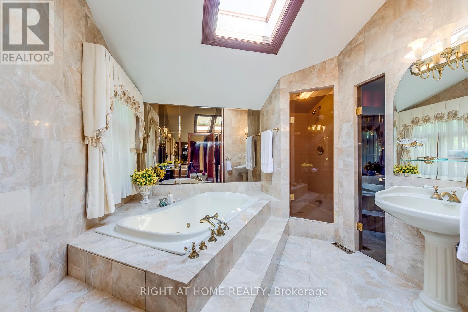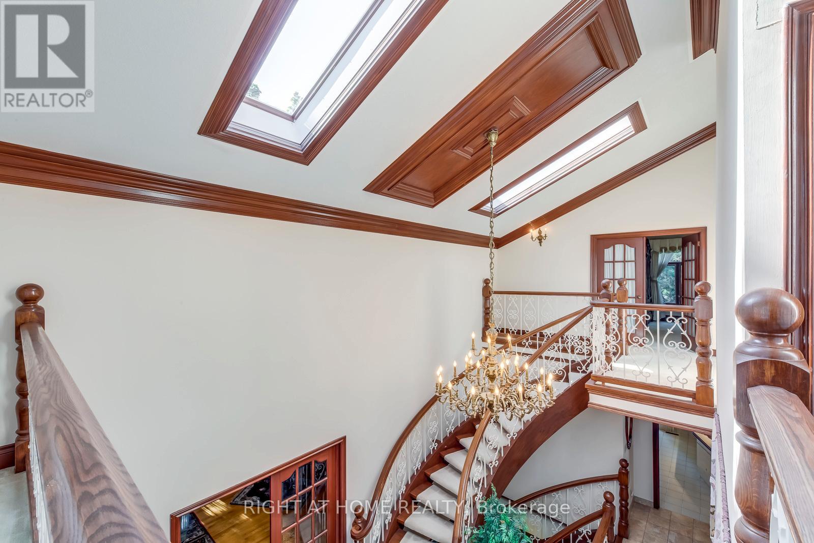 Experience refined living at its finest in this extraordinary custom-built estate, where timeless elegance meets superior craftsmanship. From the moment you step through the beautifully landscaped stone-walled courtyard and into the grand foyer, every detail speaks to exceptional quality and thoughtful design. Soaring cathedral ceilings with three skylights bathe the interior in natural light, while striking wrought iron and oak floating staircases add architectural drama and sophistication. This five-bedroom residence offers a seamless blend of luxury and comfort, featuring multiple stone and wood-burning fireplaces, rich crown moulding throughout, and spa-inspired marble bathrooms. The intelligently designed layout is both spacious and functional, ideal for everyday living and lavish entertaining. A rare 4-car garage, with total parking for up to 12 vehicles, provides ample space for guests and family alike. The fully finished lower walkout basement is a true retreat, complete with a private fitness studio, an elegant recreation lounge with custom made wet bar, a relaxing spa room, sauna, and a cozy fireplace, perfect for unwinding or hosting in style. A rare opportunity to own a home where elegance, warmth, and comfort come together in perfect harmony. (id:64974)