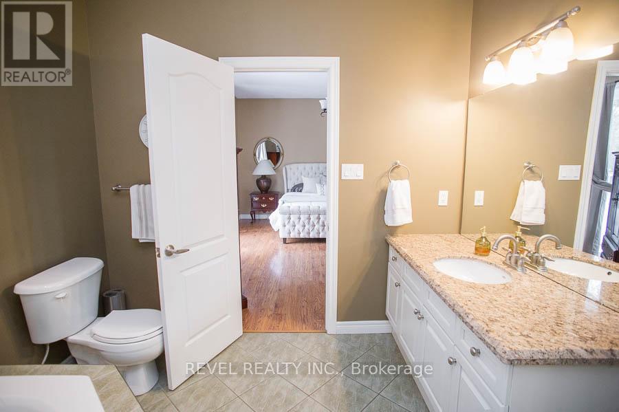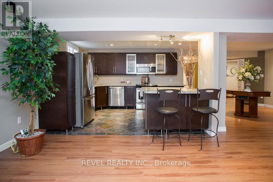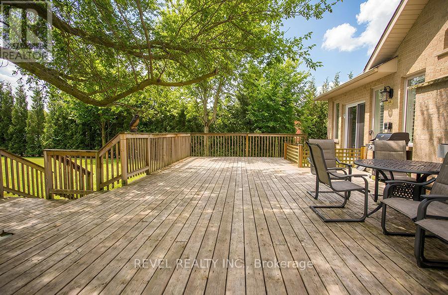 Welcome to the prestigious Foxhill Estates community, where executive living meets resort-style comfort. Situated on a beautifully landscaped 0.732-acre lot, this impressive raised bungalow offers 3+1 bedrooms, 3.5 bathrooms, & over 4,481 sq ft of finished living space. From the moment you arrive, the curb appeal stands out w mature trees, cedar hedges, concrete walkways, & a triple-car garage w epoxy flooring & driveway parking for 8-10 vehicles. The backyard is truly a private oasis, featuring a heated saltwater in-ground pool, an expansive concrete pool deck, a wooden deck off both the kitchen & primary bedroom, an irrigation system, & two custom-built sheds. Inside, the main level showcases vaulted ceilings, maple hardwood flooring, LED pot lights, and a gas fireplace in the great room. The dining room features a large bay window w California shutters and comfortably seats 10. The professionally refinished maple kitchen offers granite countertops, stone backsplash, under-cabinet lighting, stainless steel appliances, a double-door pantry, and oversized patio doors leading to the deck - perfect for entertaining. The primary suite includes sliding patio doors to the deck, a walk-in closet, and a private ensuite w a soaker tub, standalone shower, and granite vanity. Two additional main floor bedrooms and a dedicated office over the garage w a skylight provide excellent flexibility for families or those working from home. The fully finished lower level offers exceptional in-law suite capabilities w a separate entrance, full kitchen w granite counters and stainless steel appliances, living area, bedroom, and full bathroom. Heated floors in the basement and garage add year-round comfort. A renovated recreation room w large windows and pot lights creates additional living and entertaining space. This exceptional Foxhill Estates property offers space, privacy, and versatility - ideal for multigenerational living, entertaining, and everyday executive comfort. (id:64974)