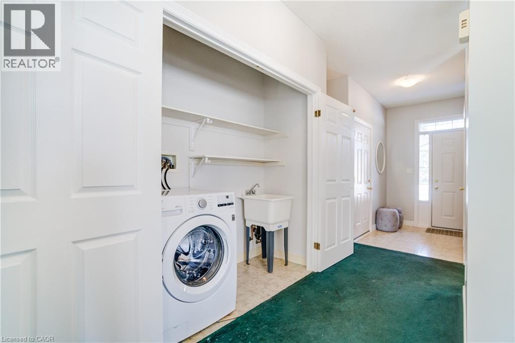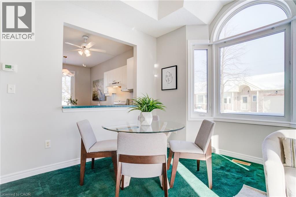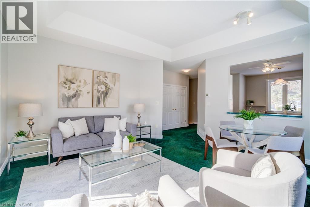Welcome home to 1 Greentrail Drive in the highly sought-after adult lifestyle community of Twenty Place. This clean, move-in ready end-unit bungalow has been lovingly maintained by its original owner for over 25 years, reflecting true pride of ownership. Offering one bedroom and one full bathroom, the home features a bright white eat-in kitchen with ample cabinetry, included appliances, and a welcoming layout ideal for easy main-floor living. The spacious living and dining area provides a comfortable place to relax or entertain, while main-floor laundry and inside access from the garage add everyday convenience.The unfinished basement offers excellent storage space or the opportunity to finish and customize to your needs. With a practical floor plan and well-cared-for condition throughout, this home is perfect for those seeking low-maintenance living in a friendly, established community. Residents of Twenty Place enjoy access to an outstanding clubhouse with an indoor pool, sauna, whirlpool, fitness centre, party room, library, games and craft rooms, tennis/pickleball courts, putting green, shuffleboard, and more. Book your showing today! (id:64974)