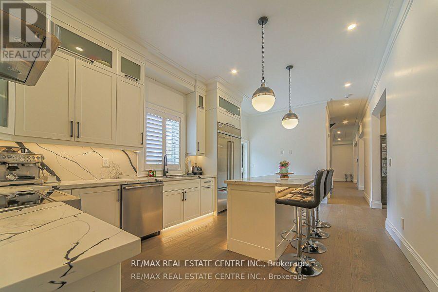 Situated on a wide premium lot, this impressive open-concept custom-built home located in the desirable Westgate neighborhood of Brampton, offers the perfect blend of space, style, and functionality. From the moment you walk in, the bright and spacious layout welcomes you, with thoughtfully designed living areas including a spacious family room, elegant dining area, and a cozy living room ideal for both entertaining and everyday living. Home features 10 ft ceilings on both the main and second floor and not one, but two full sized kitchens, making it perfect for large families, multi-generational living or additional income potential. Main floor kitchen boasts top-of-the-line appliances and a custom backsplash and countertops with kick plate lighting, offering an elegant setting for both sophisticated entertaining and effortless everyday living. The breakfast area is sun-filled and inviting, a great spot to start your day. The convenient mudroom helps keep the home tidy and organized. Designed with modern efficiency in mind, the home is equipped with three separate electrical panels, providing enhanced power distribution. The master bedroom is a true retreat, complete with his and her walk-in closets and a luxurious 5-piece ensuite. The additional bedrooms are generously sized, with the 2nd and 3rd bedrooms sharing a well-appointed 5-piece bathroom, while the 4th bedroom boasts its own ensuite, providing comfort and privacy. Laundry is conveniently located on the upper floor for added ease. The fully finished basement adds exceptional value, featuring a separate side entrance, a beautiful kitchen, a rough in for washer/dryer, two spacious bedrooms with closets, a modern 3-piece washroom, a large recreation area, dedicated storage room, and clever under-stair storage. Bright, spacious, and meticulously designed, this home offers exceptional comfort and versatility for modern living. A must-see property that truly has it all! (id:64974)