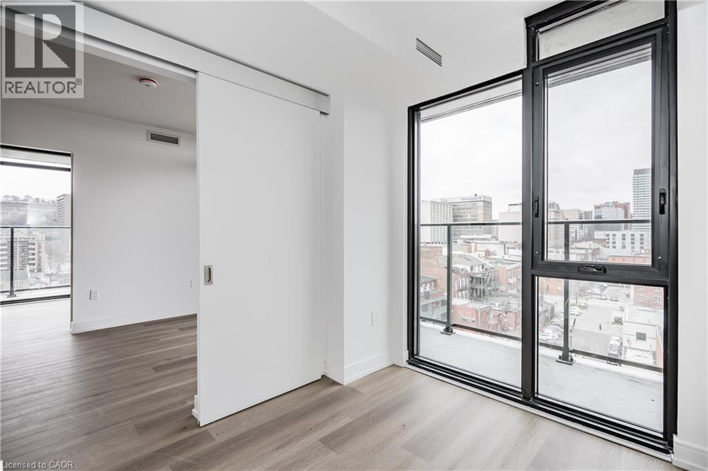 Presenting Unit 911–1 Jarvis Street, a newly built condo featuring 2 bedrooms, 2 full bathrooms, and a wraparound balcony, located in central Hamilton. This beautiful, modern corner unit features a bright, open layout with a stylish kitchen, a living room with a balcony walk-out, a primary bedroom with floor-to-ceiling windows spanning the entire length of one wall and a 3-piece ensuite, a good-sized second bedroom, and a 4-piece bathroom near the foyer. Enjoy panoramic views from your personal wraparound balcony, providing an extra 209 sq ft of living space for a total of 864 sq ft. Within walking distance of the great restaurants and shops that King William Street and James Street North have to offer, this trendy, upscale condominium offers a fitness centre, a common office area, and concierge service. Equipped with in-suite laundry, 1 underground parking spot, and 1 locker, this unit is perfect for professionals or a couple looking for clean, modern, convenient living! Available as of May 1st, 2026. (id:64974)