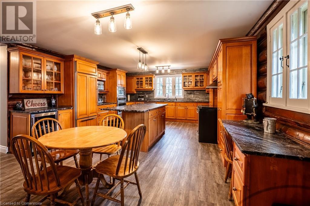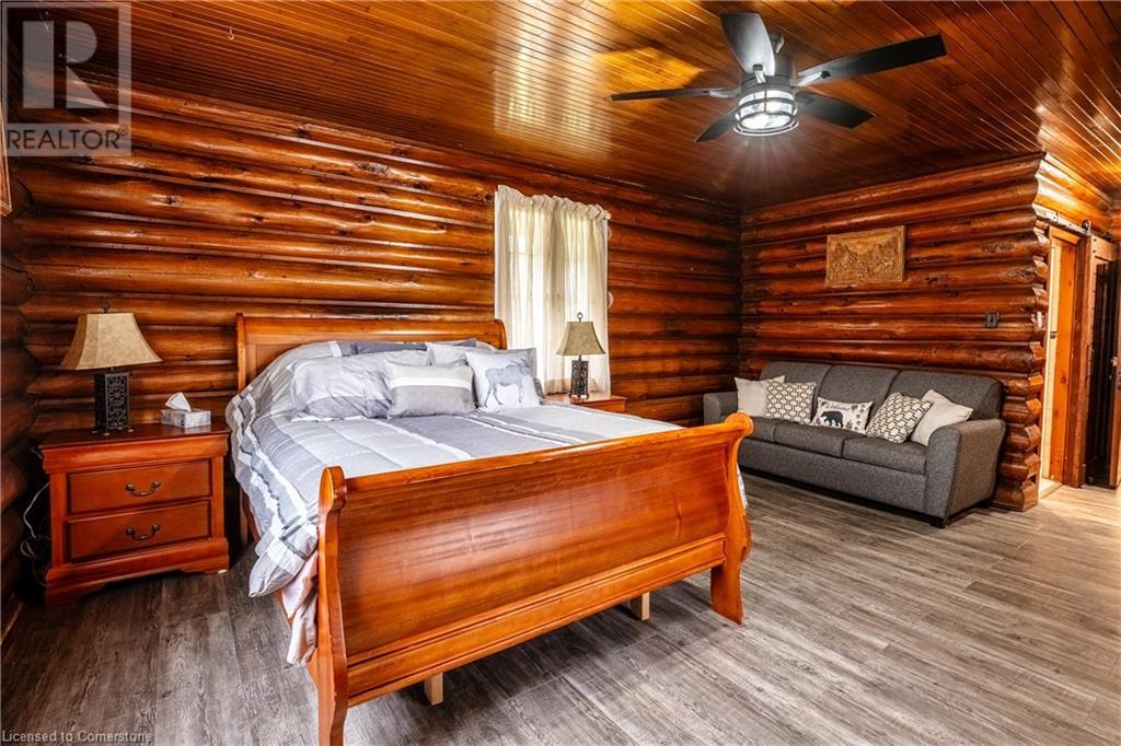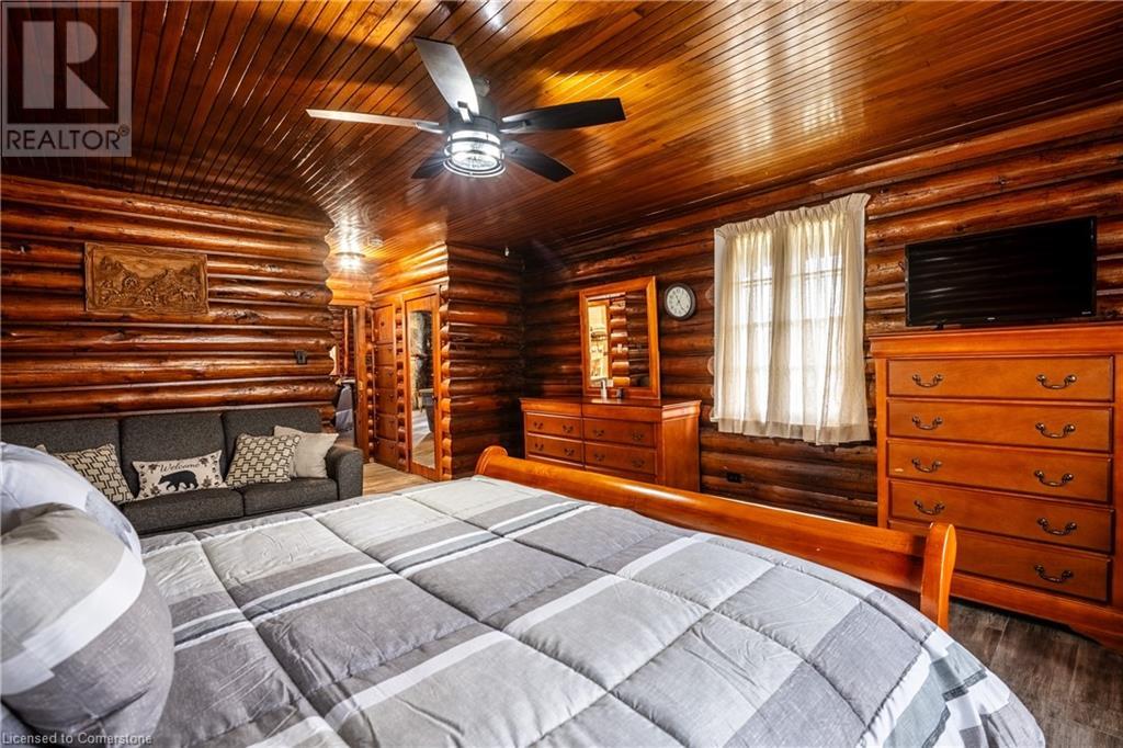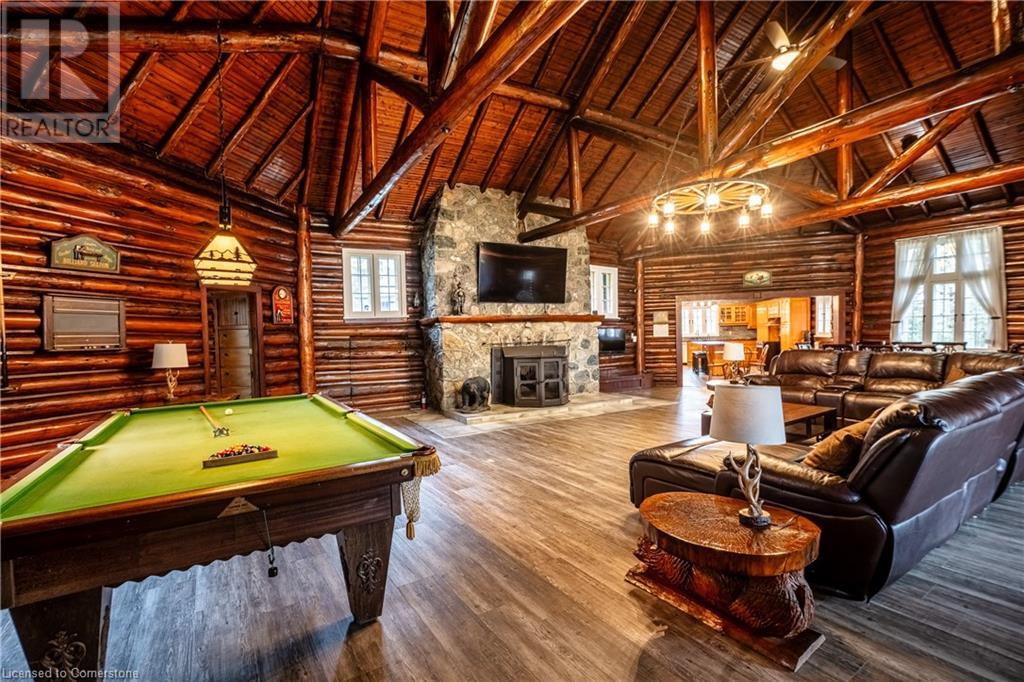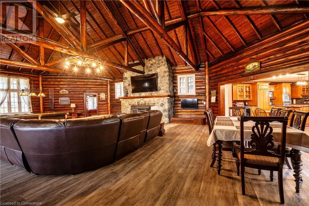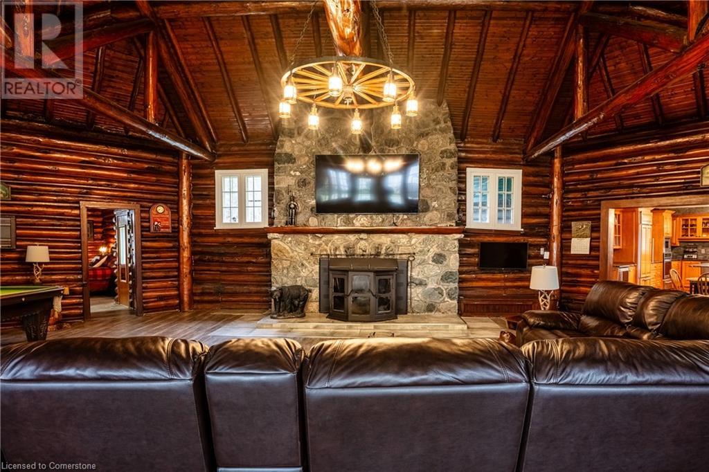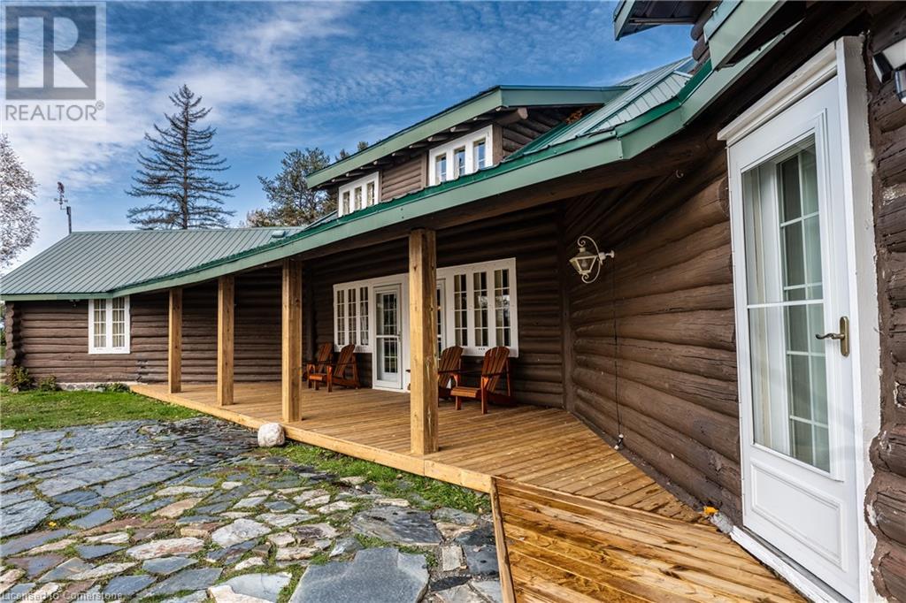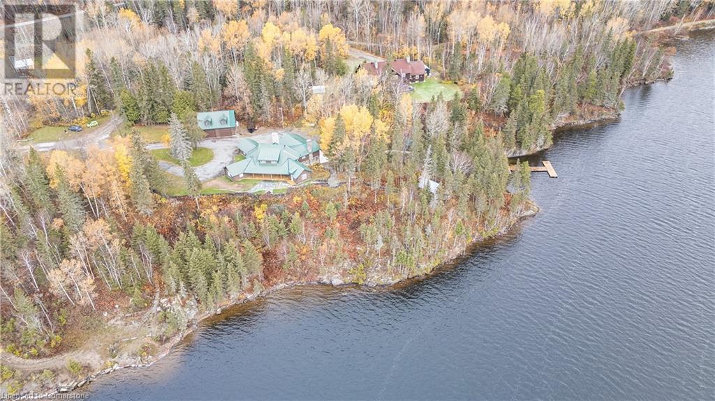 Wanting to escape the pressures of southern Ontario living - yearning for peace & tranquility in your life - than welcome to 1 Kerr Crescent - close proximity to Virginiatown’s shops & eateries - located in McGarry Township - 30 minute commute to Kirkland Lake’s amenities & General Hospital. Boasts vintage 1937 built lodge-style log cabin, ftrs unique multiple wing design, positioned majestically on gorgeous 1.5 ac lot surrounded by pure undisturbed wilderness enjoying magnificent views of beautiful Larder Lake bordering 357ft of pristine waterfront shoreline. Extensively renovated in the past 3 years, this enchanting home offers 3481sf of inviting interior ftrs newly installed heated luxury vinyl flooring thru-out main level-2021 - yet careful to maintain yesteryear’s charm. Spectacular 12ft wide & 24ft high floor to ceiling WETT certified stone fireplace showcases this impressive Estate’s great room providing the perfect gathering venue for family or friends while enjoying breathtaking forest & water views. Ftrs sparkling new kitchen-2021 sporting new stainless built-in appliances, 6 ultra spacious bedrooms & 4 completely renovated bathrooms-2023. Unblemished 1,030sf basement level incs walk-out to groomed trail leading to newly constructed T-shaped floating dock system-2024 equipped to handle multiple boats or a float plane. A 30’x40’ insulated/heated detached shop incs 2-10’x12’ insulated roll-up doors, concrete floor, p/g overhead heater & matching faux log cabin exterior - the ultimate “Toy Shop” with “Party Place” twist. 2 convenient 10’x10’ Bunkies can accommodate extra guests. Extras - municipal water/sewers, metal roof-2012, majority of furnishings, original pool table, spray foam basement walls, updated 200 amp/wiring/plumbing-2022, paved driveway & much more! Experience excellent fishing, boating (Marina/boat launch 5 mins away), hunting, sledding, skiing (2 hills 10 mins away) or relax & sun tan on 11’x45’ lake front deck. It Can't Get Better Than This! (id:64974)