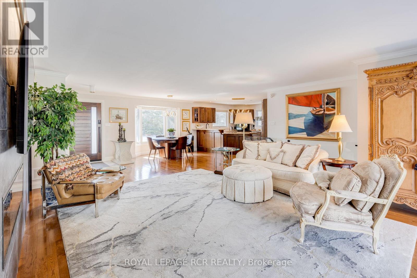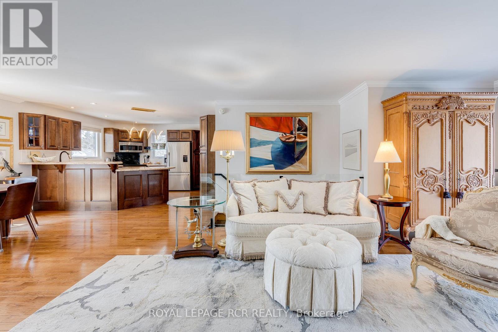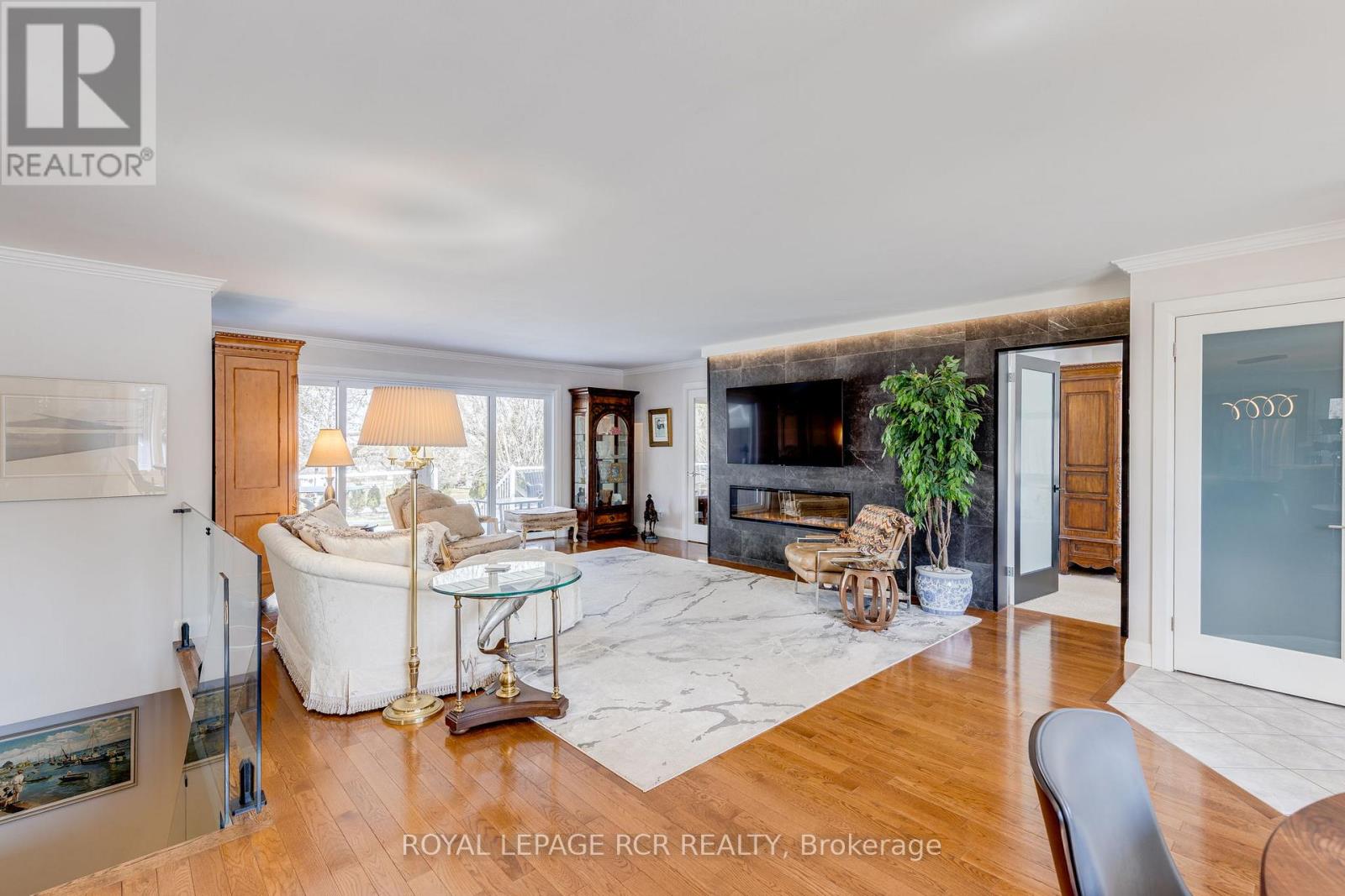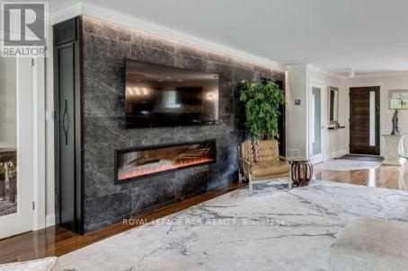 Meticulously Renovated BUNGALOW in One of Uxbridge's Most Sought-After Cul-De-Sacs | Nestled high on a quiet street with striking curb appeal, this CUSTOM BUILT 1,591 sq. ft bungalow (plus 1,582 sq. ft finished walk-out lower level) combines modern upgrades, thoughtful design, and a uniquely private setting. Perfect for retirees or professional couples-with space for teens, in-laws, or guests - this home balances style, comfort, and versatility | At the heart of the main floor, a bold black feature wall with 60" electric fireplace creates a dramatic yet cozy focal point. The open-concept kitchen showcases chef-inspired stainless steel appliances (2021), sleek lighting, and a seamless flow to the living and dining areas. A SPLIT-BEDROOM layout ensures privacy: the serene primary suite features a custom 3-piece ensuite, while two secondary bedrooms (currently a home office) share a stylish Jack & Jill bath ('25) | OUTDOORS, a full-length deck overlooks the backyard, complete with a covered lounge featuring a ceiling fan and outdoor TV - an entertainer's dream. Additional updates include hardwood floors, smooth ceilings on main (most rooms), freshly painted walls, new trim, upgraded lighting/switches, a NEW staircase with custom glass railing (2025) | GARAGES 3+2: for the hobbyist or car enthusiast-an attached OVERSIZED 3-car space - 23 ft x 39 ft with epoxy floors, gas heater, upgraded electrical, and a 13-foot ceiling (car lift potential!) and a 22 x 6ft loft storage area. The 3rd BAY currently doubles as a WORKSHOP complete with 12 foot garage door. Need more space? A separate detached 2-car TANDEM style garage provides extra storage for your hobbies/weekend toys. The walk-out LOWER LEVEL, with private patio and separate garage entrance, features a second kitchen + 3-piece bath - ideal for extended family/guest/teen suite. WALK to trails, pickleball + tennis courts, skate park, & downtown, this home blends nature, comfort, and convenience in one exceptional package (id:64974)