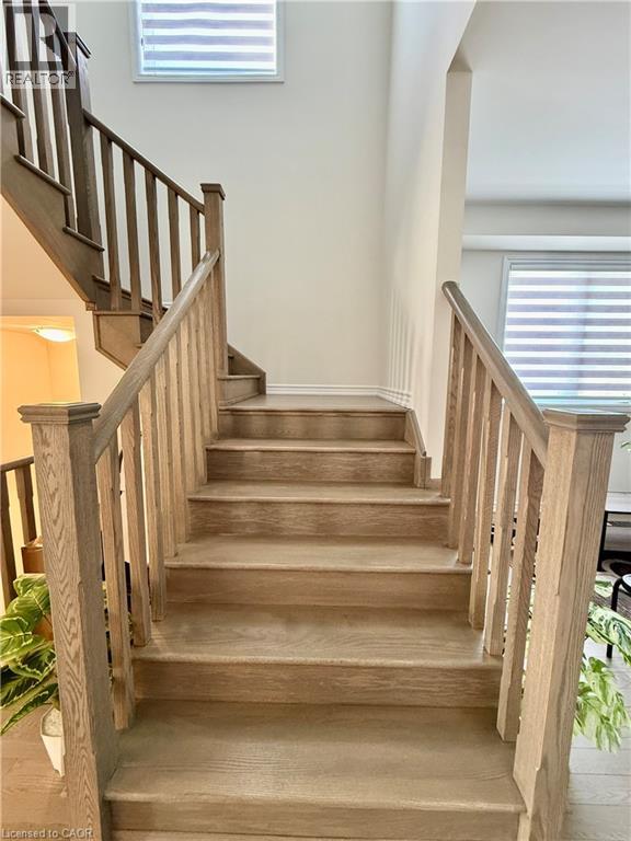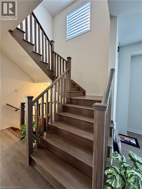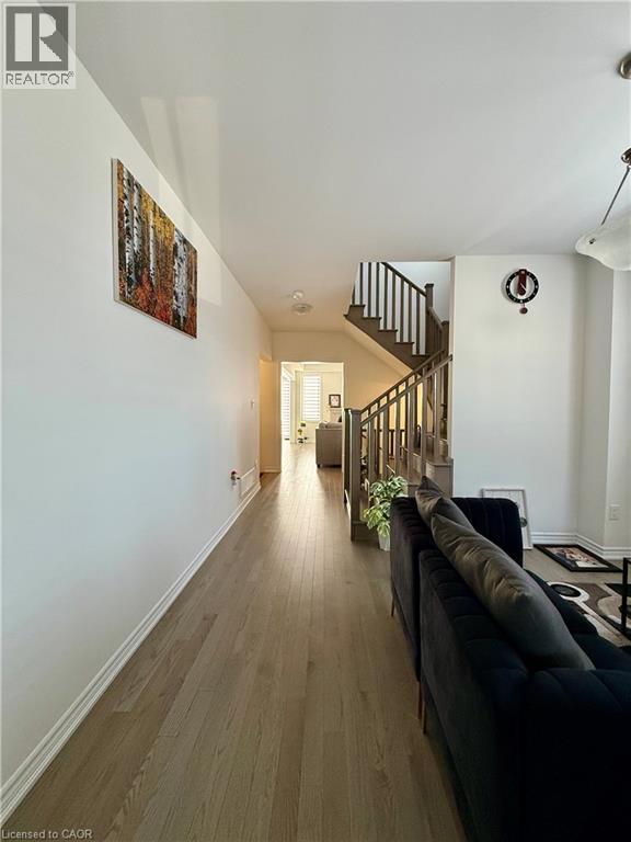 AVAILABLE 1st APRIL - Discover modern comfort in the sought-after Lindvest community of West Brant, Brantford! This stunning end-unit townhome offers 2,105 sq ft of bright, thoughtfully upgraded living space—perfect for families or professionals seeking style and convenience. Step inside to freshly painted walls throughout, gleaming main-floor hardwood flooring, and elegant oak wood stairs that lead you up to the second level. The spacious main floor boasts 9 ft ceilings, an abundance of large windows flooding the home with natural light, a generous living/dining area, and a cozy family room featuring a fireplace—ideal for relaxing evenings. The heart of the home is the upgraded kitchen, complete with sleek granite countertops, stylish backsplash, a large island, breakfast area, and brand-new stainless steel appliances (full 5-piece set). It opens seamlessly to a big backyard, perfect for summer gatherings. Upstairs, you’ll find four generously sized bedrooms, including a spacious primary retreat with a large walk-in closet and a luxurious 4-piece ensuite. The other three bedrooms share a convenient 3-piece bath, while upstairs laundry adds everyday ease. Enjoy zebra blinds for privacy and light control, plus central air conditioning for year-round comfort. The unfinished basement provides ample storage and future potential, including a cold cellar. This move-in-ready gem is just steps from top-rated schools, shopping, restaurants, sports complexes, and scenic walking trails—everything you need is right nearby. Don’t miss this beautifully maintained, upgraded townhome—ready for you to move in and make it yours today! (id:64974)