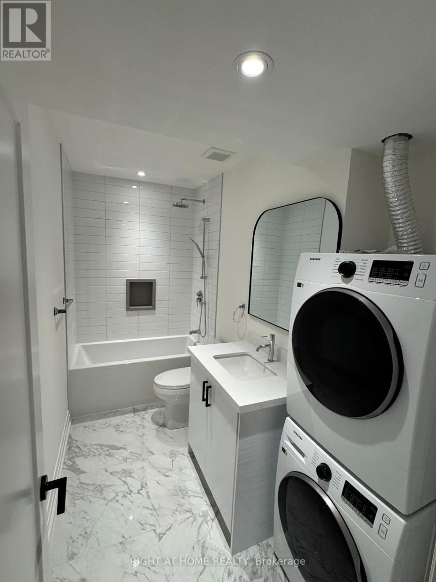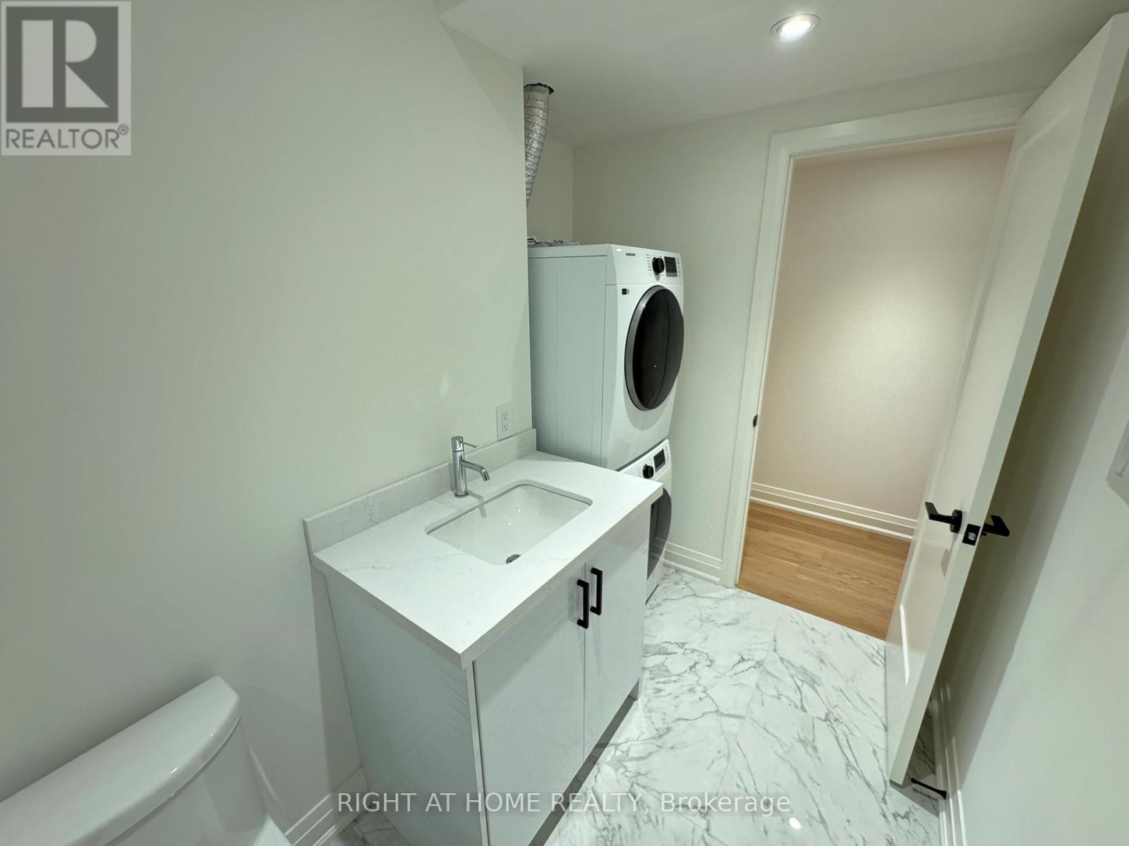 Brand New 2-Bedroom Basement Apartment in Prime Etobicoke Location - Modern Finishes & Private EntranceProfessionally renovated, brand-new 2-bedroom basement apartment in the desirable Rathburn & Kipling area of Etobicoke. This spacious unit features 8-ft ceilings, elegant porcelain flooring, pot lights throughout. An elegant, bright kitchen with granite countertop, large sink, tiled backsplash and brand new stainless steel appliances (fridge, stove, dishwasher, microwave). The primary bedroom includes a luxurious 4-piece ensuite with glass shower and double sink, while the main bathroom offers a stackable washer and dryer for convenience.Enjoy a private entrance with large mudroom landing, separate heating and air conditioning, and one parking spot. Snow removal and lawn care included. Steps to TTC bus stop at Kipling, close to subway, top-rated schools, and Thorncrest Village Shopping Mall. Close to Centennial Park, West Dean Park and numerous trails. Located in a quiet, family-friendly neighborhood. Tenant pays 33% of all utilities. Ideal for professional tenants seeking a modern, comfortable home in a prime location. (id:64974)