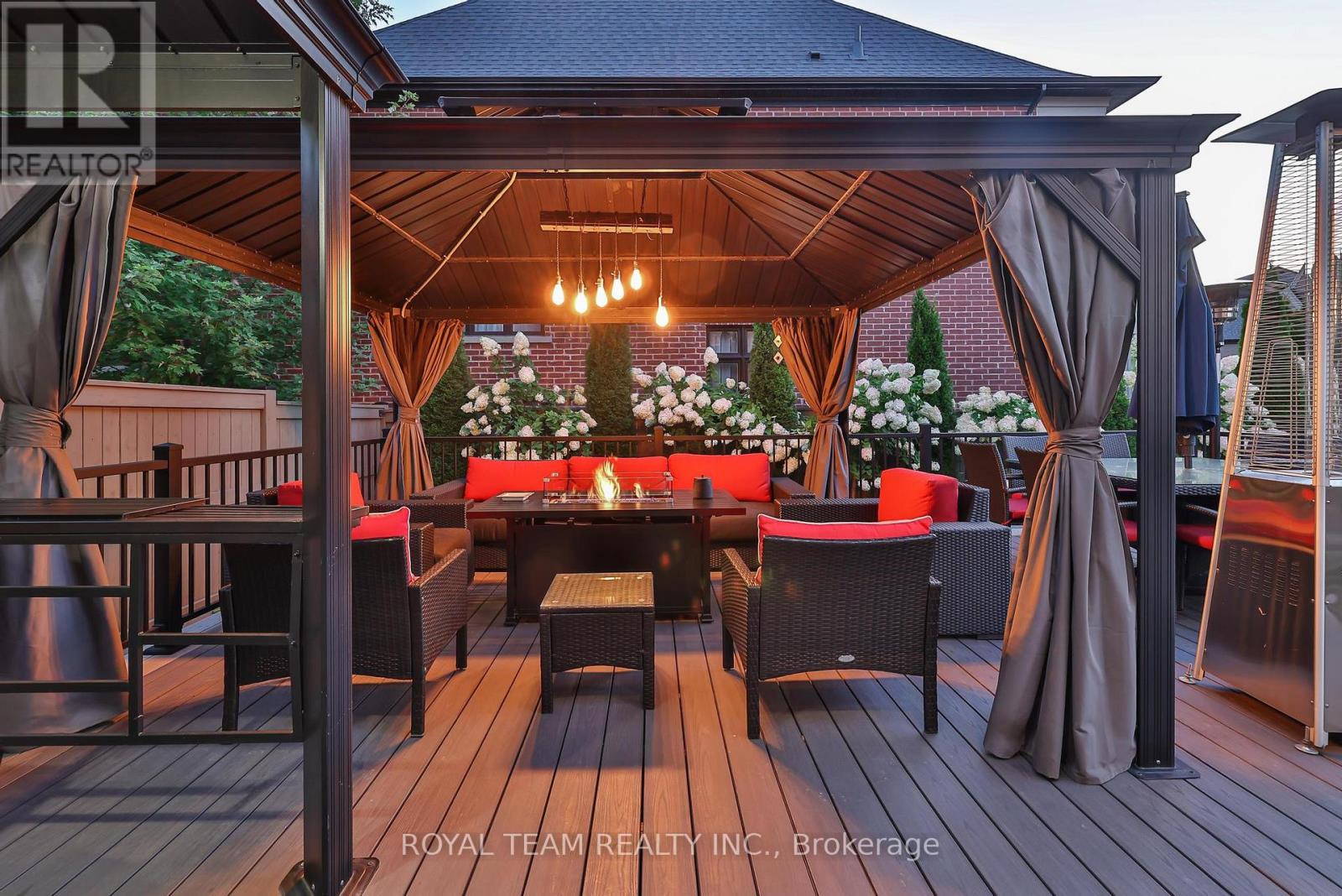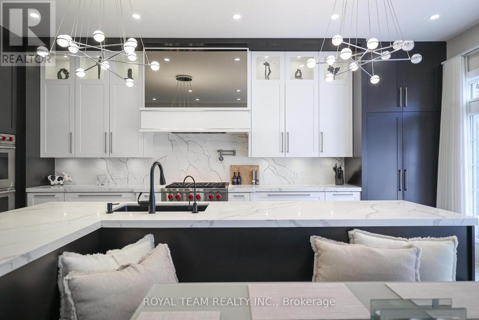 Luxurious Custom Residence in the Prestigious Castles of King! This elegant showpiece was inspired by the Model Home and upgraded with all the bells and whistles, offering approx 5,000sq/ft of exquisite living space with 5 bedrooms, 6 bathrooms, and refined finishes throughout. Designed for todays lifestyle, the home features soaring 10 ft ceilings on the main, 9 ft ceilings on the second and basement levels, and a dramatic cathedral living room that creates a sense of grandeur.The thoughtfully planned layout includes two main-floor offices, ideal for working from home, and four spacious bedrooms upstairs, each with its own ensuite for ultimate comfort and privacy. Retreat to the spa-inspired primary ensuite with Calacatta porcelain finishes, frameless glass shower, freestanding soaker tub, and marble counters. The chefs kitchen is a true masterpiece, boasting Wolf and Frigidaire appliances, a Marvel beverage centre, Bosch dishwasher, Sharp microwave drawer, Blanco Silgranit sink, and Calacatta quartz counters. The kitchen also features a large built-in breakfast table! Elegant 5 hand-scraped hardwood, crown moulding, custom millwork, and smart-home upgrades elevate every space. Outdoors, over $150,000 was invested in professional landscaping including stone walkways, a composite deck, two gazebos, outdoor fireplace table, sprinkler system, and gas lines for both BBQ and fireplace. A stone and brick elevation, 2-car garage plus 5-car driveway, and security cameras complete this remarkable property! See the feature sheet attached for a full list of everything this exquisite home has to offer!A true masterpiece of luxury and sophistication, this exceptional home offers unparalleled comfort in one of the most sought-after neighborhoods in prime King city location! (id:64974)