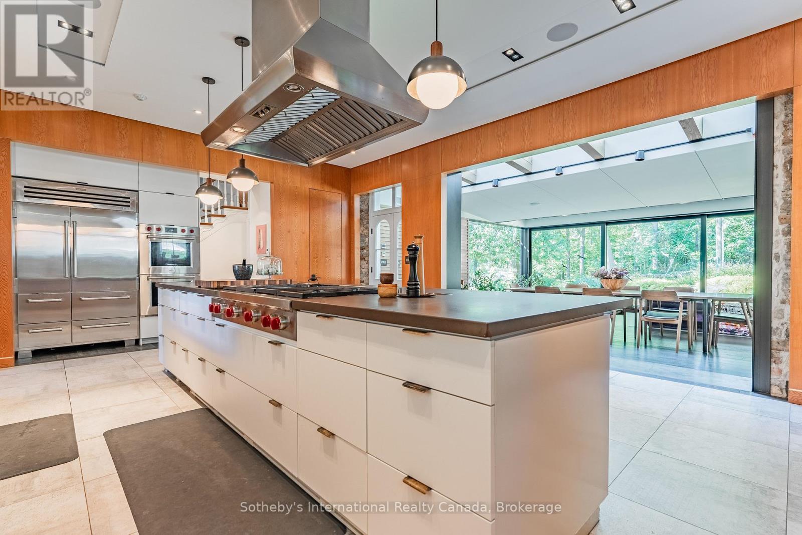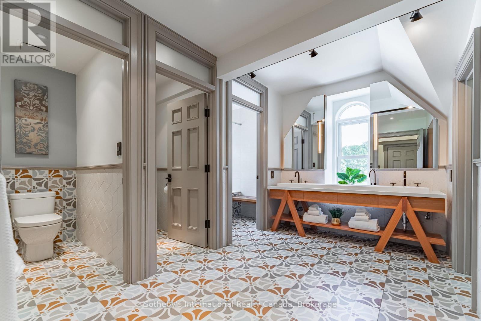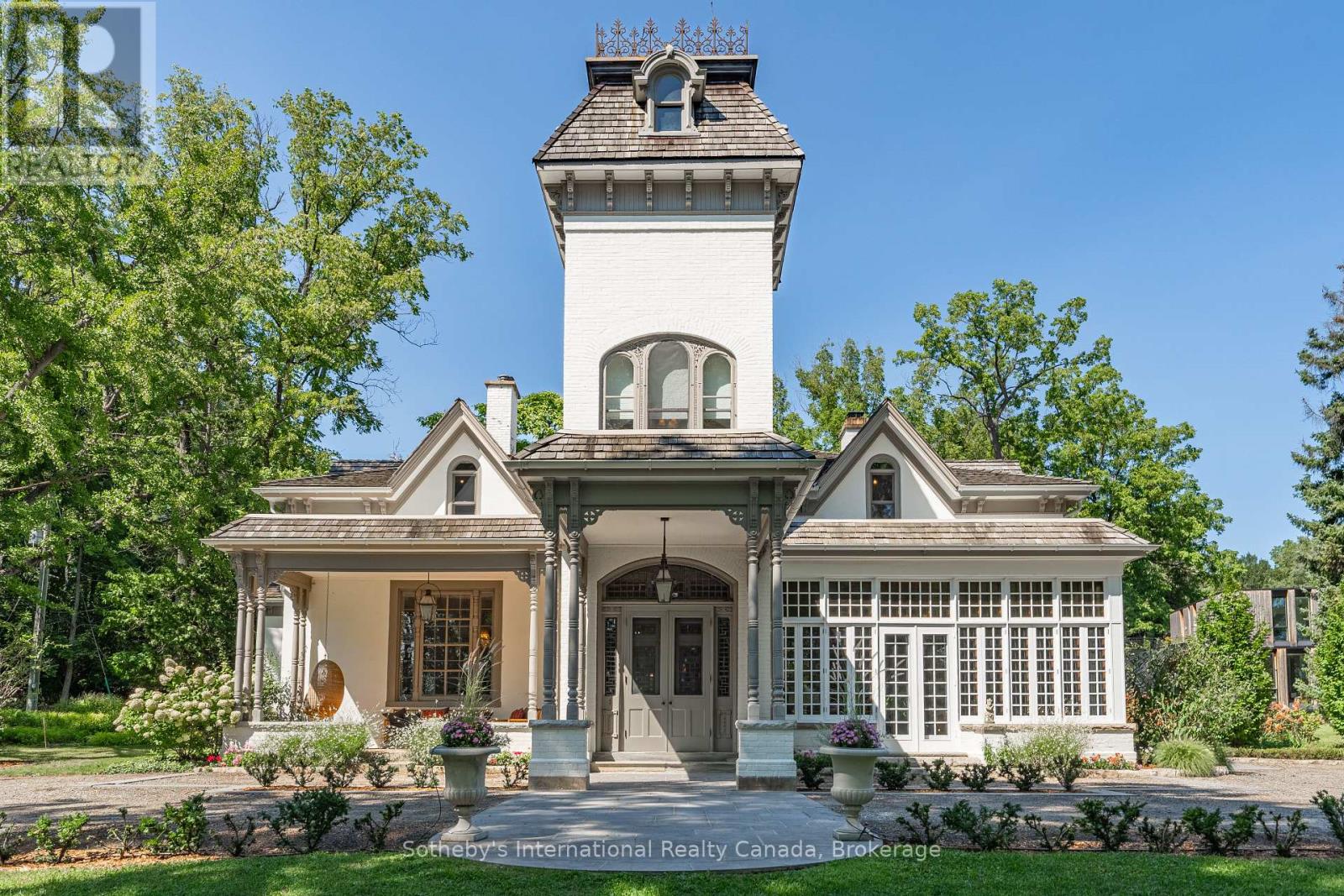 Nestled where history gracefully intertwines with modern elegance, this exceptional estate invites you to experience unparalleled luxury. Set against ancient trees & expansive views at nearly 3,000 feet on the escarpment, this property transcends mere residence- it is a sanctuary. Spanning three separately deeded parcels, the estate features four exquisite detached residences, a state-of-the-art spa & pool house by Partisans, a historic barn, a four-car coach house with a charming residence above. This compound of five dwellings offers incredible opportunities for a family retreat, rental investment, or filming income, as it is renowned in the film industry for its stunning backdrops. This property gives spa, wellness retreat vibes all day long. The main house, originally constructed C1830, boasts over 8,000 square feet of refined living space. A harmonious blend of history & contemporary design, it features a luxurious kitchen crafted by John Tong & a glass extension overlooking serene Zen gardens. Each grand principal room is bathed in natural light, offering breathtaking vistas, including a main floor bdrm. Ascend to the second floor, where five elegantly appointed bedrooms & three exquisite baths await, along with views from the iconic tower. The primary suite occupies its own wing, complete with a private sitting room, generous walk-in closet & lavish five-piece ensuite, all separated by custom solid wood sliding doors for ultimate privacy. The tower's third floor culminates in an unparalleled observation point with extraordinary views. Immerse yourself in the tranquility of the Zen garden, the restorative beauty of the escarpment & the calming presence of the spa & pool house. This estate is not just a home; it is an invitation to disconnect, reflect & rejuvenate in an exquisite setting where luxury & history converge. With five residences, combined there are 17 bedrooms, 12 full baths, 5 half baths & 5 kitchens. (id:64974)