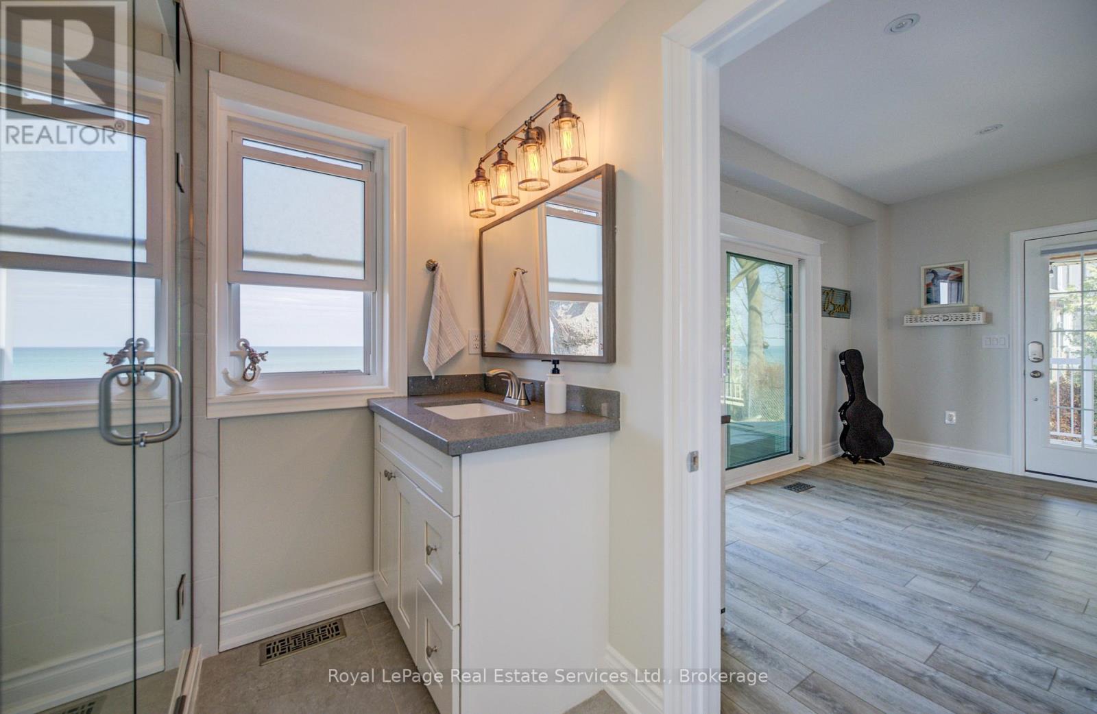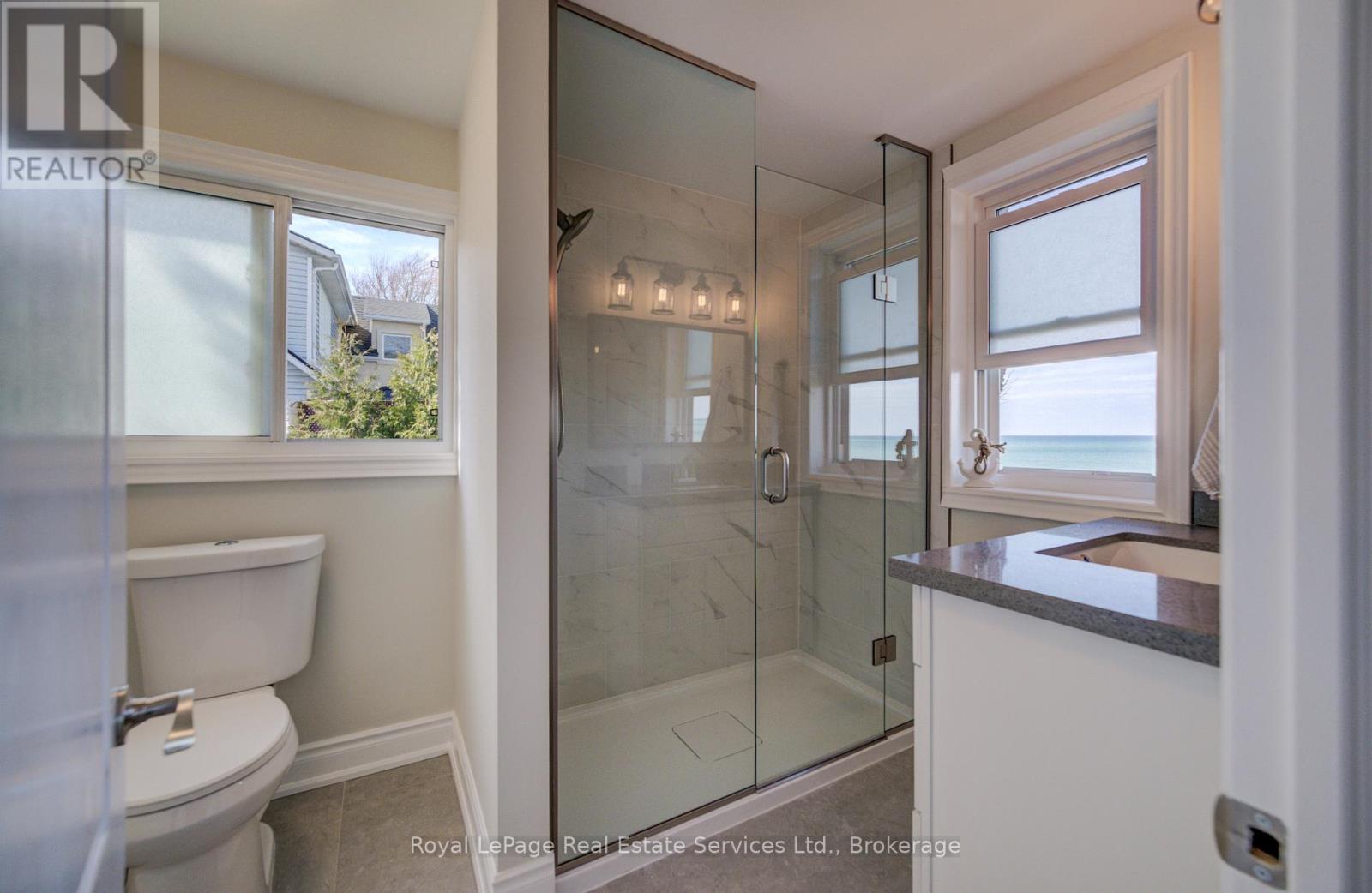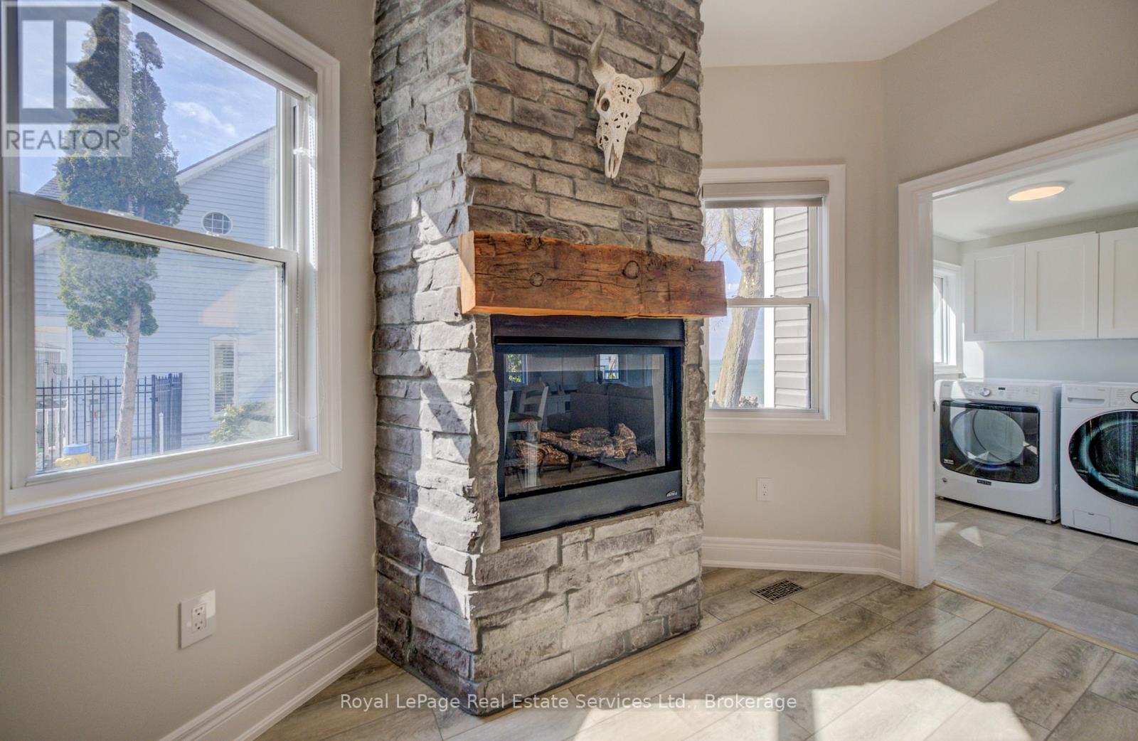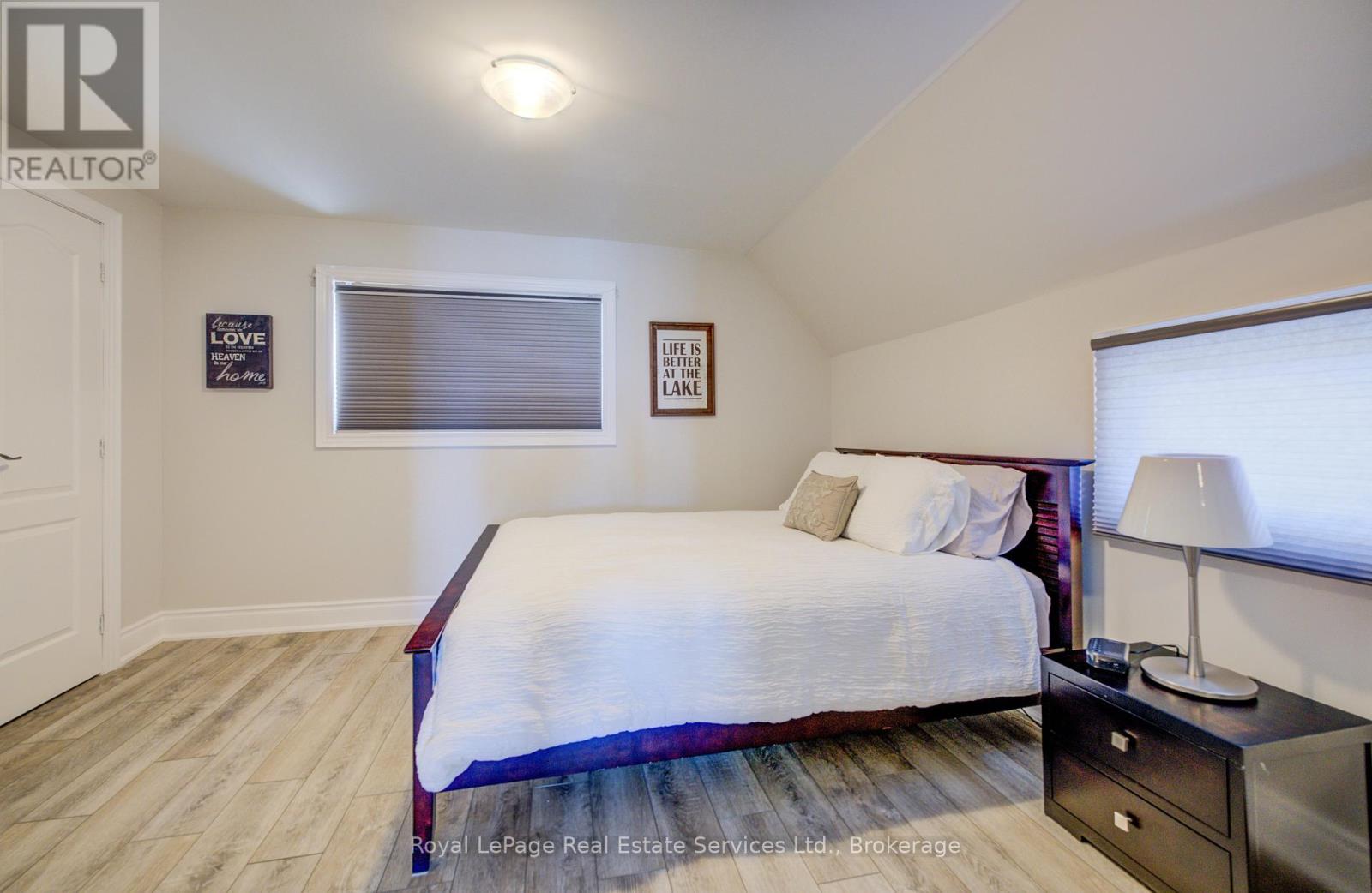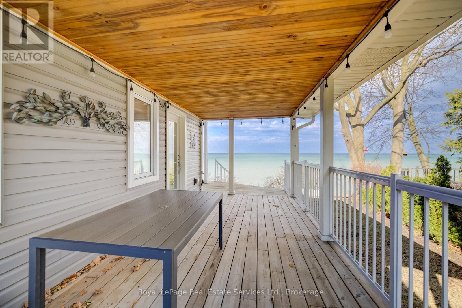 Exquisite Grimsby Sundrenched Lakefront Retreat: Where Luxury Meets the Water's Edge. Welcome to a truly rare offering on the shores of Lake Ontario. This magnificent refreshed, updated three-bedroom lakefront home in the heart of Grimsby is a masterclass in coastal-inspired luxury...meticulously designed to offer panoramic water views from nearly every vantage point. A serene sanctuary/entertainer's paradise provides unmatched tranquility and sophistication. MAIN LEVEL is Bright, airy, open-concept w gourmet chef's kitchen featuring high-end SS appliances, electric blinds, tall pantry, a professional-grade gas stove, granite tops T/O, island w storage and peninsula eating area and window. The adjacent dining room featuring a majestic gas stone fireplace and flows effortlessly into the living area w BONUS large understairs storage room. Main floor also offers new flooring throughout, blinds, new oak stairs, an updated full three-piece bathroom, and a spacious laundry room plus XL patio doors to rear lounge and side door to BBQ/eating area. UPPER LEVEL features 3 good sized bedrooms. Primary retreat serves as a true escape, complete with direct access to a private upper deck with new 'tilt and open' patio doors w retractable screen. Two additional bedrooms provide ample space for guests or a home office. Full four-piece bathroom completes. The exterior is defined by its signature wraparound porch and deck, offering multiple zones for alfresco dining or simply soaking in the unobstructed views of CN Tower on a clear day.Rear yard w steps down to your private beach. Oversized 2 car garage w side door entry and industrial shelving/open rafters for storage. 3 car cement drive plus street parking. Instant hot water, exterior outlets and gas line and cute garden shed. Located just minutes from the QEW, vibrant shops and dining. Grimsby-on-the-Lake is the gateway to Niagara's wine country.Easy commute to Hamilton and the GTA. Great Neighbors/community! Long close available. (id:64974)