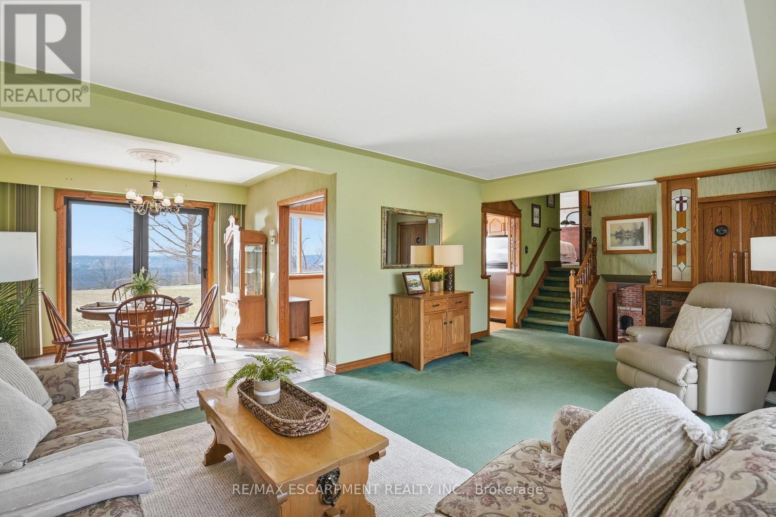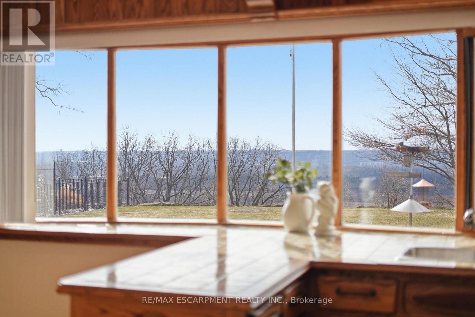 Rare opportunity to own a property with one of the most breathtaking views in Flamborough! Perched along the edge of the escarpment and tucked away at the end of a quiet dead-end road, this impeccably maintained side-split offers a level of privacy and natural beauty that is hard to find. The true showstopper is the panoramic escarpment view overlooking the Royal Botanical Gardens and York Road Conservation Area, with sightlines stretching all the way to Hamilton Harbour and McMaster University - a view that changes beautifully with every season. Inside, the home has been lovingly cared for and features unique custom woodwork and stained-glass accents that add warmth and character throughout. With the views continuing from every room, this space presents an incredible opportunity to update and create your dream home in an unbeatable setting. Enjoy the peaceful rural feel while still being just minutes from all the amenities of Waterdown, Dundas, and Burlington. A truly special property with views that are simply unmatched. RSA. (id:64974)
