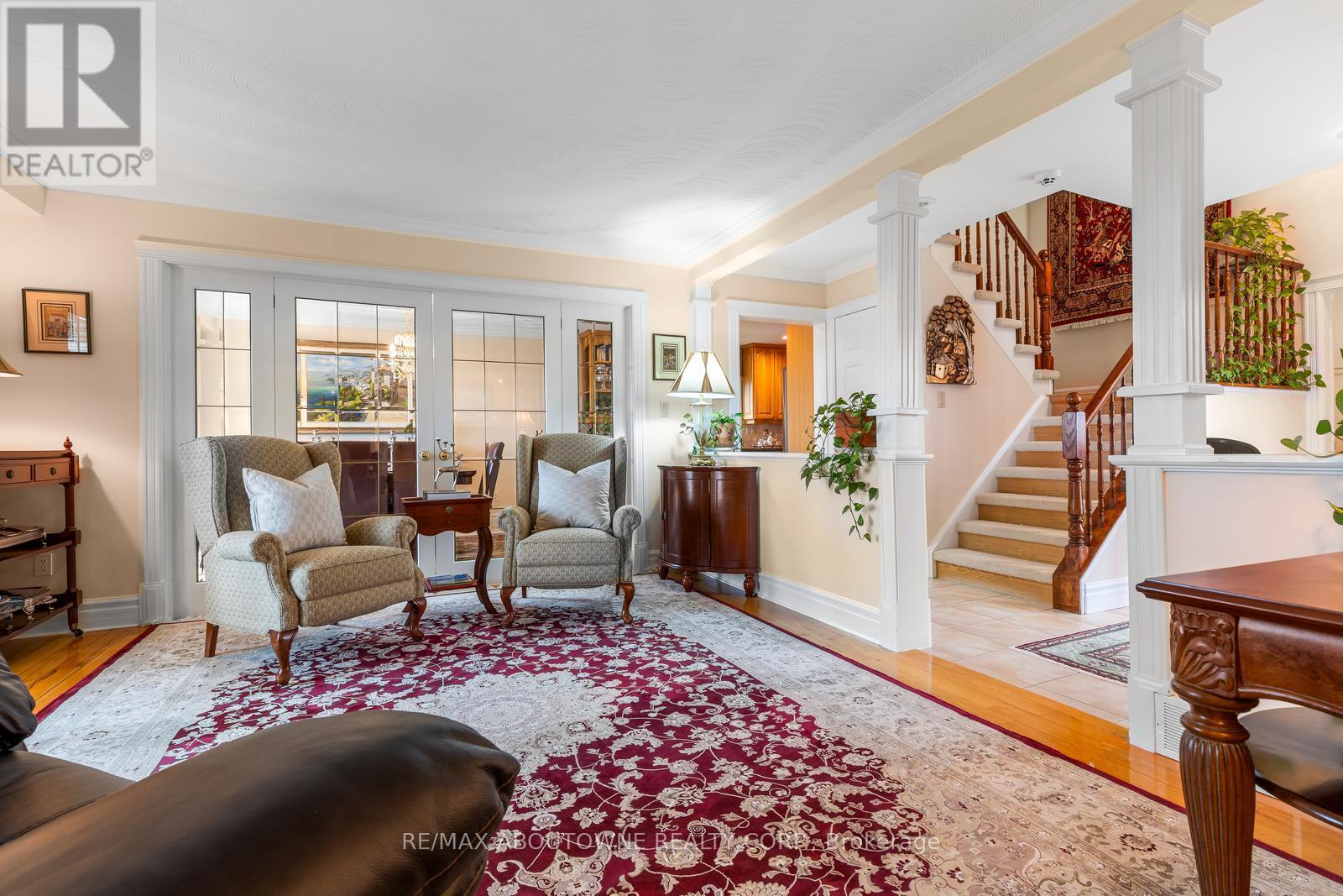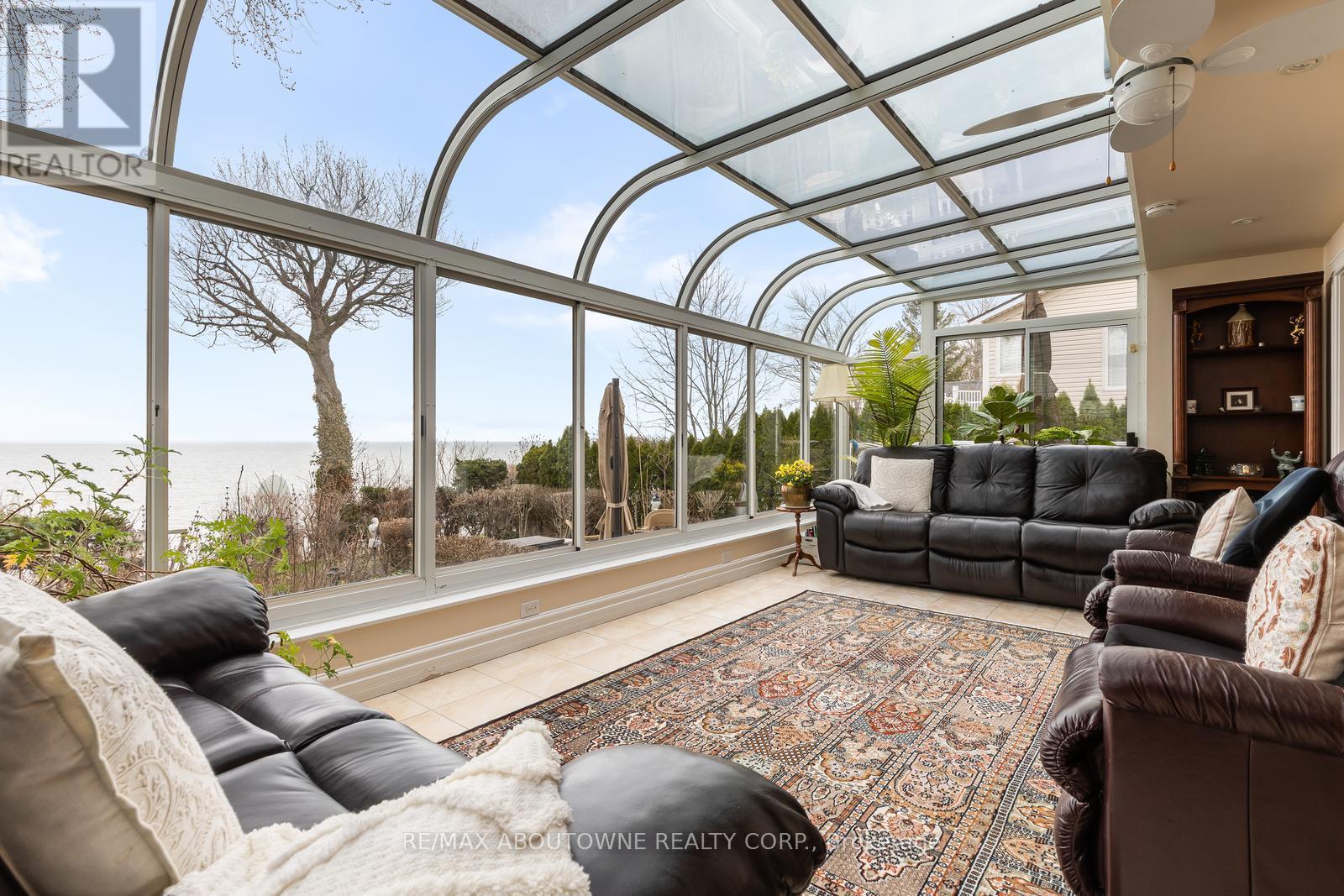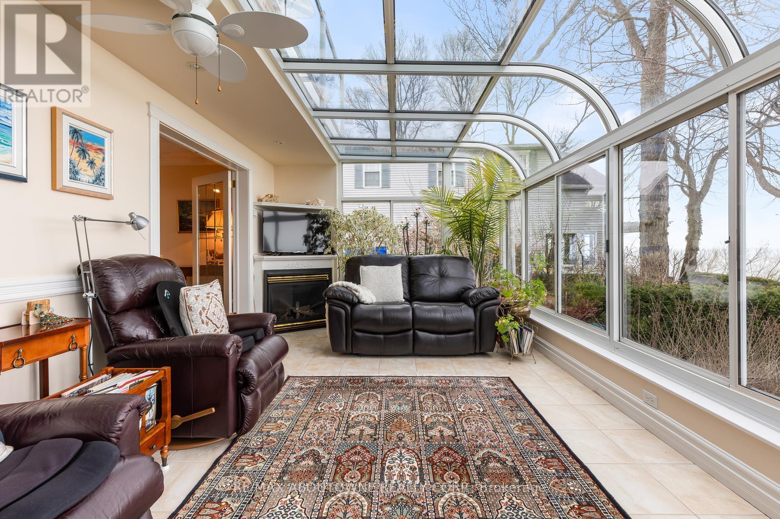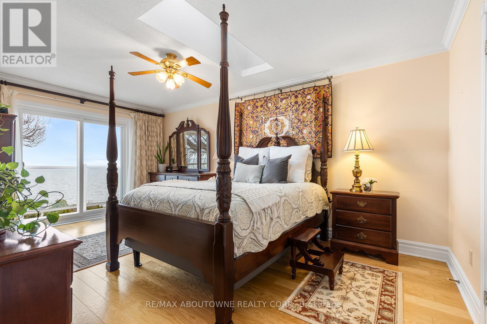 Exceptional waterfront 3 +1 bedroom and 3.5 bathrooms detached home in Grimsby, offering a grand double door entry and an impressive foyer with soaring high ceilings. This well-appointed home features a beautiful wood staircase and a spacious layout designed for both comfortable living and entertaining. The bright living room showcases rich hardwood flooring and a charming wood-burning fireplace, while the inviting family room seamlessly opens to a stunning and expansive sunroom complete with a gas fireplace-perfect for relaxing and enjoying natural light year-round. The well-equipped kitchen features tile flooring, stainless steel appliances, a built-in wine rack, garburator, and abundant cabinetry and counter space. A separate dining area is ideal for hosting guests, while the breakfast area provides the perfect setting for morning coffee or tea. Main floor laundry adds everyday convenience. The upper level offers three generously sized bedrooms, 2 full bathrooms, and access to a charming balcony. The primary bedroom retreat includes a walk-in closet and a private ensuite with a tub and jacuzzi. The finished basement provides additional living space with a large recreation room featuring a gas fireplace, a dedicated office for working from home, an additional bedroom, a full bathroom, and ample storage. Step outside to enjoy a large deck, garden shed, and gas BBQ hookup, ideal for outdoor entertaining. The home also features a double garage with extra ceiling height and windows for added light. Just steps to the waterfront, gazebo, and breathtaking sunsets. Close to parks, trails, schools, shopping, and easy highway access. (id:64974)