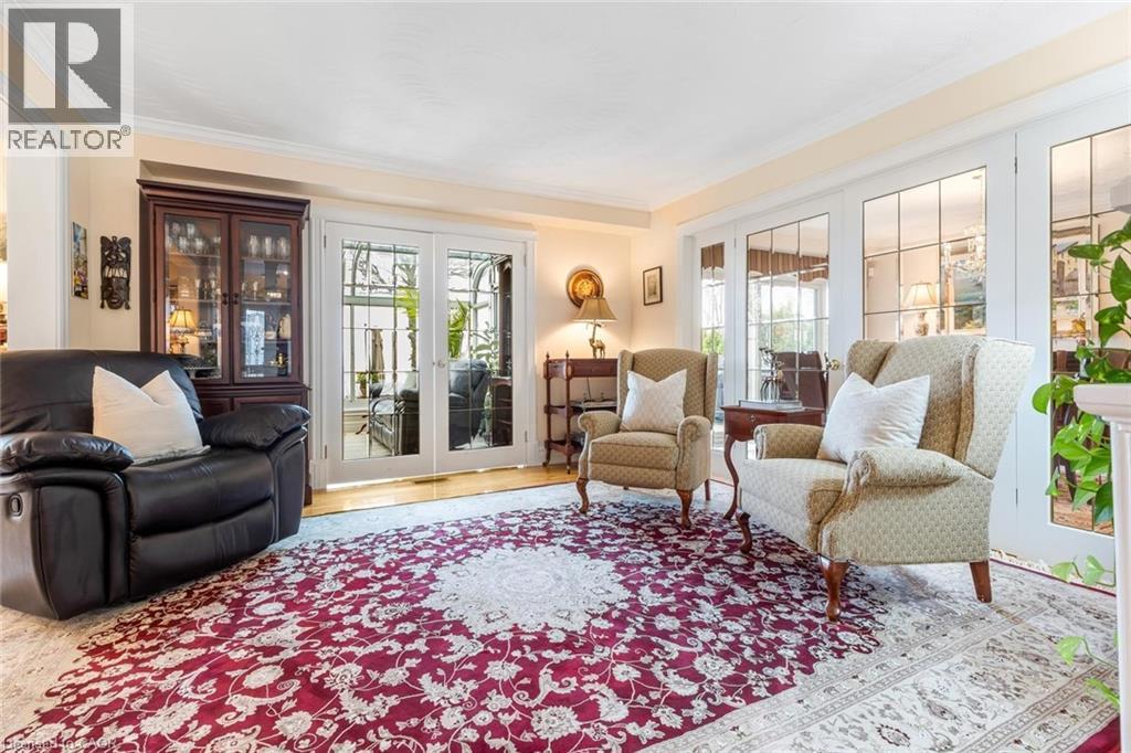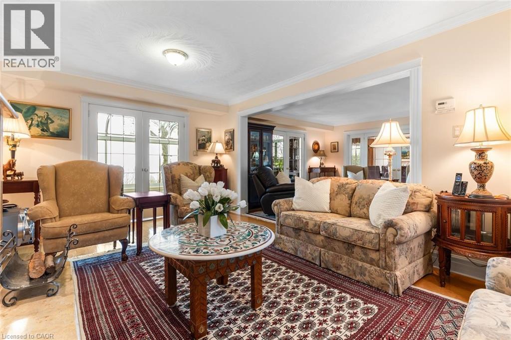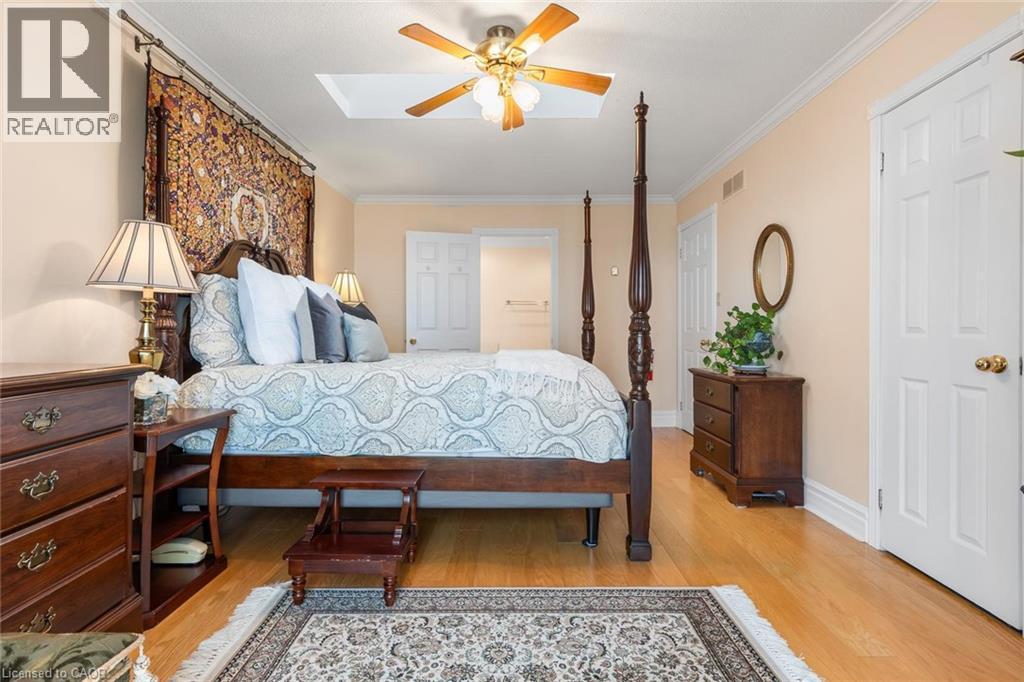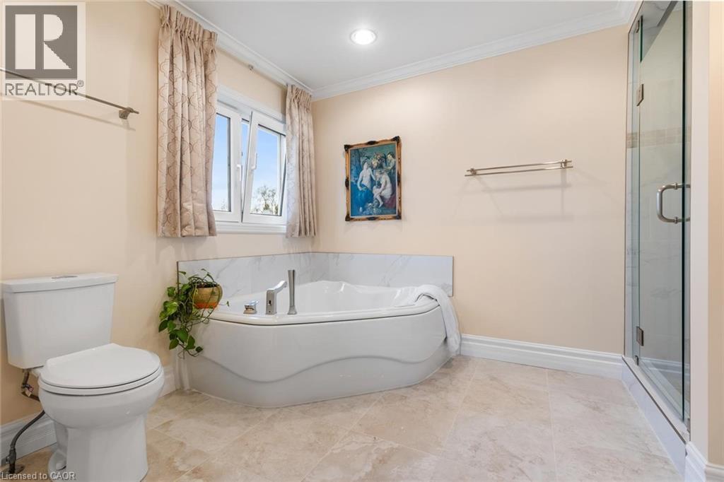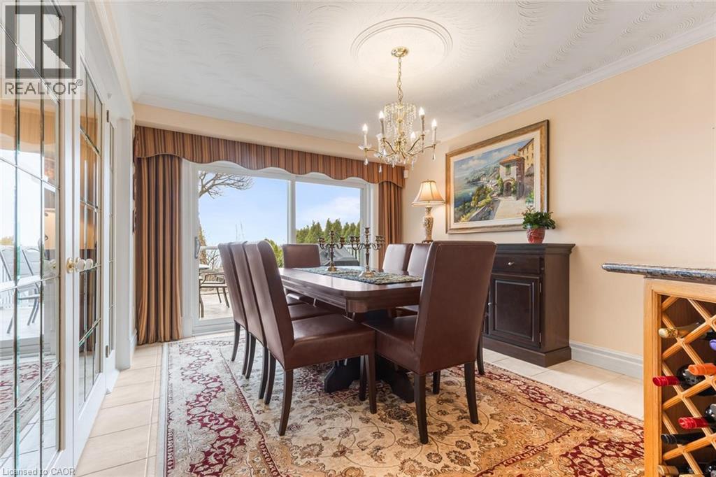 Exceptional waterfront 3 +1 bedroom and 3.5 bathrooms detached home in Grimsby, offering a grand double door entry and an impressive foyer with soaring high ceilings. This well-appointed home features a beautiful wood staircase and a spacious layout designed for both comfortable living and entertaining. The bright living room showcases rich hardwood flooring and a charming wood-burning fireplace, while the inviting family room seamlessly opens to a stunning and expansive sunroom complete with a gas fireplace—perfect for relaxing and enjoying natural light year-round. The well-equipped kitchen features tile flooring, stainless steel appliances, a built-in wine rack, garburator, and abundant cabinetry and counter space. A separate dining area is ideal for hosting guests, while the breakfast area provides the perfect setting for morning coffee or tea. Main floor laundry adds everyday convenience. The upper level offers three generously sized bedrooms, 2 full bathrooms, and access to a charming balcony. The primary bedroom retreat includes a walk-in closet and a private ensuite with a tub and jacuzzi. The finished basement provides additional living space with a large recreation room featuring a gas fireplace, a dedicated office for working from home, an additional bedroom, a full bathroom, and ample storage. Step outside to enjoy a large deck, garden shed, and gas BBQ hookup, ideal for outdoor entertaining. The home also features a double garage with extra ceiling height and windows for added light. Just steps to the waterfront, gazebo, and breathtaking sunsets. Close to parks, trails, schools, shopping, and easy highway access. (id:64974)