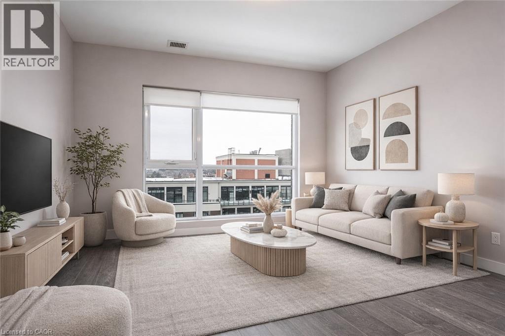 Located in the heart of the Innovation District in Downtown Kitchener, this modern 1-bedroom, 1-bathroom condo in one of the area’s most sought-after buildings offers exceptional urban living. Positioned in the tower portion and facing north-east, the suite enjoys unobstructed city skyline views and beautiful morning sun. The bright, open-concept layout features a smart, efficient floor plan with contemporary finishes throughout. A sleek kitchen with full-sized stainless steel appliances—including refrigerator, stove, dishwasher, and over-the-range microwave—stands out as a notable upgrade over the compact appliances commonly found in many condos. An extended breakfast bar provides the perfect spot for casual dining, entertaining guests, or working from home. Everyday living is made easier with a full-capacity, front-loading washer and dryer right in the unit. One underground parking space and a secure storage locker are also included, a valuable bonus that is rarely available in many newer developments. Residents have access to premium building amenities, including a fully equipped fitness centre, theatre room, party room, co-working space, bike storage, and a spacious outdoor terrace with BBQs and panoramic city views. With LRT and major bus routes, including Go Train service at your doorstep, commuting is effortless. Just steps from Victoria Park, Google, The Tannery tech hub, the Schools of Pharmacy and Medicine, and a variety of downtown restaurants and cafés, this address delivers a true urban lifestyle. Ideal for first-time buyers, investors, downsizers, and professionals seeking vibrant downtown living, this condo offers a compelling blend of style, comfort, and convenience. (id:64974)
