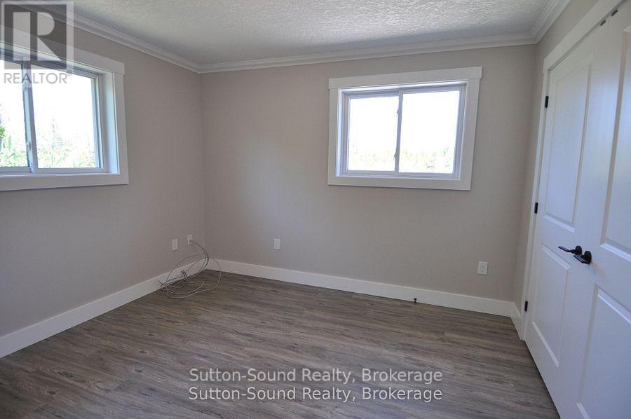 Welcome to this beautifully renovated 3-bedroom, 2-bathroom bungalow that blends comfort, convenience, and coastal charm. Just a short walk from the beach and swimming areas, this home is ideally situated on a peaceful cul-de-sac and backs onto untouched Township of Anabel land, offering serene views and privacy. Designed for easy one-level living, the spacious, open-concept layout includes a large living, dining, and kitchen area perfect for family gatherings and entertaining. The thoughtfully designed floor plan separates two cozy bedrooms and a full 4-piece bathroom from the private master suite, which features a walk-in closet and a 3-piece ensuite with a generous tiled shower. The garage has its own water tap, opens into a large foyer that connects to the laundry and utility room, adding functionality to the home. Enjoy quiet mornings on the charming covered front porch or relax on the expansive back deck during warm summer evenings. A scenic trail from the backyard leads directly to the public beach, providing effortless access to the water for swimming or simply soaking in the natural surroundings. Recently updated, the home includes six brand-new appliances, a new kitchen, new flooring, and fresh tile in both bathrooms. A large shed offers additional storage for outdoor equipment. Whether you're seeking a full-time residence, a family retreat, or a vacation escape, this turnkey bungalow delivers the perfect blend of lifestyle and location. (id:64974)
