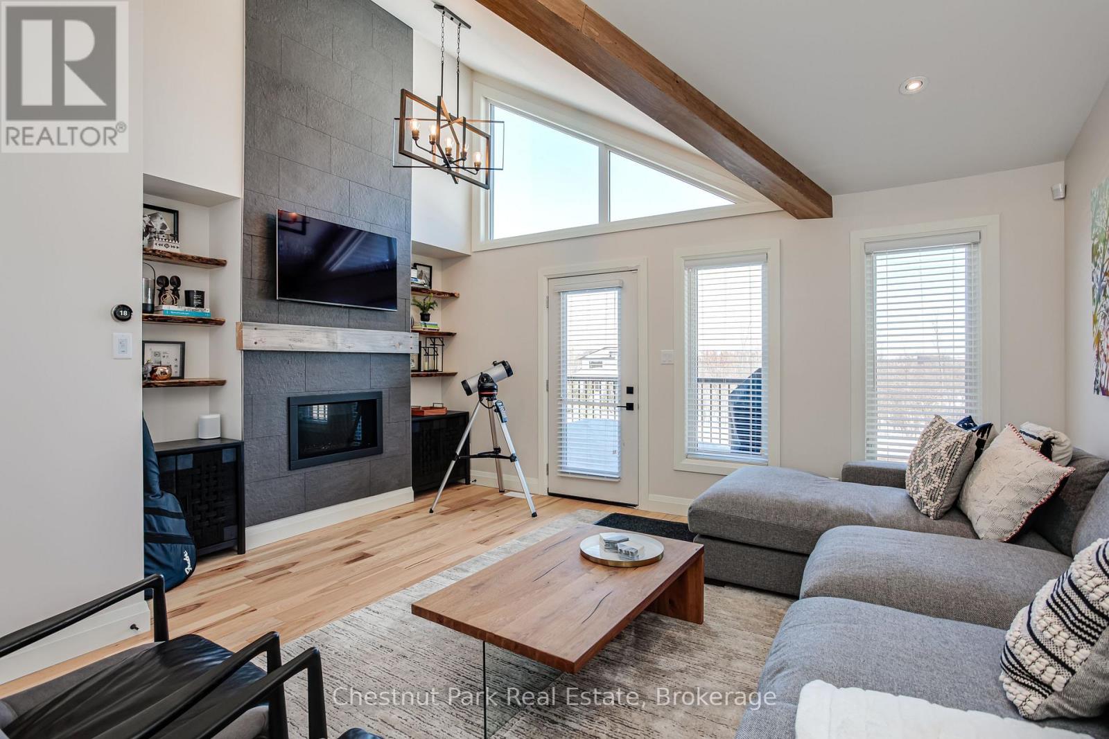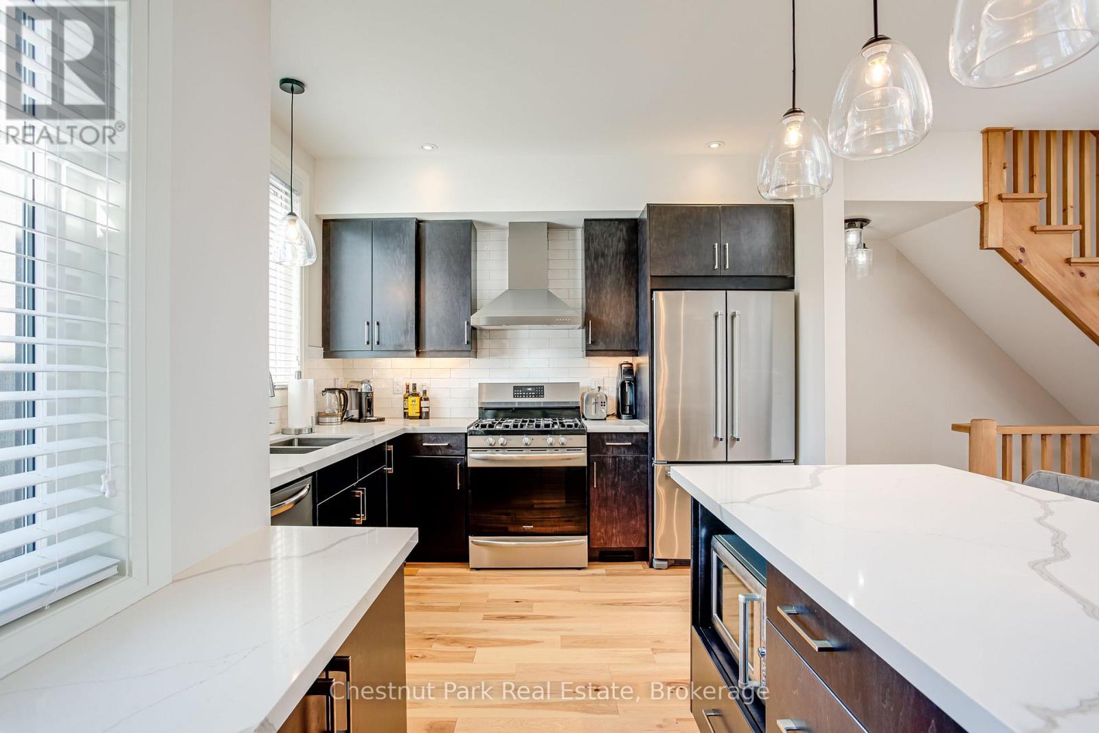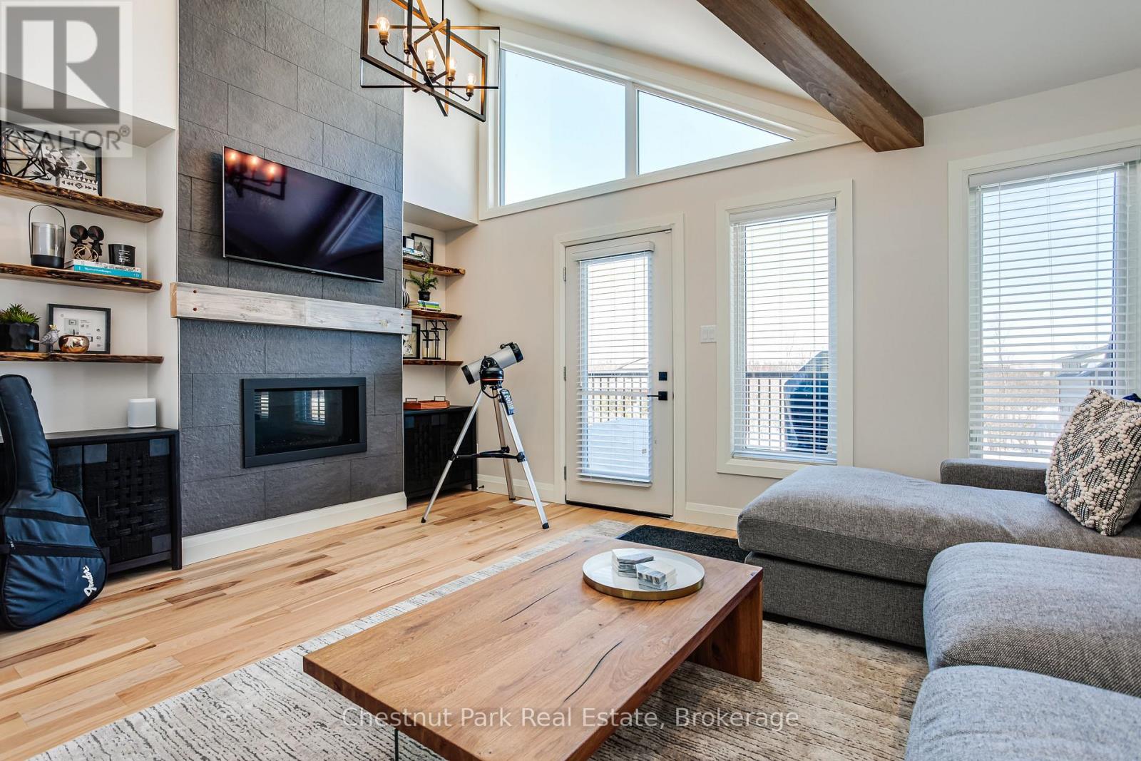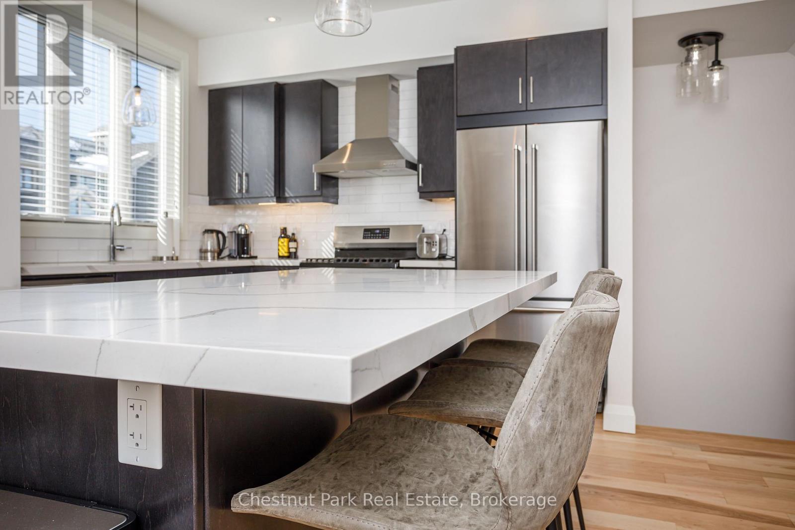 Enjoy a beautifully appointed seasonal rental available for spring and/or fall, ( Currently rented for June, July, and August) ideally located in the heart of Blue Mountain with stunning escarpment views. This newly built three-storey townhome offers over 2,186 square feet of thoughtfully designed living space and comfortably sleeps up to 12 guests, making it perfect for family vacations or group getaways. The bright, open-concept layout features a stylish gourmet kitchen with granite countertops, a generous island, and stainless steel appliances, flowing seamlessly into the inviting living area with a cozy gas fireplace. Engineered hardwood floors throughout add warmth and sophistication to the home's modern design. Accommodations include a spacious primary bedroom with a king bed, a second bedroom with a queen, a third with two twins, and a lower-level bedroom with another queen. The lower main room also offers two twin-over-double bunk beds for added flexibility. Ideally positioned close to top local attractions such as Alpine Ski Club, Northwinds Beach, scenic hiking trails, Blue Mountain Village, and the Georgian Trail, this property offers year-round recreation and convenience. Don't miss this exceptional opportunity. (id:64974)