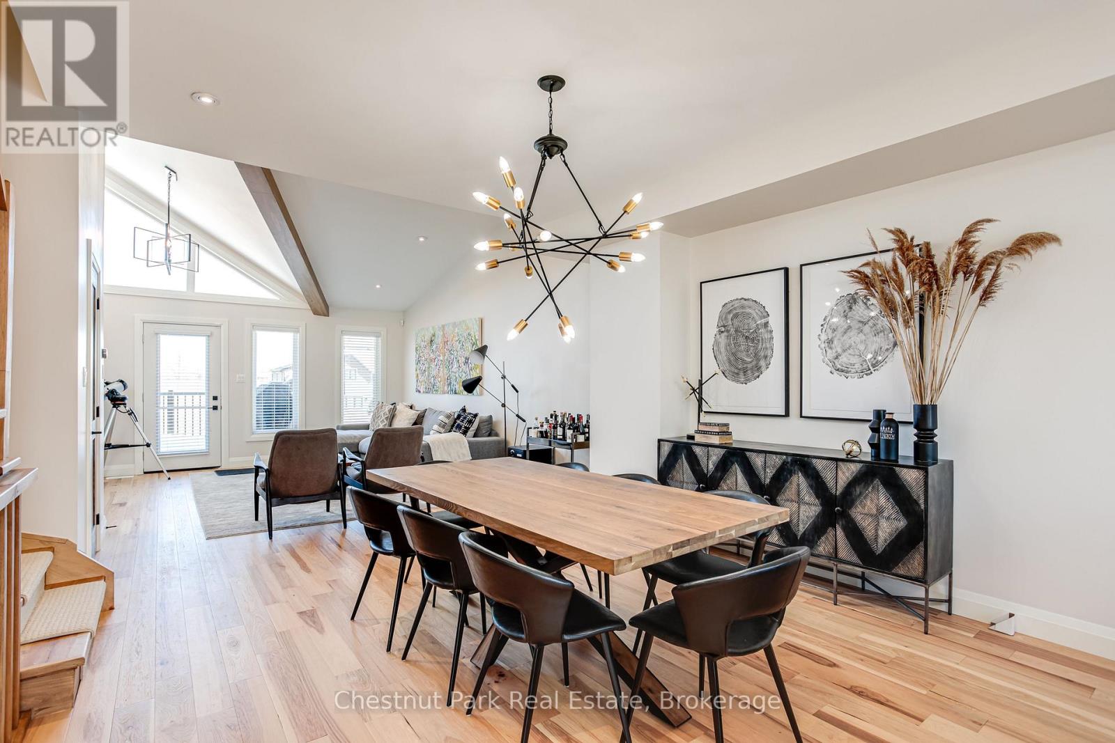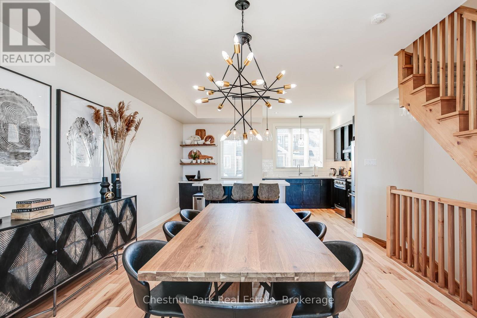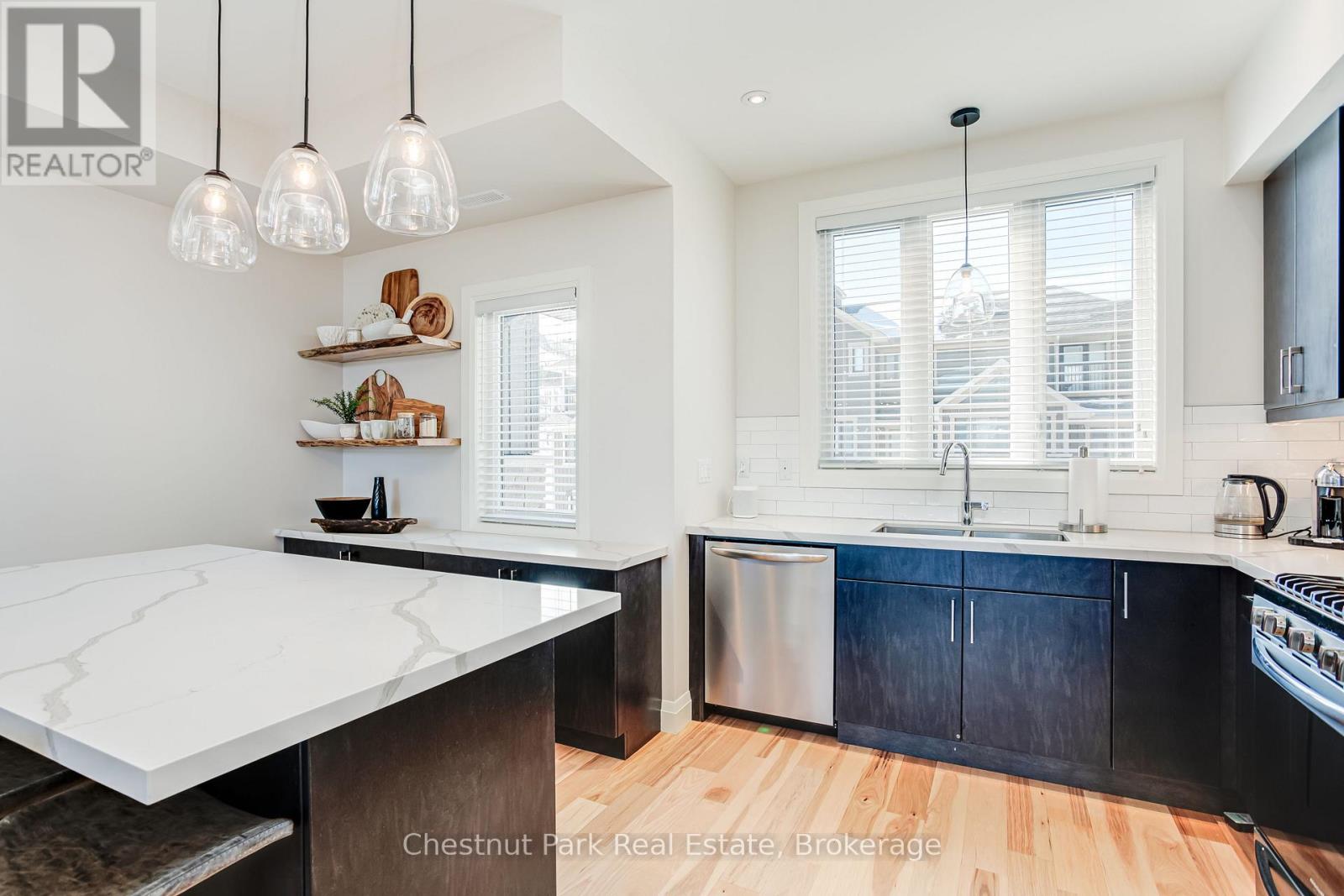 Enjoy a beautifully appointed seasonal rental available for spring and/or fall, ( Currently rented for June, July, and August) ideally located in the heart of Blue Mountain with stunning escarpment views. This newly built three-storey townhome offers over 2,186 square feet of thoughtfully designed living space and comfortably sleeps up to 12 guests, making it perfect for family vacations or group getaways. The bright, open-concept layout features a stylish gourmet kitchen with granite countertops, a generous island, and stainless steel appliances, flowing seamlessly into the inviting living area with a cozy gas fireplace. Engineered hardwood floors throughout add warmth and sophistication to the home's modern design. Accommodations include a spacious primary bedroom with a king bed, a second bedroom with a queen, a third with two twins, and a lower-level bedroom with another queen. The lower main room also offers two twin-over-double bunk beds for added flexibility. Ideally positioned close to top local attractions such as Alpine Ski Club, Northwinds Beach, scenic hiking trails, Blue Mountain Village, and the Georgian Trail, this property offers year-round recreation and convenience. Don't miss this exceptional opportunity. (id:64974)