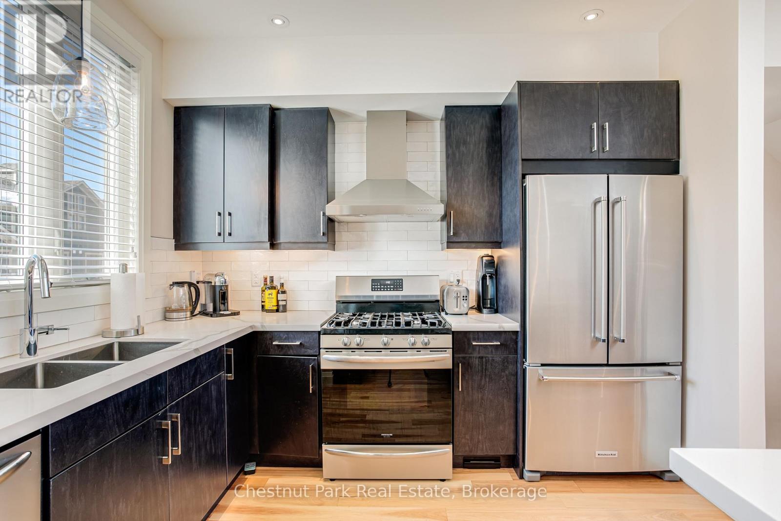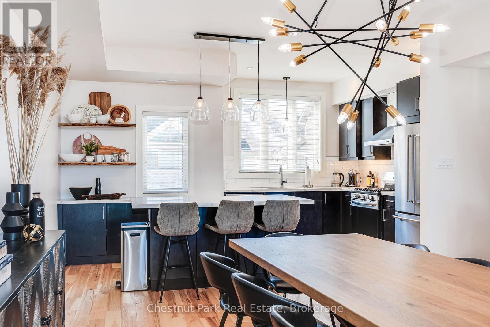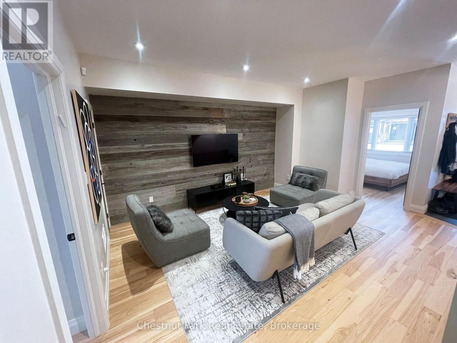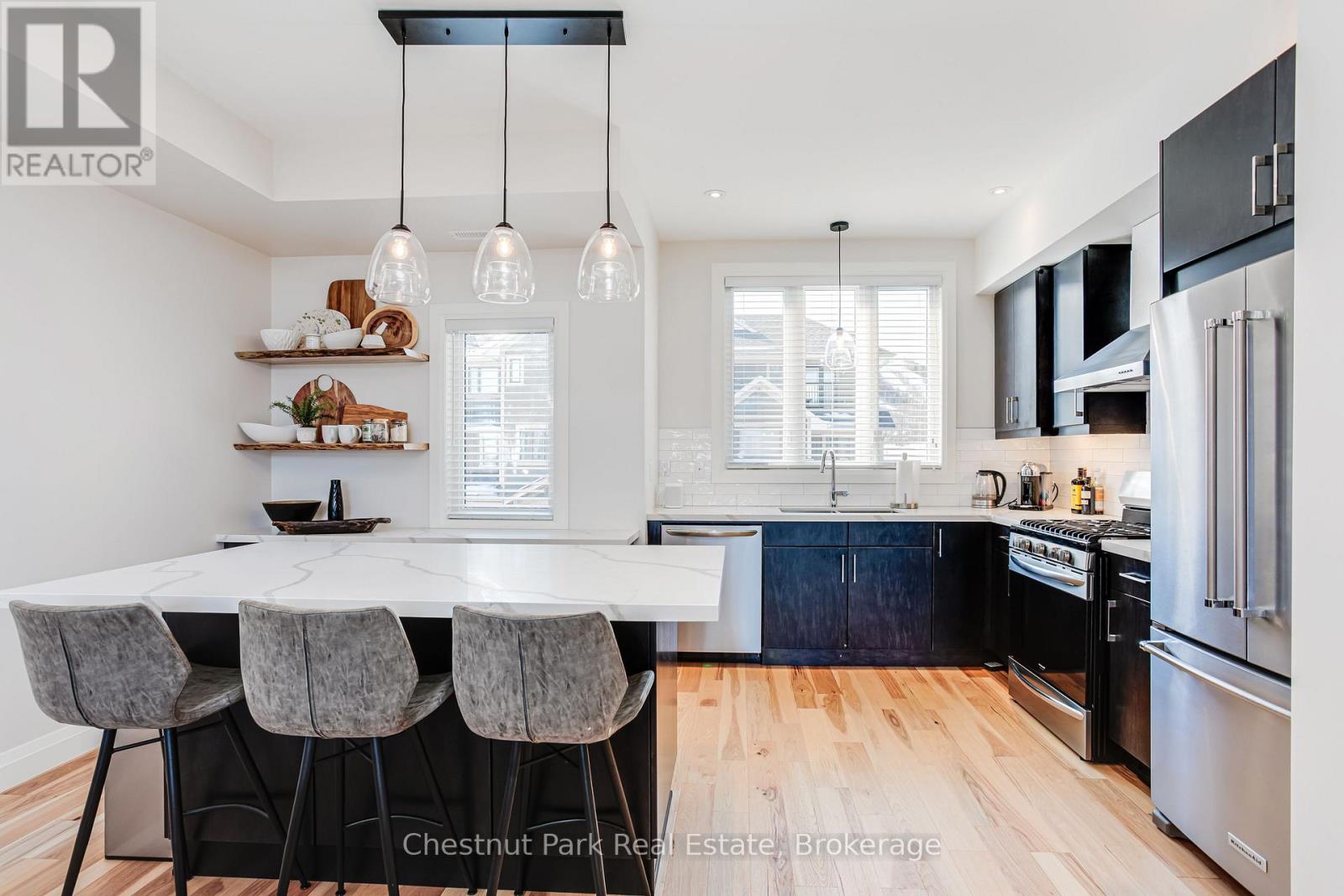 Enjoy a beautifully appointed seasonal rental available for spring and/or fall, ( Currently rented for June, July, and August) ideally located in the heart of Blue Mountain with stunning escarpment views. This newly built three-storey townhome offers over 2,186 square feet of thoughtfully designed living space and comfortably sleeps up to 12 guests, making it perfect for family vacations or group getaways. The bright, open-concept layout features a stylish gourmet kitchen with granite countertops, a generous island, and stainless steel appliances, flowing seamlessly into the inviting living area with a cozy gas fireplace. Engineered hardwood floors throughout add warmth and sophistication to the home's modern design. Accommodations include a spacious primary bedroom with a king bed, a second bedroom with a queen, a third with two twins, and a lower-level bedroom with another queen. The lower main room also offers two twin-over-double bunk beds for added flexibility. Ideally positioned close to top local attractions such as Alpine Ski Club, Northwinds Beach, scenic hiking trails, Blue Mountain Village, and the Georgian Trail, this property offers year-round recreation and convenience. Don't miss this exceptional opportunity. (id:64974)