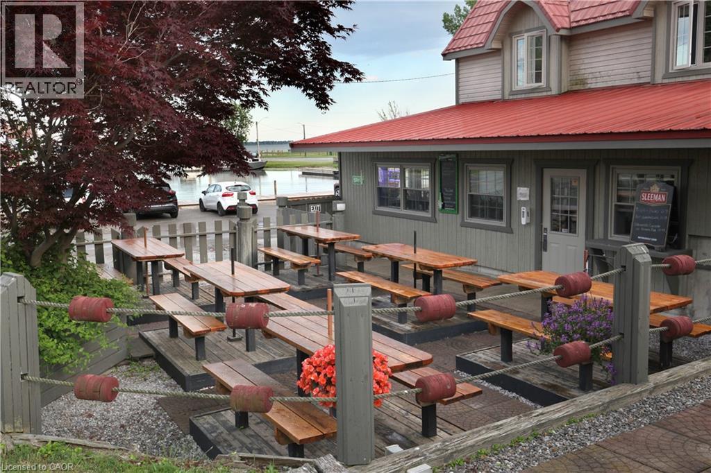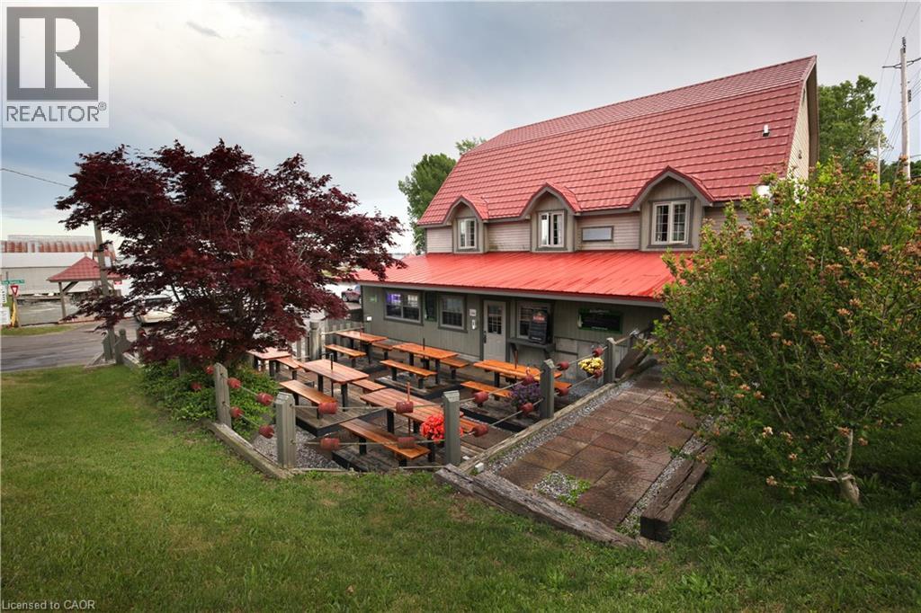 4 UNIT WATERFRONT OPPORTUNITY nestled in the picturesque harbour of Port Rowan, steps downtown to shops and restaurants. Sale includes two parcels. PARCEL ONE - two storey, 5864 sq. ft. building anchored by a restaurant on the main floor (3884 sq ft), licensed to seat 90 indoors and 48 on the patio. Features include walk-in cooler, gas range, 2 deep fryers, double oven, bar, coffee station, office, 2 accessible and 2 staff washrooms. Upper level with 1980 sq ft, quality re-built in 2003, features 3 residential units featuring spectacular harbour views, new LG heating/cooling units, cathedral ceilings, exit lighting, fire alarms and separate enclosed & secure apartment entry. PARCEL TWO - harbour lot, approx 100 ft. by 100 ft. includes parking for 11 cars and 98 ft. of water frontage with ownership of approximately 60+ ft. from the boardwalk into the water. Seawall, boardwalk with steel frame, pavilions on both ends plus six docks included (on site but not installed). Potential for additional income - houseboat/dock rentals, boat/sea doo rentals etc. Special Zoning - no required parking spaces to operate a restaurant however 13 spaces are available (2 accessible) and additional public parking nearby. Zoning allows for multiple uses - be your own boss and live at the waterfront, run a hotel, air bnb, restaurant, rentals etc. or make this your next waterfront investment. 2 hrs to Toronto and 1 hr 15 min to London. Sale does not include restaurant business. Can be purchased with adjoining property at 12 Sea Queen Rd. (id:64974)