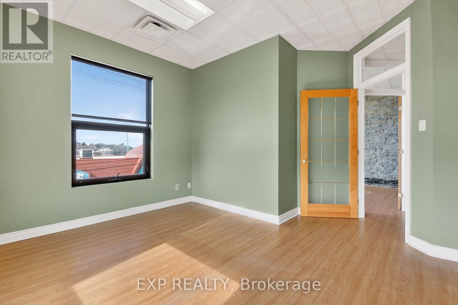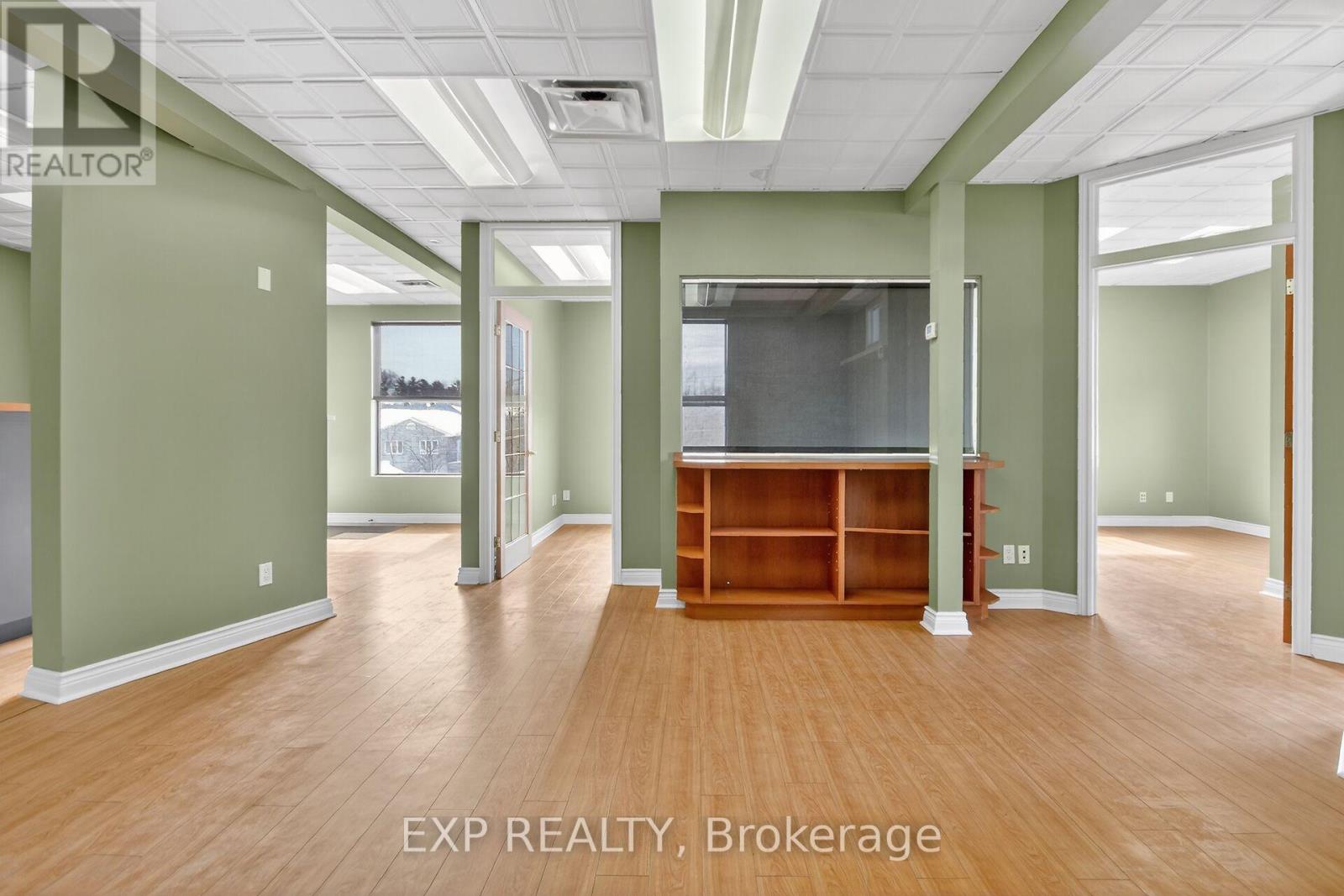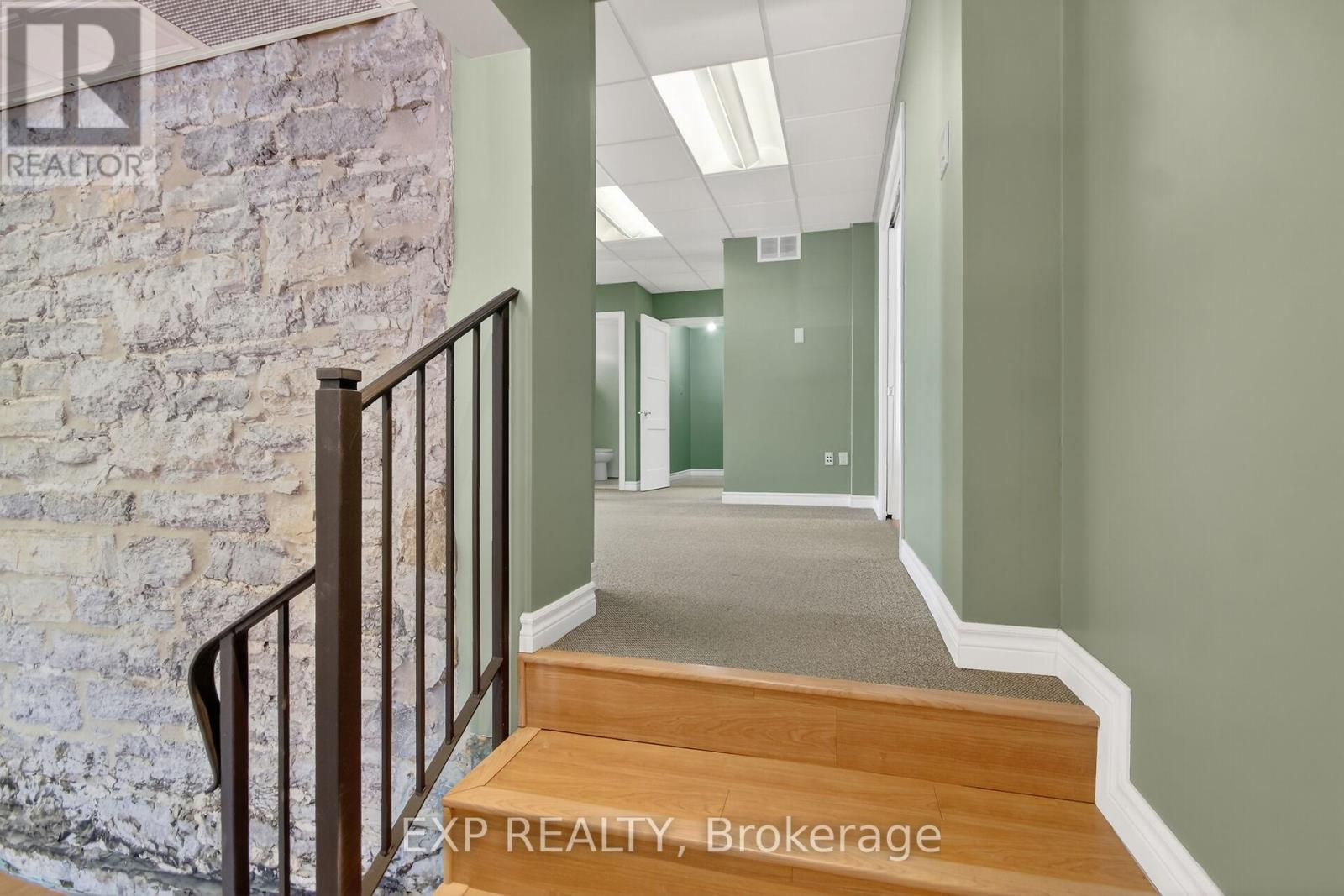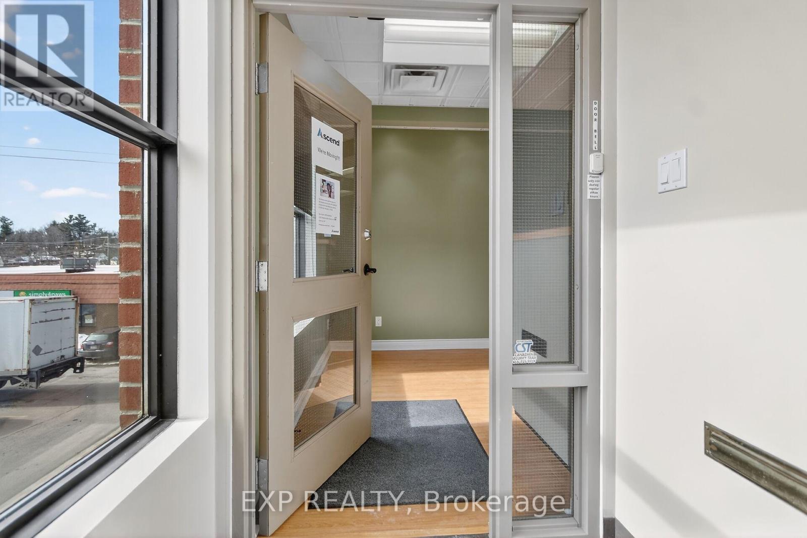 Bright, beautifully appointed 2,058 sq. ft. office space in the heart of downtown Almonte at 14 Mill St., above the vibrant shops and dining of Heritage Court. This inviting and professional space features five private offices, expansive common areas, two bathrooms, a kitchen, and a welcoming reception desk. One office includes elegant pocket doors, making it ideal for a boardroom or conference room.Flooded with natural light from large, bright windows and complemented by high ceilings and a classic stone accent wall, this space blends character with functionality. In the warmer months, enjoy access to a rooftop outdoor area - perfect for a breath of fresh air during the workday.An ideal opportunity for multiple practitioners or businesses ready to transition from working at home into a collaborative professional environment. Perfect for like-minded businesses serving similar clientele who can benefit from a symbiotic working relationship while maintaining private office space.Flexible leasing options available: Lease the full 2,058 sq. ft. for $4,121/month + HST. Lease approximately 1,058 sq. ft. for $2,381/month + HST. (Option to configure as two units of approx. 1,058 sq. ft. and 1,000 sq. ft.). Common area costs include property taxes, snow removal, property maintenance, water, and heat. Tenants responsible for hydro and internet.Excellent accessibility with ample public parking in the rear of building. A rare opportunity to establish your business in a bright, professional, and centrally located setting. (id:64974)